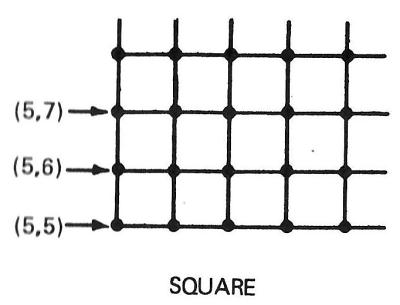 The flexibility of the language will be demonstrated, and some of its uses illustrated, by eight examples of programs and their pictorial results. These appear together in sets in Figs. 7.14. The program presented in each case is assumed to be preceded by the initialization