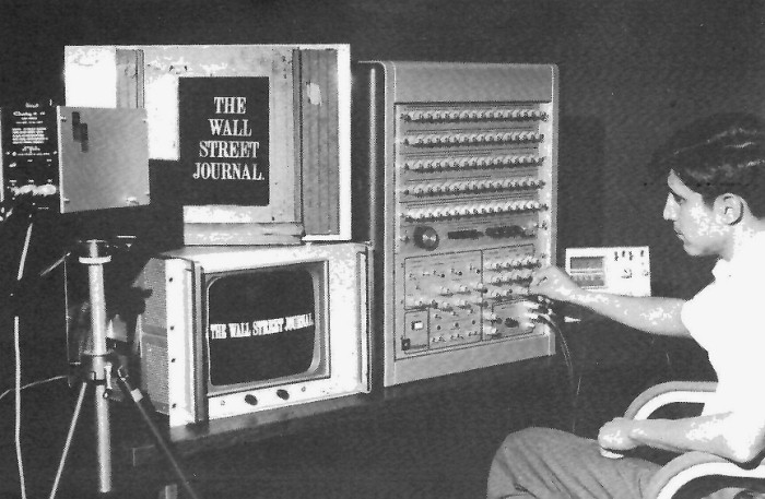 What this means to the artist is that he does not program an analog or hybrid computer by using computer or engineering language. He modulates or modifies the images he watches by turning a knob. There is no delay factor in an analog system. The analog image is modified instantaneously and produced in real time, that is, the time it takes to watch it or film it. Because it is made of lines rather than dots, there is a fluidity to analog animation. The result of the analog approach has been to produce two hybrid animating systems or devices.