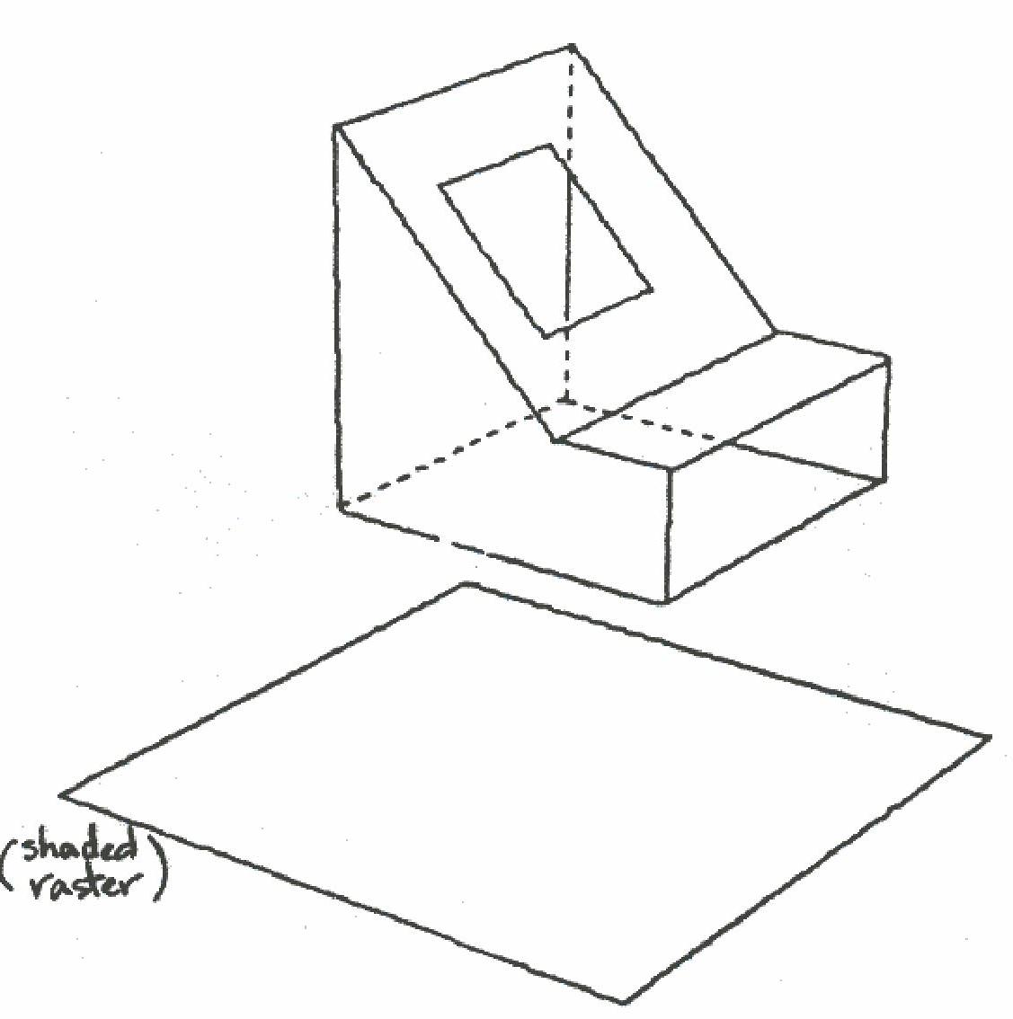 This method is very time consuming, usually requiring for useful results several thousand times as much calculation time as a wire frame drawing. About one half of this time is devoted to determining the point by point shading and maintain resolution techniques were developed to determine the outline of cast shadows. Outlining shadows has the advantage that all regions of dissimilar tones on the picture plane are outlined. Even when projected shadows are delicate, and symbol spacing is large, the shadows are specified and the discontinuity in tone is emphasized.