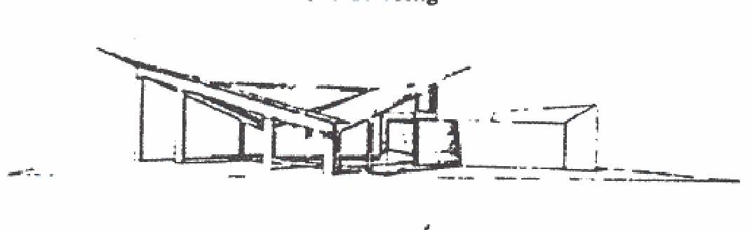 A great many experiments were conducted to evaluate the quality of various toning techniques that would be applicable to digital plotting. A simulation technique tested was to shoot random light rays from the light source at the scene and project a symbol from the piercing point on the first surface the light ray pierced. These symbols would concentrate in regions of high light intensity, and a negative print of the hard copy could be made which would approximate a photograph if enough light rays are generated. Even for about 1000 light rays results were splotchy. Generating light rays in regular patterns improved the graphic quality but did not allow economic tonal control. During these experiments, various symbols were evaluated for graphic quality and speed of plotter generation The plus sign or a small square were to give best results. Eventually the, best technique from graphic and economic considerations for toning was found to be plus signs arranged in staggered rows with shadows outlined. This arrangement is most easily seen in Figure 2. The size of plus signs were to be rendered proportional to darkness required.
