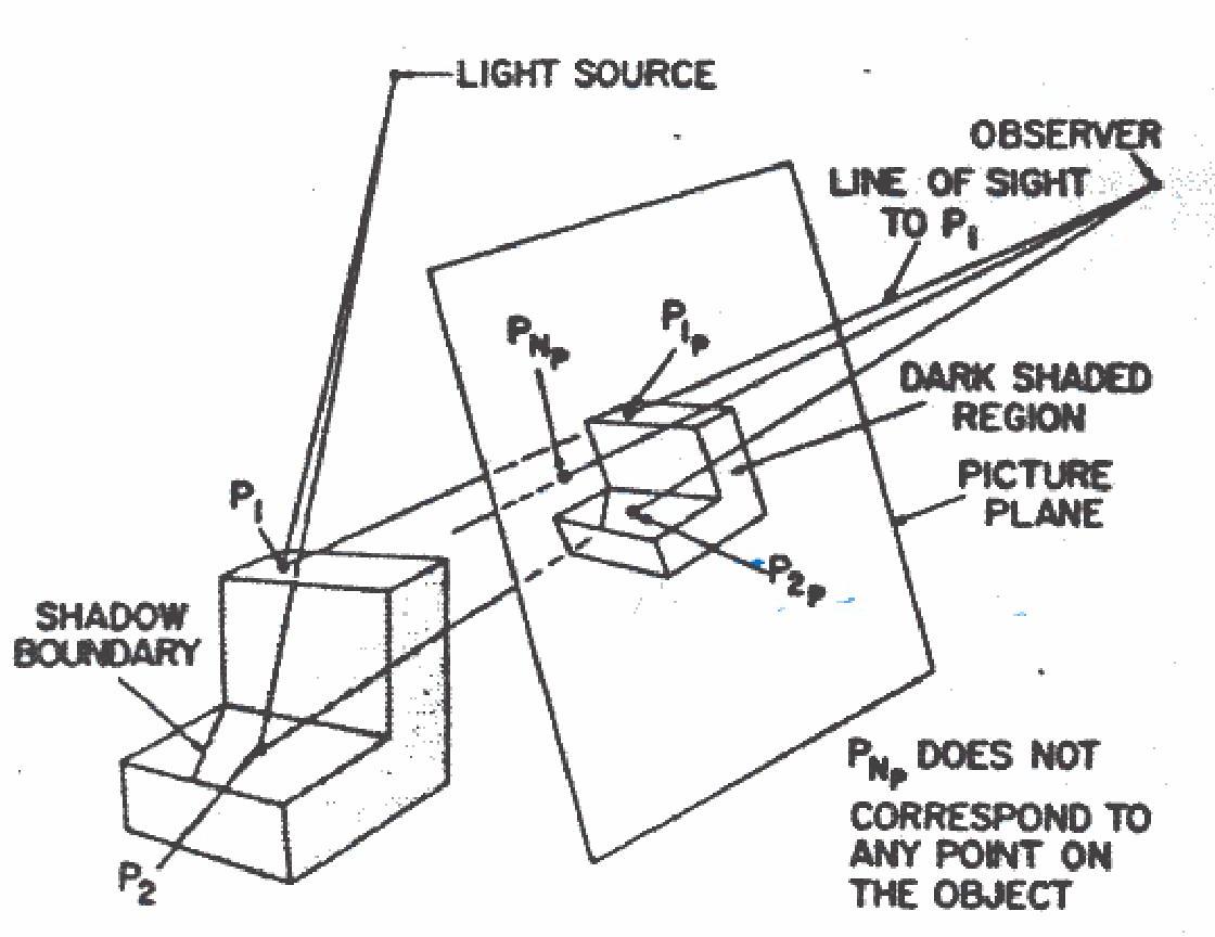 The strategy for point by point determination of shadow boundaries is as follows: (Referring to Figure 7)