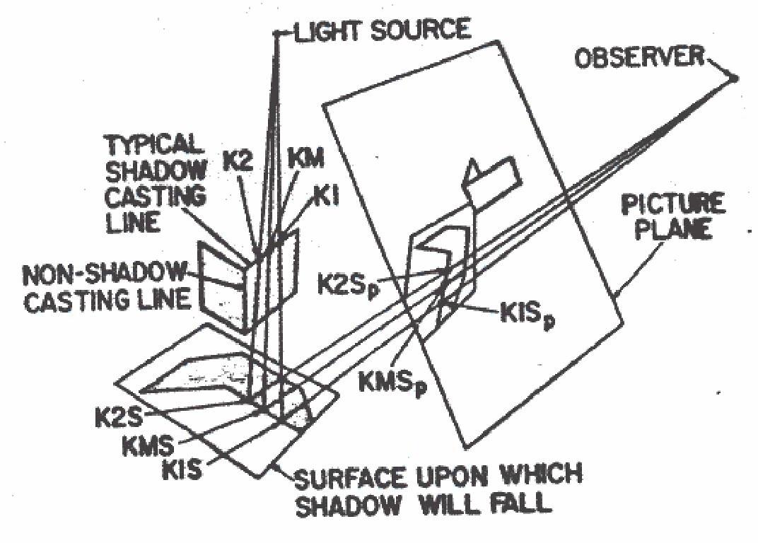 As can be expected, determining the outline of shadows by this described strategy is very time consuming usually requiring as much time as point by point line visibility determination.
