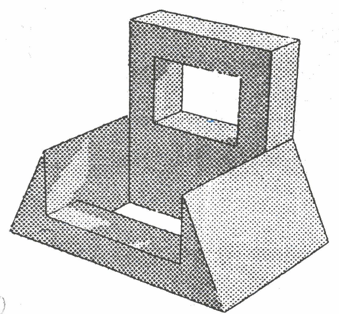 Some applications of computer graphics require a vivid illusion of reality. These include the spatial organization of machine parts, conceptual architectural design, simulation of mechanisms, and industrial design. There has been moderate success in the automatic generation of wire frame [1], cardboard model [2], polyhedra,[3] [4] and quadric surfaces [5] line drawings. The capability of the machine to generate vivid sterographic pictures has been demonstrated [6]. There are. however considerable reasons for developing techniques by which line drawings of solids can be shaded, especially the enhancement of the sense of solidity and depth. Figures 1 and 2 illustrate the value or shading and shadow casting in spatial description. In the, line drawing there is no clue as to the relative position of the f1at plane and the sheet metal console. When shadows are rendered, it is clear that the plane is below and to the rear of the console, and the hollow nature of the sheet metaJ assembly is emphasized. Shading can specify the tone or color of a surface and the amount of light falling upon that surface from one or more light. sources. Shadows when sharply defined tend to suggest another viewpoint and improves surface definition. When controlled, shading can also emphasize particular parts of the drawing. If technique for the automatic determination of chiaroscuro with good resolution shoula prove lo be competitive with line drawings, and this is a possibility, machine generated photographs might replace line drawings as the principal mode of graphical communication in engineering and architecture.