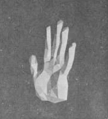 This method of data representation is fairly convenient to use but still does not solve some of the more difficult problems of flexible surfaces. Careful inspection of the hand (figure 2) when the hand is closed will show that the joints become somewhat distorted. This is not just a matter of choosing wrong axes of rotation. Two possible solutions to this particular problem are: