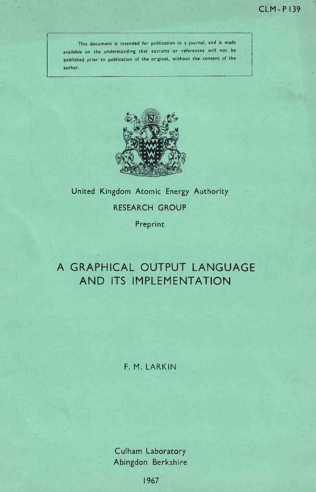 Unfortunately, currently available plotters operate from a rather limited set of basic commands, such as lift the pen, move the pen to position (21,35), etc, while the computer user wishes to give instructions like draw a graph of J0(x) for 0 < x < 12, plot contours of |Sin(z)/z| over the unit disc, annotate the axes, etc The situation is reminiscent of the state of computer programming before the development of high level programming languages. Applying the principle that similar problems call for similar solutions, the idea of a graphical output language becomes obvious.
