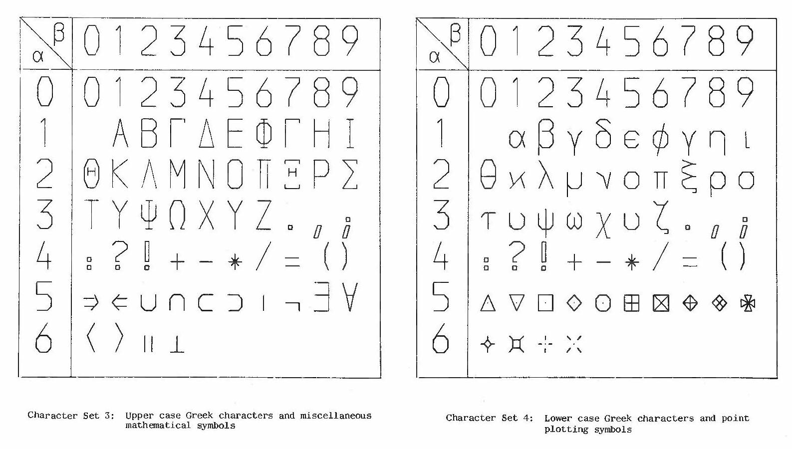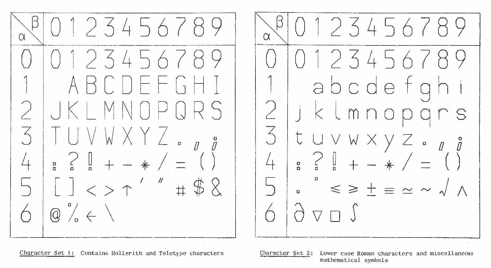 In this table, and the succeeding ones, the index number of a character whose ordinates are (α,α) is given by 10α+β, e.g. the index number M is (10*2+3)=23.