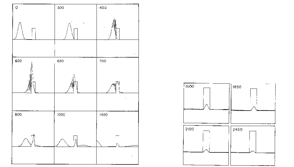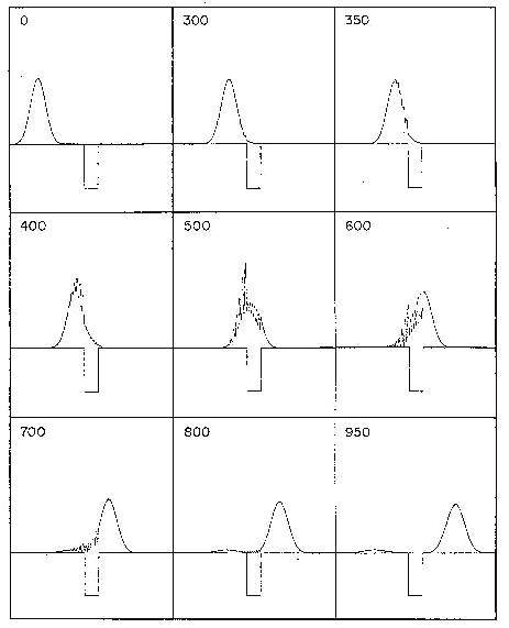 The reader will note occasional breaks or discontinuities ar various points in some of these pictures. This effect is due to an evidently inherent malfunction of the equipment involved in rendering the machine calculations into graphical form. At the present time there appears to be no simple way to avoid this problem; but, fortunately, the discontinuities, while annoying, by no means destroy the effect of the film. This situation emphasizes the fact that the use of computers to illustrate time development in physical systems by motion pictures is still in a preliminary, if no longer rudimentary, stage. Our feeling, nonetheless, is that despite their shortcomings these films already have considerable merit as a pedagogical tool and, as methods are refined and scope broadened, they will play an increasingly important role in science teaching both at the college and graduate levels.