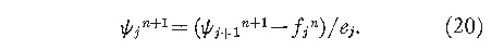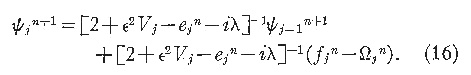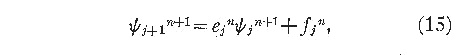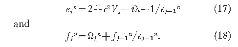 Thus, by recurring up on the e's and f's, we find an expression for the wavefunction at the next-to-last net point j =J-1 (it is zero at j=J). By inverting Eq. (15) we get