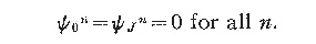 Now, by combining Eqs. (19) and (20), we can determine ψJ-2n+1; and this, in turn, when used in Eq. (20), provides ψJ-3n+1 etc. down to ψ1n+1 (ψ0n+1 being zero). Thus we have outlined a procedure by means of which one may obtain ψjn for all j=0,1,2, ... ,J and all n. One sees that ultimately this procedure must begin with a knowledge of ψjo for all j; i.e., of the initial wavefunction, the one conventionally written ψ(x,0), all x, for this enables us to evaluate Ωj0 from which all the rest follows.