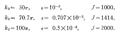 where we have used L= Jε and λ= 2ε2/δ. With this choice of k- and with x0 = L/4, we utilize approximately only the center half of the available space, omitting the outer quarters, and the packet is thus prevented from reaching the walls.