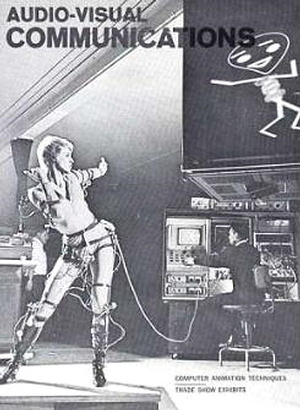ORGANIC SHAPES ARE PROVIDED BECAUSE OF THE NATURE OF THE ARTIST INPUT. ARTIST PRODUCED DRAWINGS TEND TO BE NATURALLY ORGANIC. IF INORGANIC OR MATHEMATICALLY PRECISE SHAPES ARE REQUIRED THESE ARE CREATED BY FUNCTION GENERATION IN THE CIC COMPUTER. ANIMATION CAN BE ACCOMPLISHED BY FUNCTION GENERATION OR SPECIAL INPUTS. AN EXAMPLE USED OFTEN AT CIC IS TO INSTRUMENT AN "ACTOR" WITH AN ANTHROPOMETRIC HARNESS. IN THIS WAY MANY INPUTS CAN BE CONTROLLED BY ONE MAN. ONE-TO-ONE CORRESPONDENCE BETWEEN THE ACTOR AND AN ANIMATED CHARACTER IS POSSIBLE. THE ACTOR CAN EVEN SEE HIMSELF "ON-STAGE."