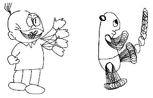 In this method an animator draws out by hand two separate frames of the cartoon. These two original drawings as well as the curves indicating the movements between the two, are read into the computer. Then the computer generates the intervening frames by interpolation.