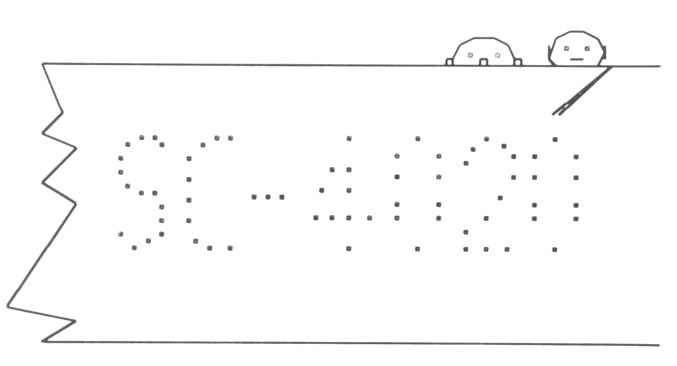 The microfilm recorder operates from instructions prepared on magnetic tape, produced by programs running on an ICL Atlas computer. In some installations these recorders are connected 'on-line' to the computer, ie connected by information-carrying cables, for immediate response. Standard programs save the user knowing in detail how lines and characters are specified to the recorder. For example, he could draw a cross by punching the following statements on two program cards: