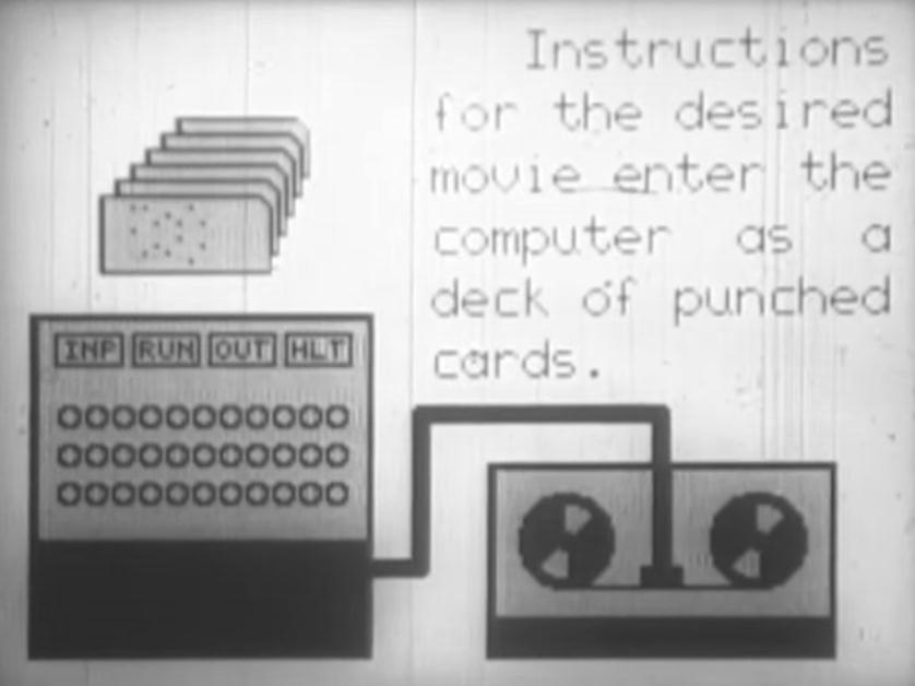 Then you take the paper to the computation centre. After a few hours, you return to pick up a movie, which you then show to the class.