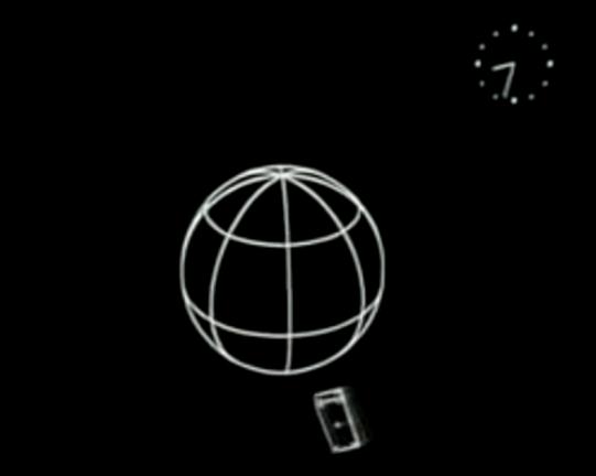 In the film Two-Gyro, Gravity-Gradient Attitude Control System, I was studying; by digital computer simulation, the orientation control of a satellite. At first, I had the computer print out numbers giving the satellite orientation at successive instants of time. The problem of visualizing the satellite motions from the printed numbers was formidable. So I wrote a sub-programme which took the numbers that would normally be printed out and used them to compute a perspective drawing of a box representing a satellite. Figure 5 shows the superposition of every fifth frame of the movie for the first satellite orbit (in the movie itself the Earth turns). An orbital clock in the upper right hand corner counts off orbits.