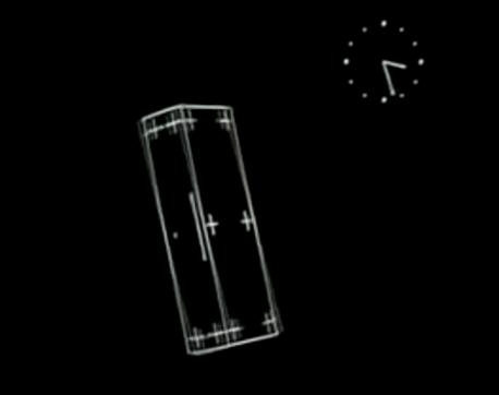 Finally, as the sample frames of Figure 4, Figure 5 and Figure 6 show, it is easy to make perspective views of solid objects. It is likewise easy to make two perspectives side by side, that is, to make stereographic movies. This line of research has been pursued by A. M. Noll of the Bell Telephone Laboratories. Among other things, he has made a movie of a four-dimensional cube rotating about one of its axes, as seen when projected into three dimensions.