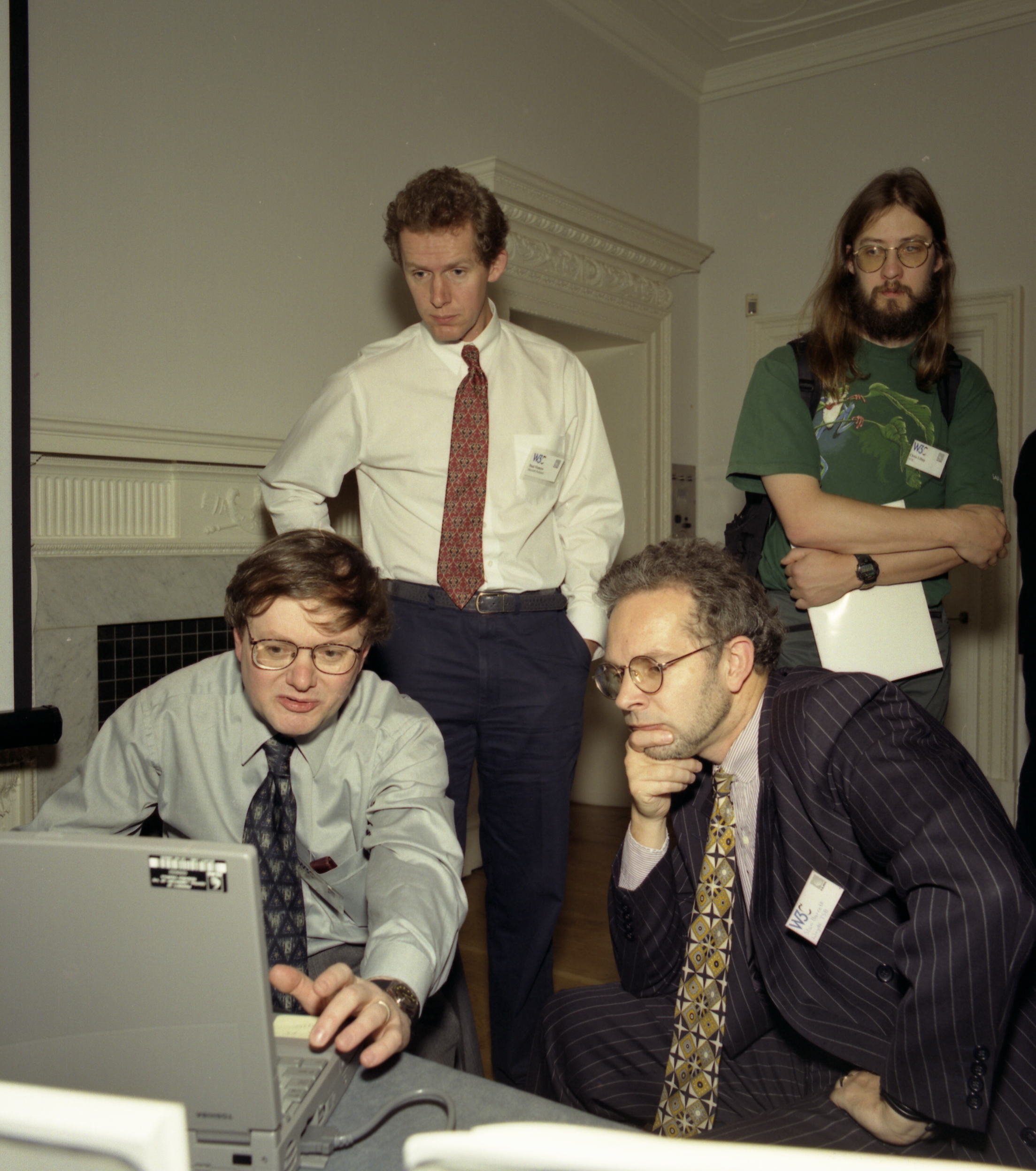 David Duce demonstrates Web Schematics to Chris Lilley and others at RSA, December 1998