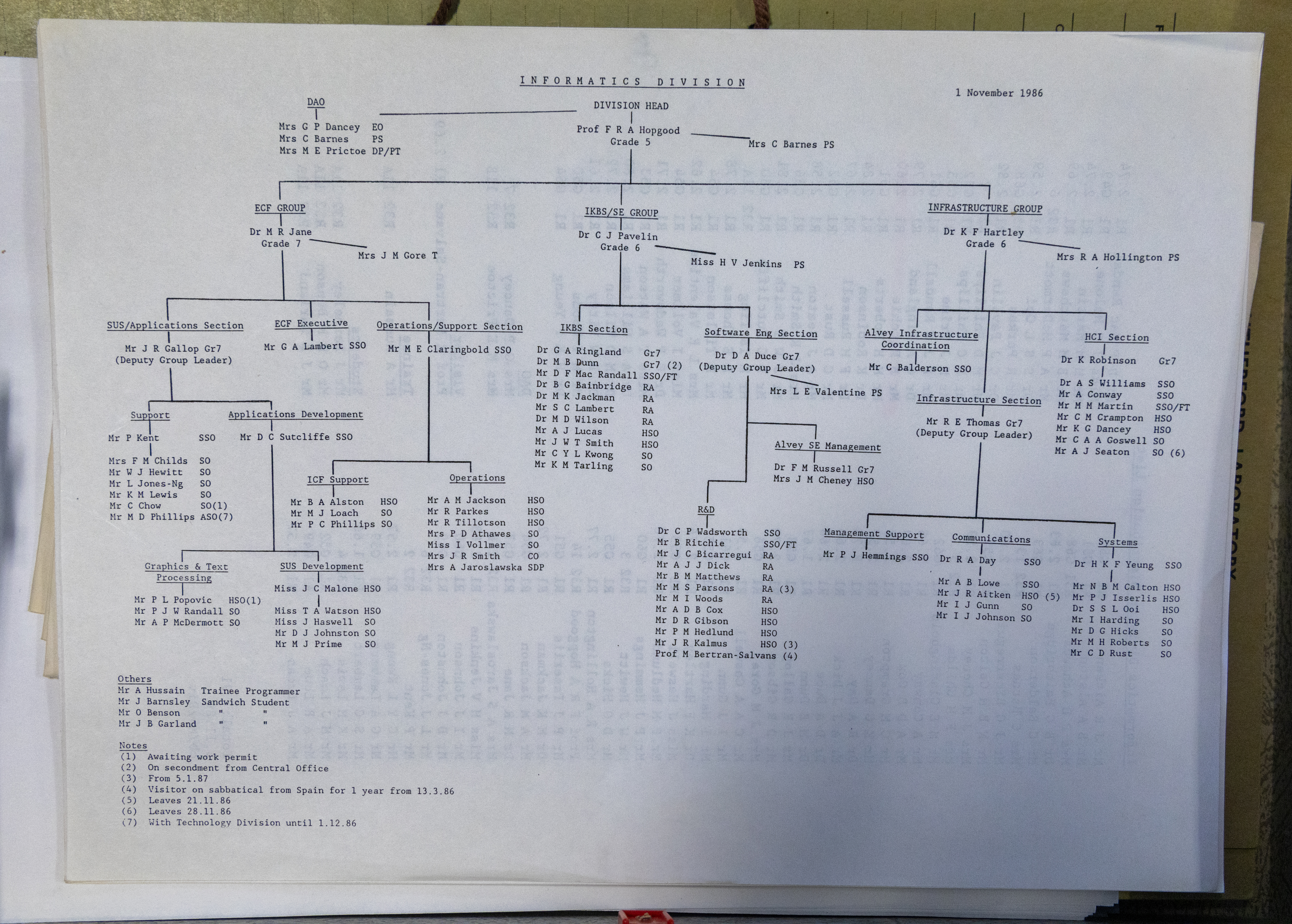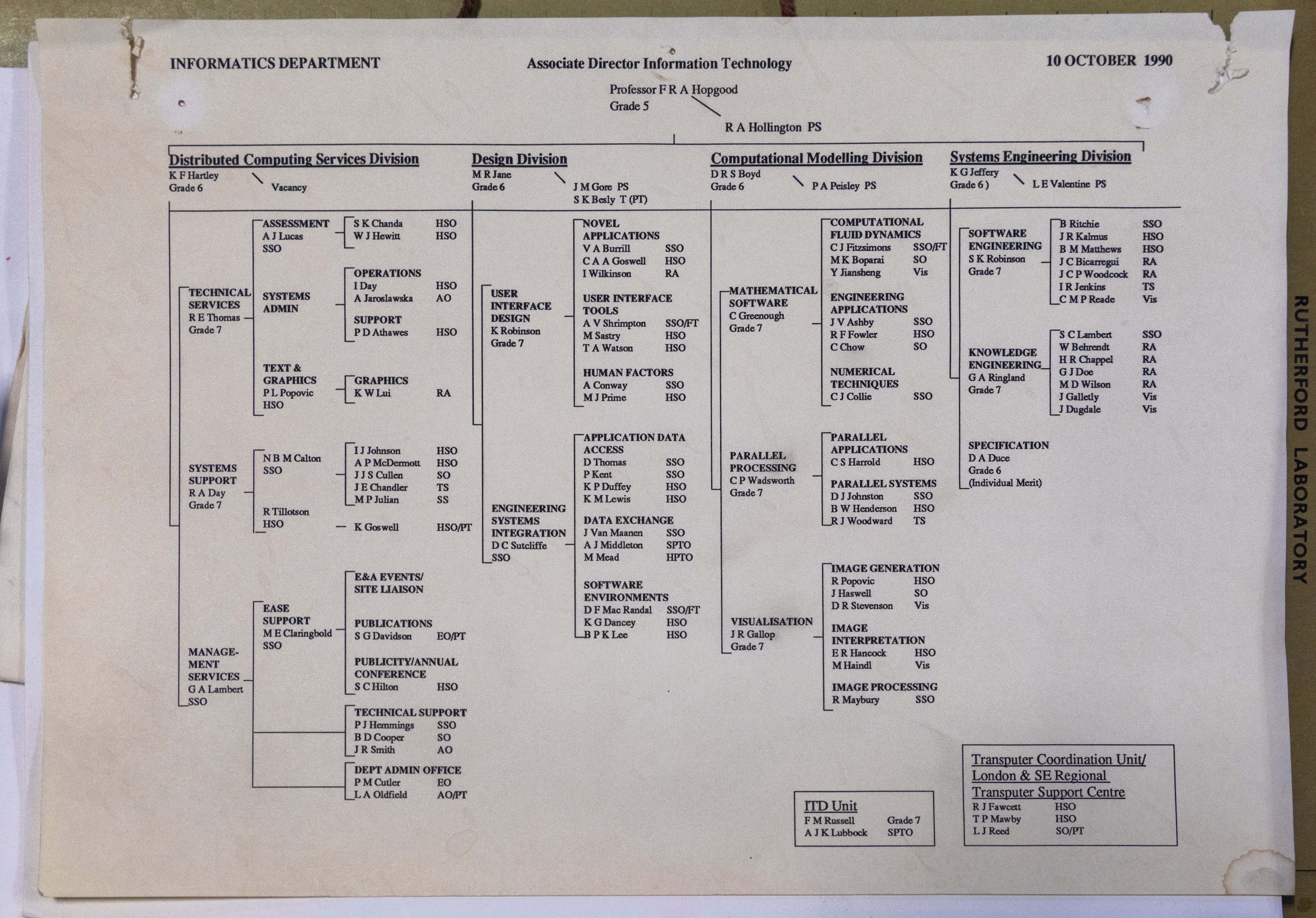 This section contains a collection of organograms of the computing departments on various dates as we come across them.