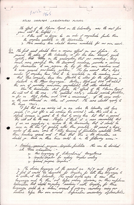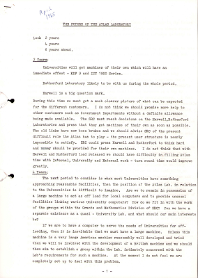 The senior staff at ACL, Jack Howlett, Bob Churchhouse and Jim Hailstone, were the three main people involved in the various discussions externally and internally there were many meetings between them and their staff regarding future computers, ACL's future role etc. Jim Hailstone kept a file of some of the papers that arose. They are collected here to give a snapshot of some of the discussions.