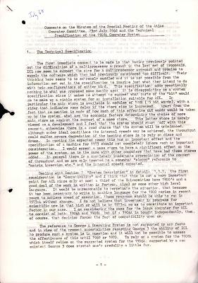 Comments on the Minutes of the Special Meeting of the Atlas Computer Committee, 23rd July 1968 and the Technical Specification of the 1908A Computer System