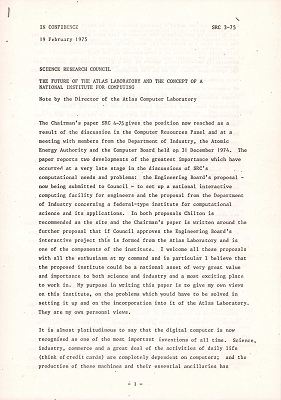The Future of the Atlas Laboratory and the Concept of a National Institute for Computing