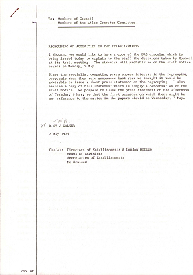 These were carried out through various committee meetings. The discussion of the Laboratory's future role was also of major concern as the much improved computing facilities in the university sector meant that the current role was declining. At the same time the SRC finances were initially stagnant and later decreasing significantly. By 1973, a predicted increase in SRC's funding of about 10% had changed to a 10% decrease. SRC's aim was to reduce the expenditure on the sciences that were extremely expensive per researcher in order to sustain growth elsewhere. Thus ACL's future was wrapped up with a realignment of the roles of SRC's various establishments.