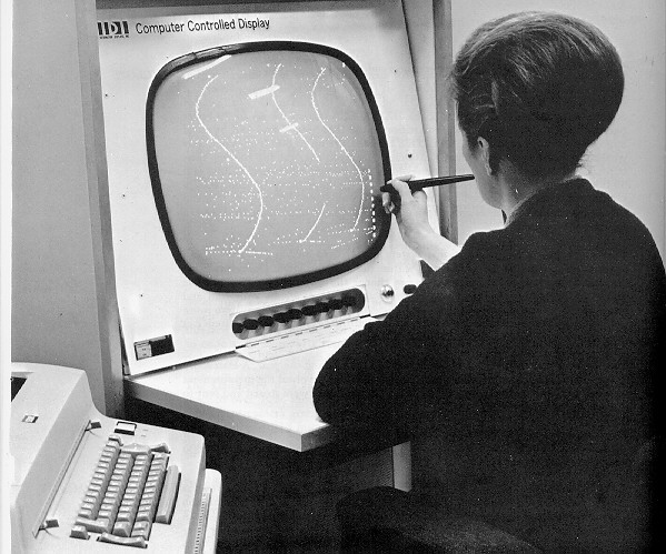 In 1969 a pen control on an IDI graphic display was used to patch up bubble chamber track results where pattern