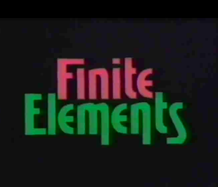 ATLAS.04.1012 Finite elements (1975) Atlas Computer Laboratory in association with the Royal College of Art; Peter Haddingham, Swift Film Productions • Animation and music by the ANTICS computer system • On an ICL 1906A computer and SD4020 microfilm recorder • Designed by Alan Kitching, produced by Jean Crow • With the Dept of Mechanical Engineering, Nottingham; Dept of Civil Engineering, Southampton • /gallery/videos/mp4s/Finite_Elements_F1027_PAL.mp4 • /gallery/videos/oggs/Finite_Elements_F1027_PAL.ogg • /gallery/videos/webms/Finite_Elements_F1027_PAL.webmsd.webm |