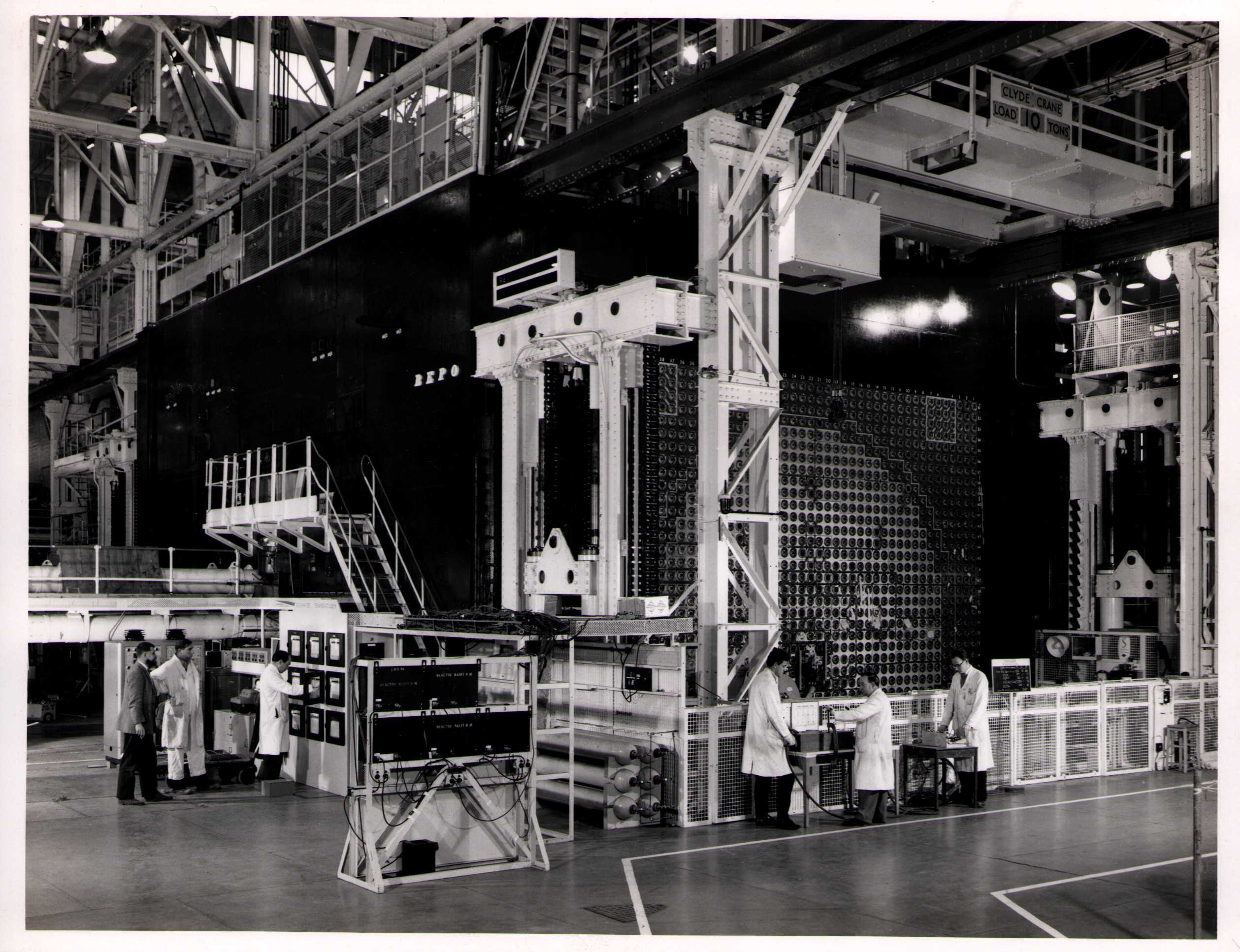 BEPO is a natural uranium fuelled graphite moderated reactor with a horizontal lattice which can attain a power of 6000 KW and is cooled by air. It has a medium neutron flux and is used for the irradiation of materials and production of isotopes. When built in 1948 BEPO was Europe's most powerful reactor.