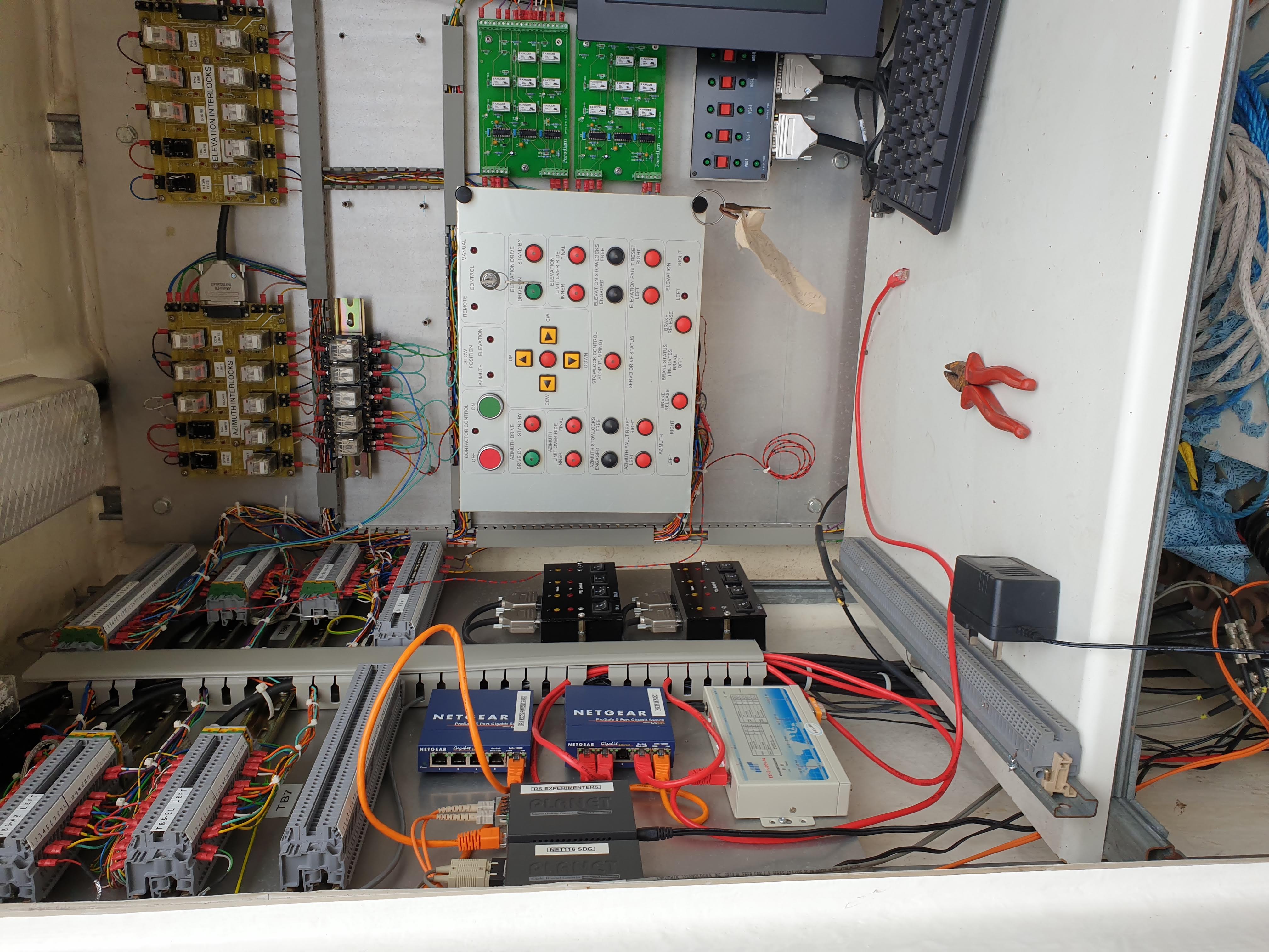 Our first thought was to locate the dish at Winkfield, making use of the receivers, transmitters and other equipment there, and proposals along these lines were put to the various parties in the project and accepted. However some awkwardness remained: although Winkfield is much closer to Slough than is Chilbolton, it still carries the disadvantages associated with setting up a system on a distinct site -- travelling to and fro, the need for more operating staff, carrying magnetic tapes full of IRAS data to Slough for processing, and so on. What eventually changed the situation was our receipt of another gift: this time we acquired a surplus receiver-transmitter from the Madrid STDN station, capable of handling the phase-modulated 2 GHz communications with IRAS. This, combined with the computer facilities of the Slough Control Centre, effectively does the same job as the hardware at Winkfield, and allowed us to plan a Tracking Station located at Ditton Park, with a tracking operation room in C Spur, closely tied in with the satellite control centre.