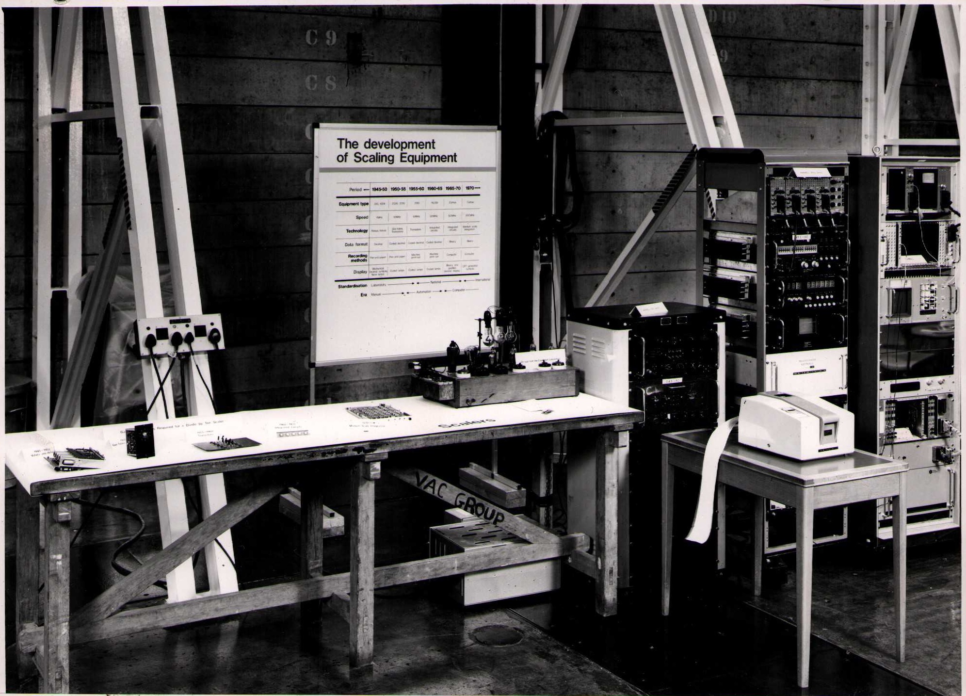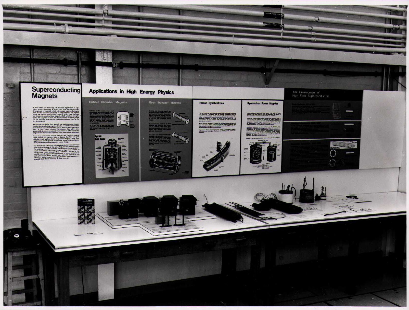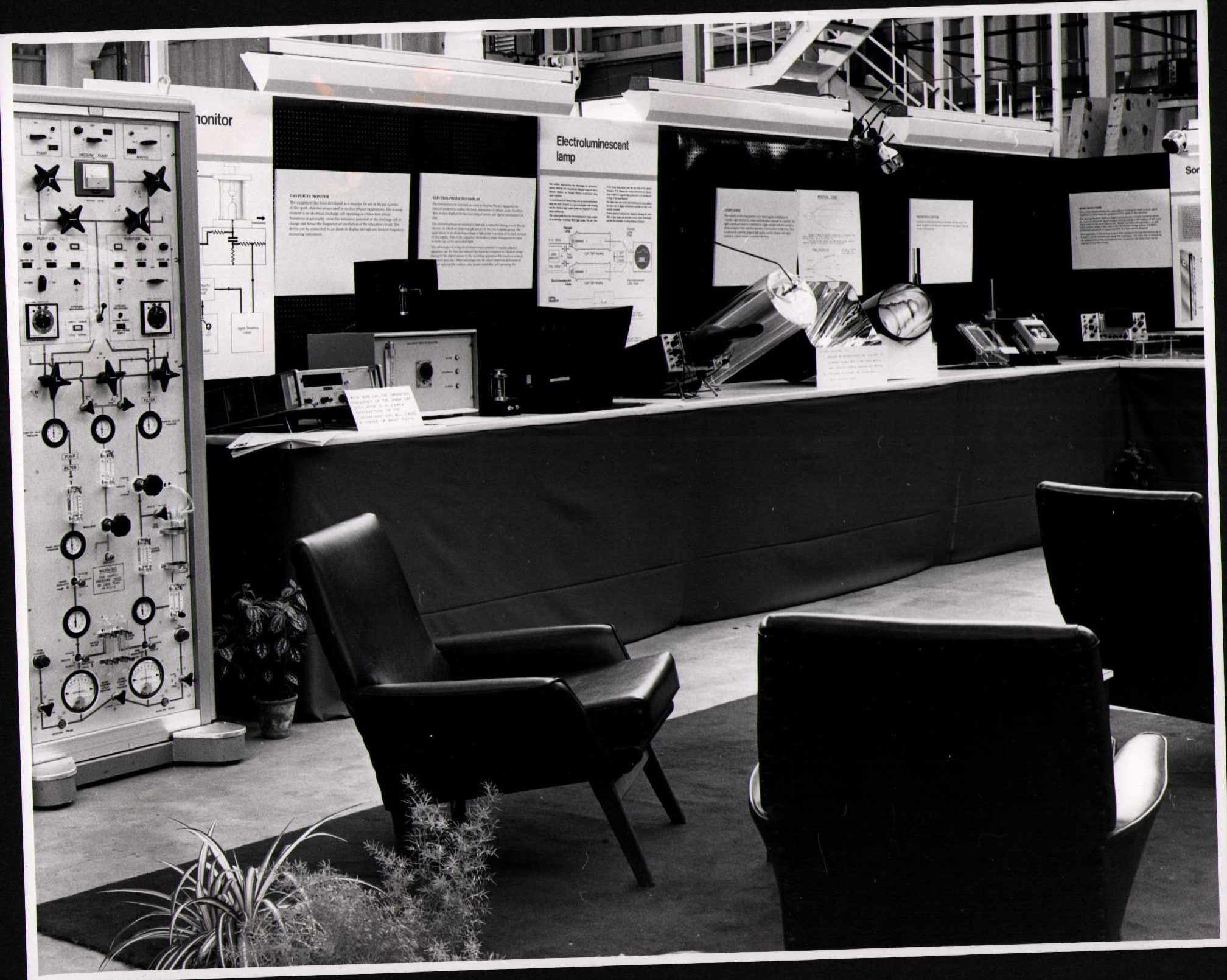 Photographs of exhibits from RHEL Open Week (1970) and Royal Society Rutherford Centenary (1971)