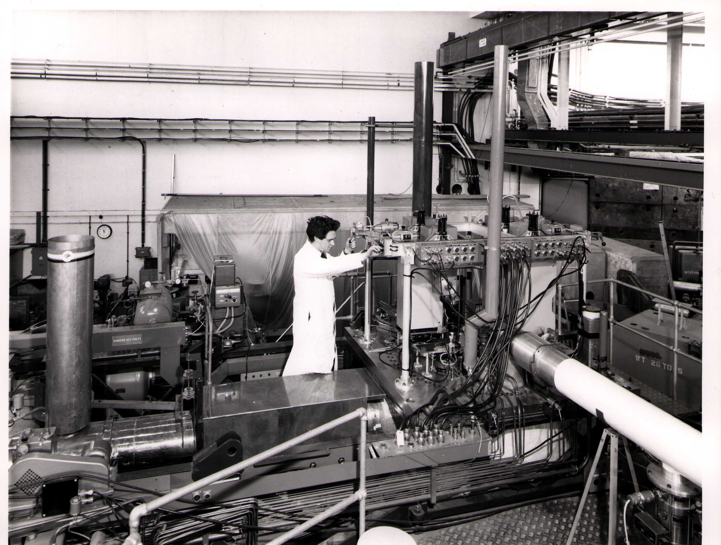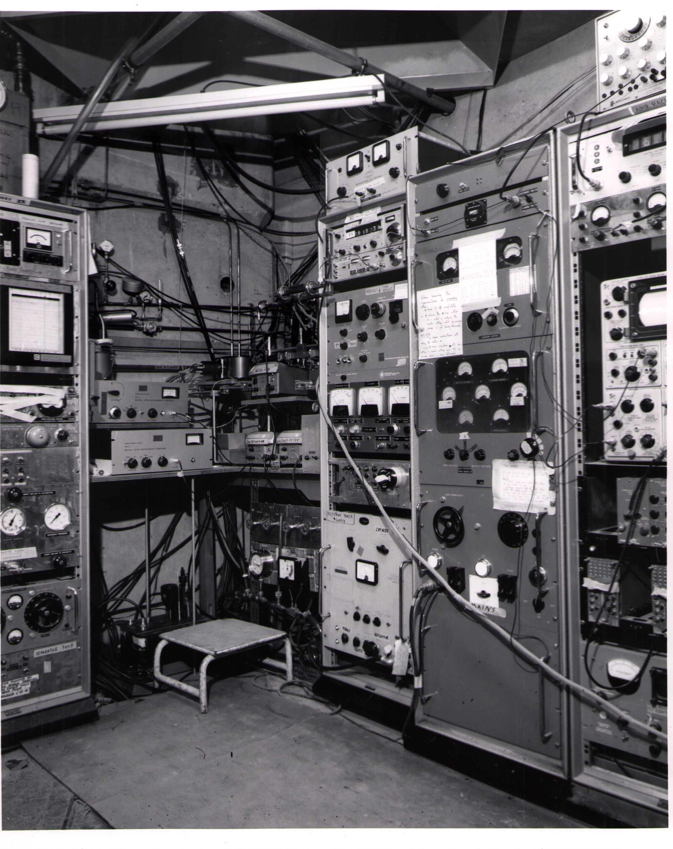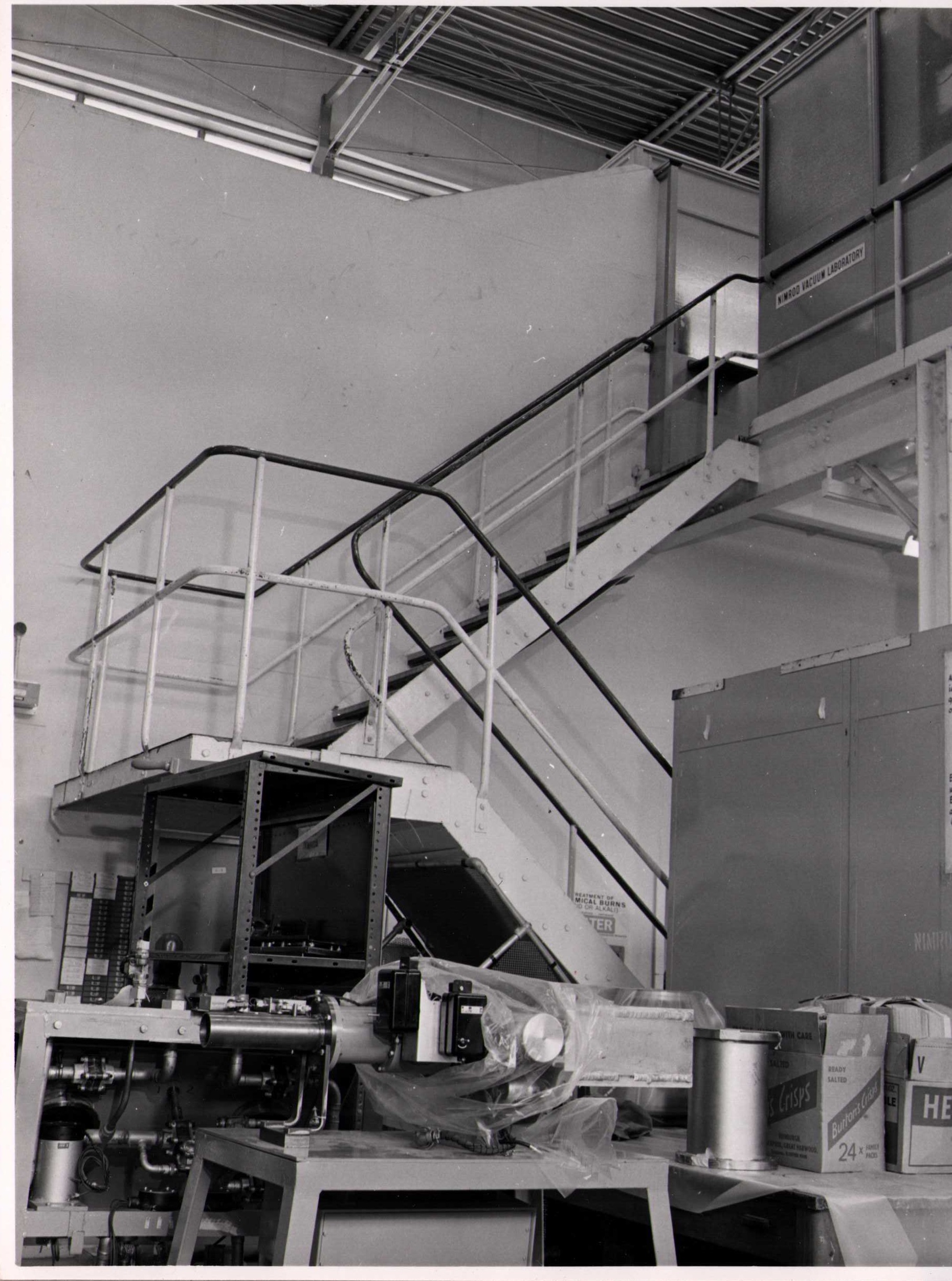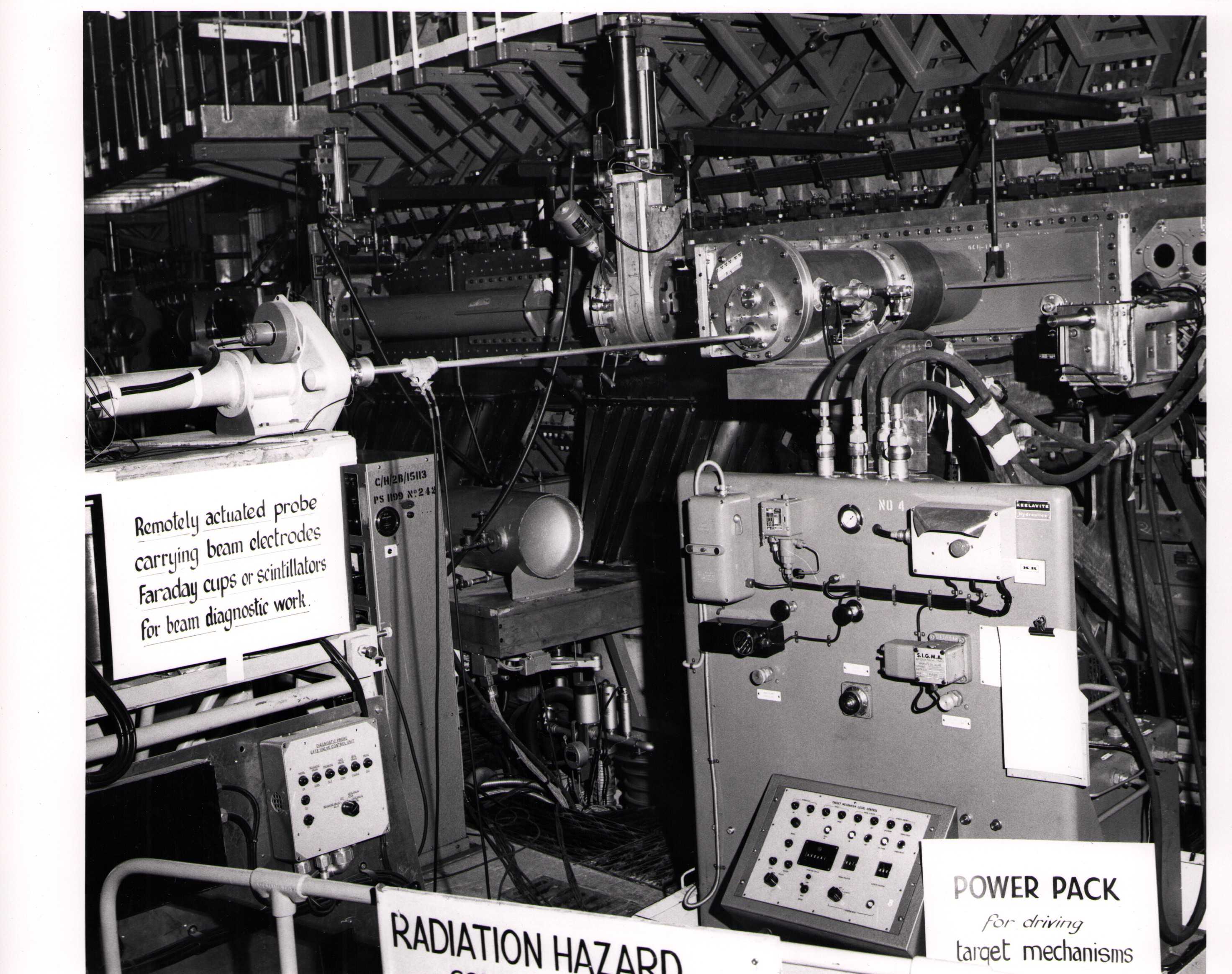 The explanatory notices on the equipment on these photos make it seem likely that they were taken in advance of an open day or VIP visit. The envelope in which they were found says "Nimrod Injector EHT Area; photo taken 25 March 1969."