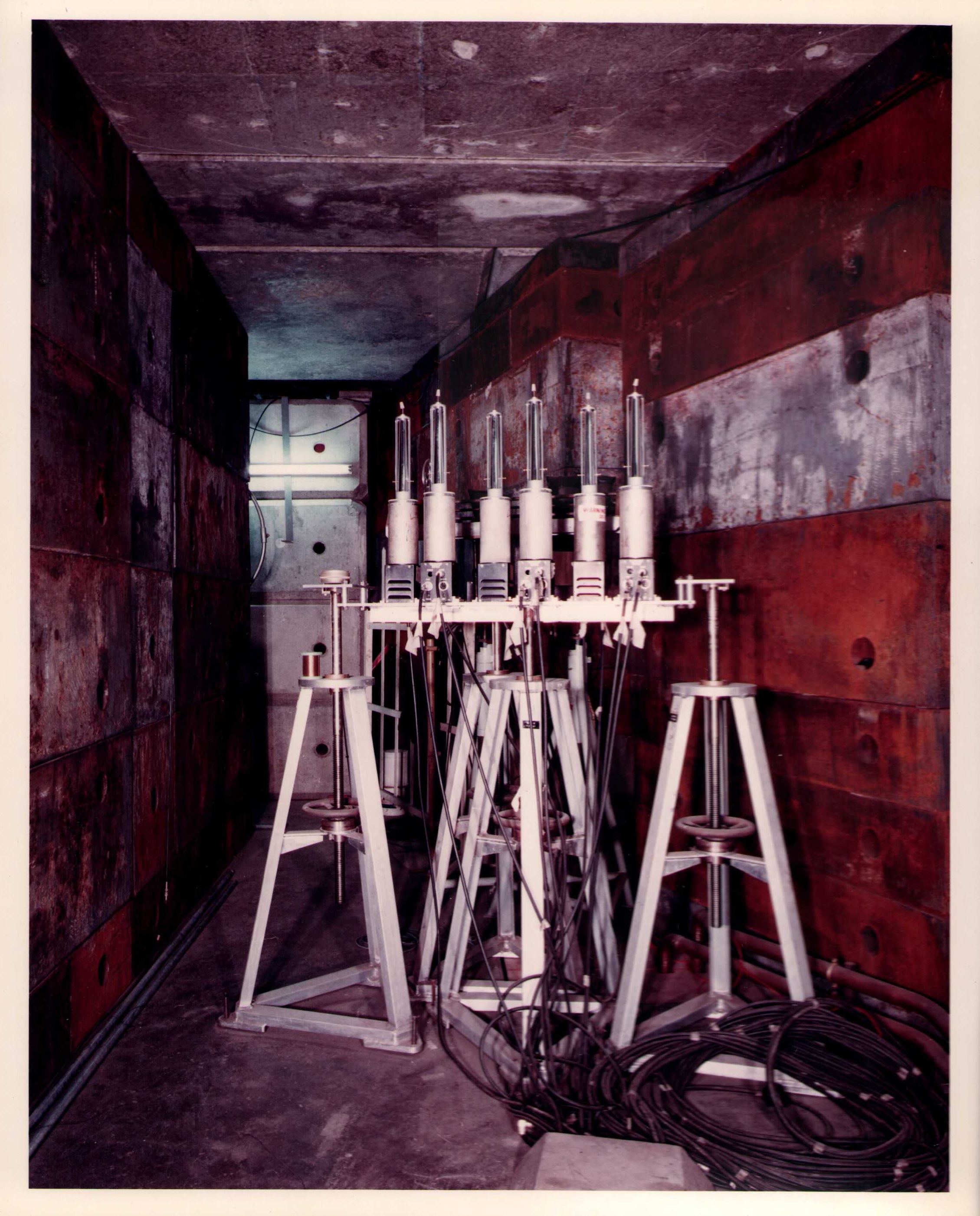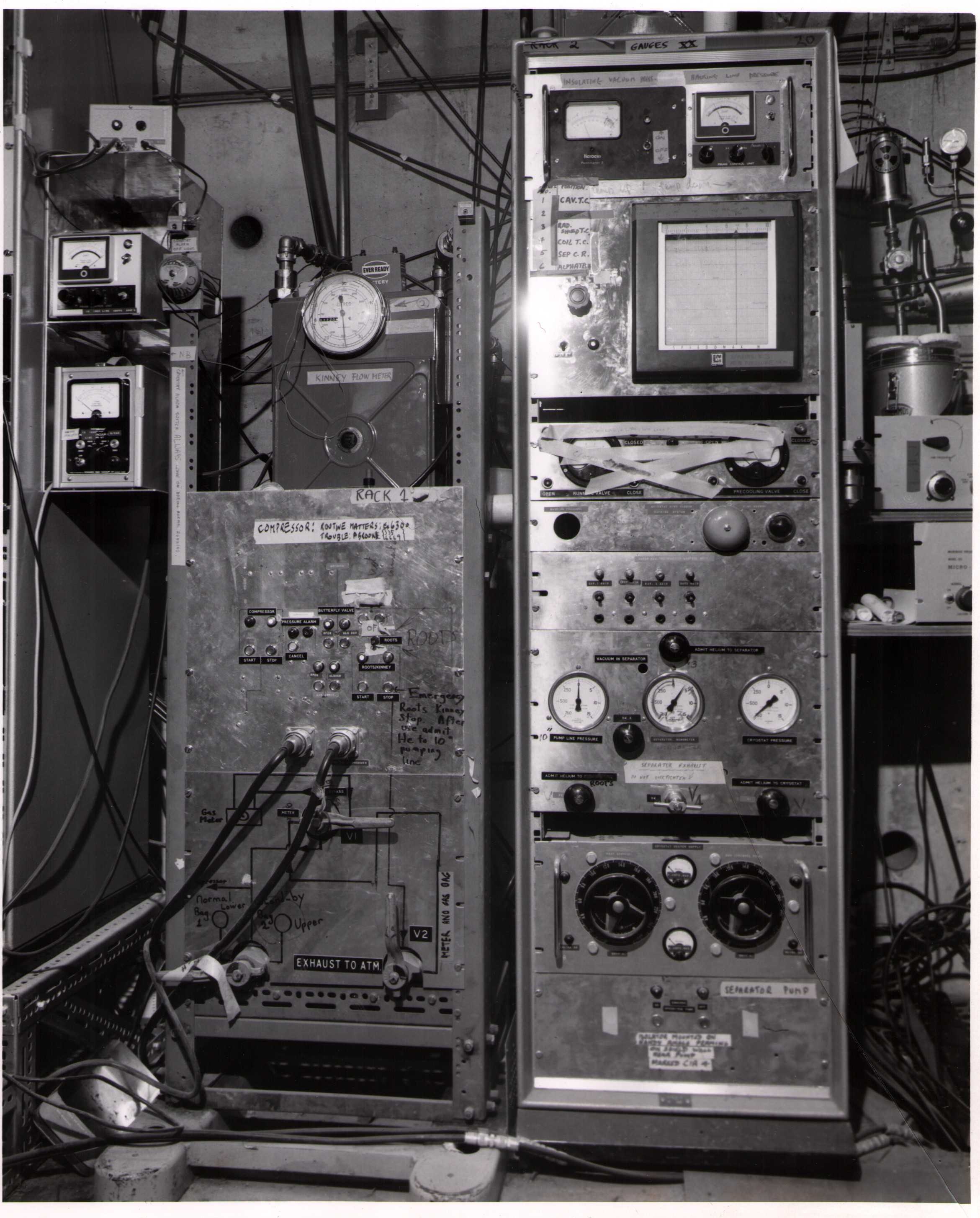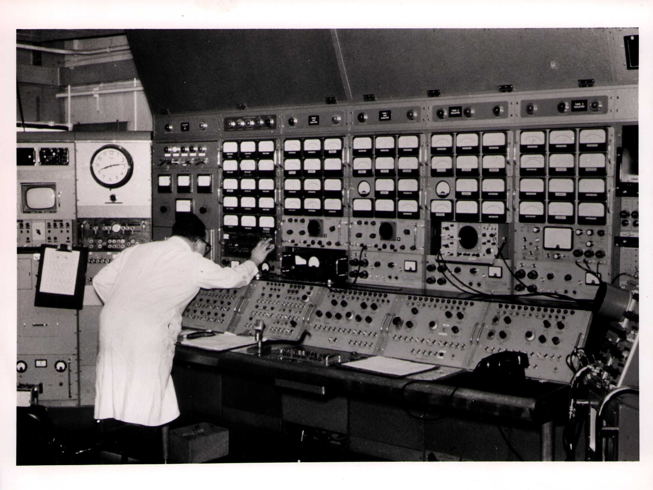The explanatory notices on the equipment on these photos make it seem likely that they were taken in advance of an open day or VIP visit. The envelope in which they were found says "Nimrod Injector EHT Area; photo taken 25 March 1969."