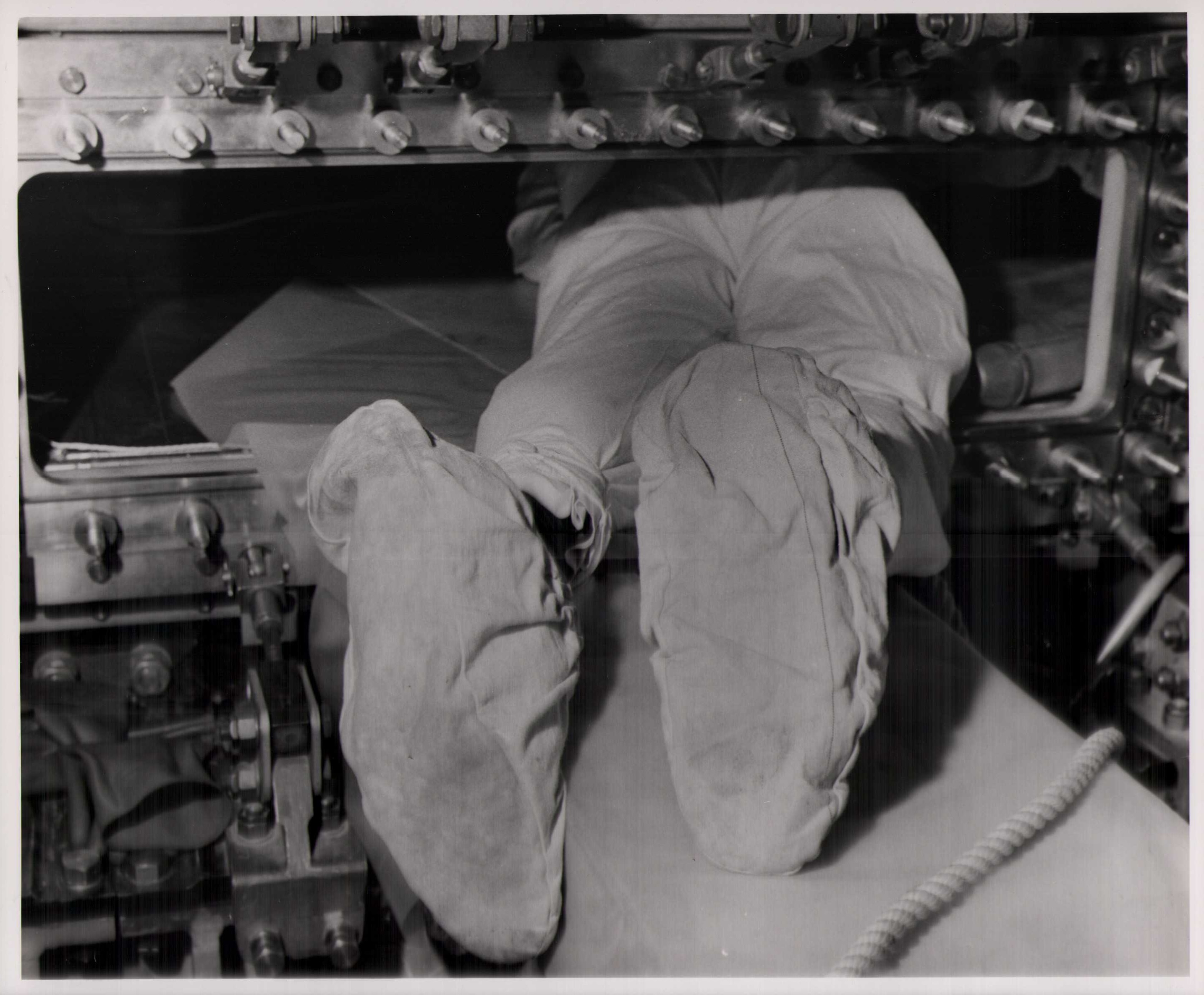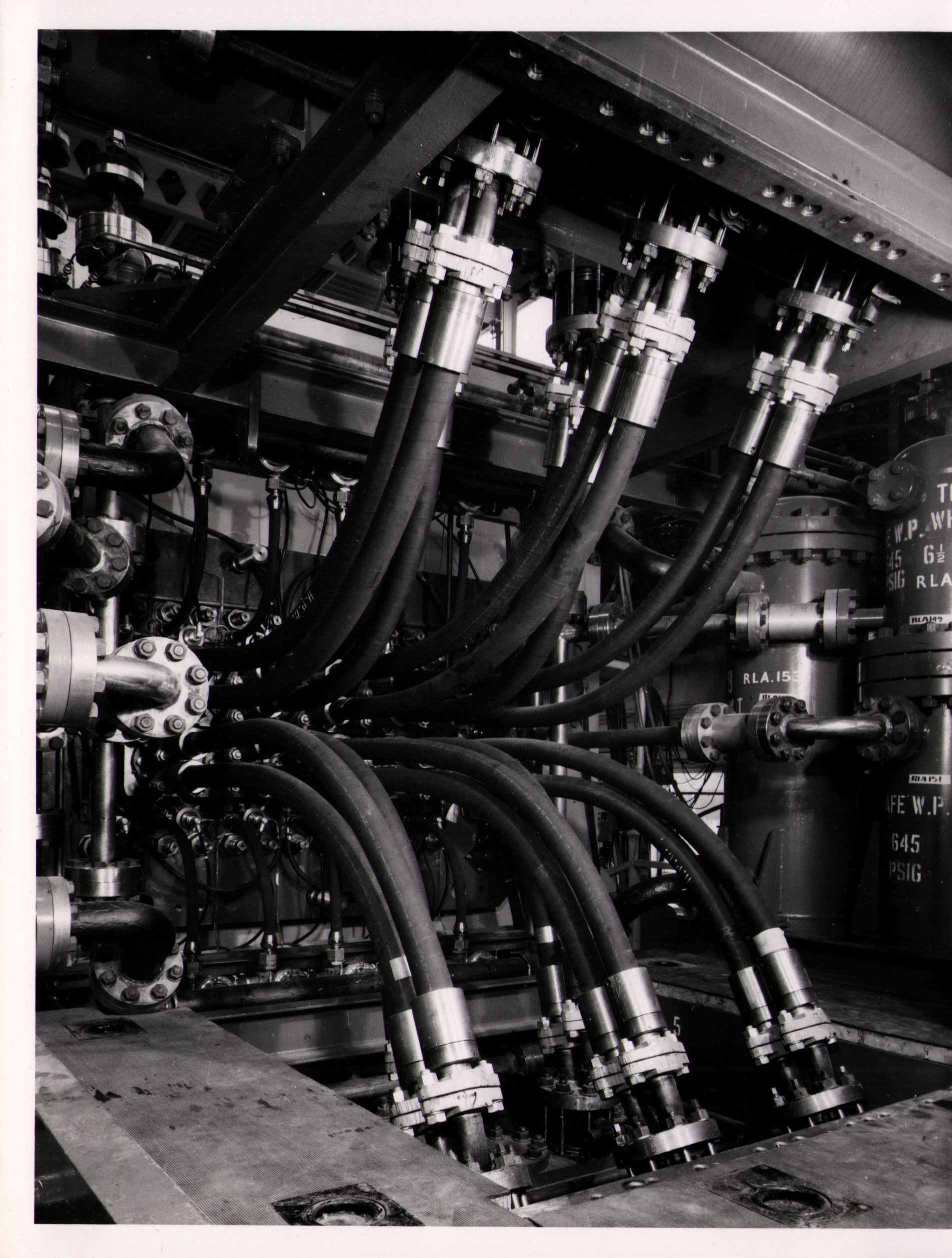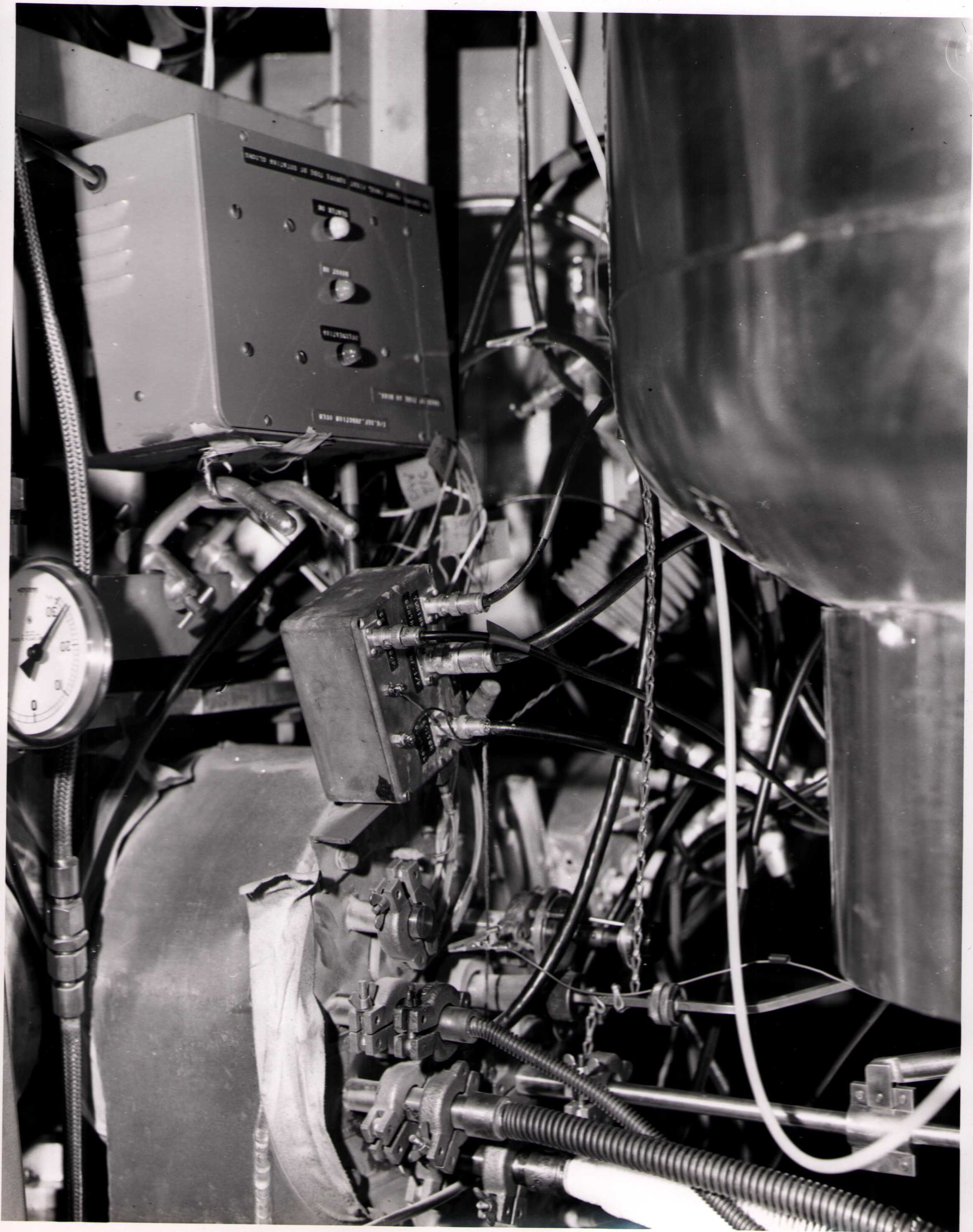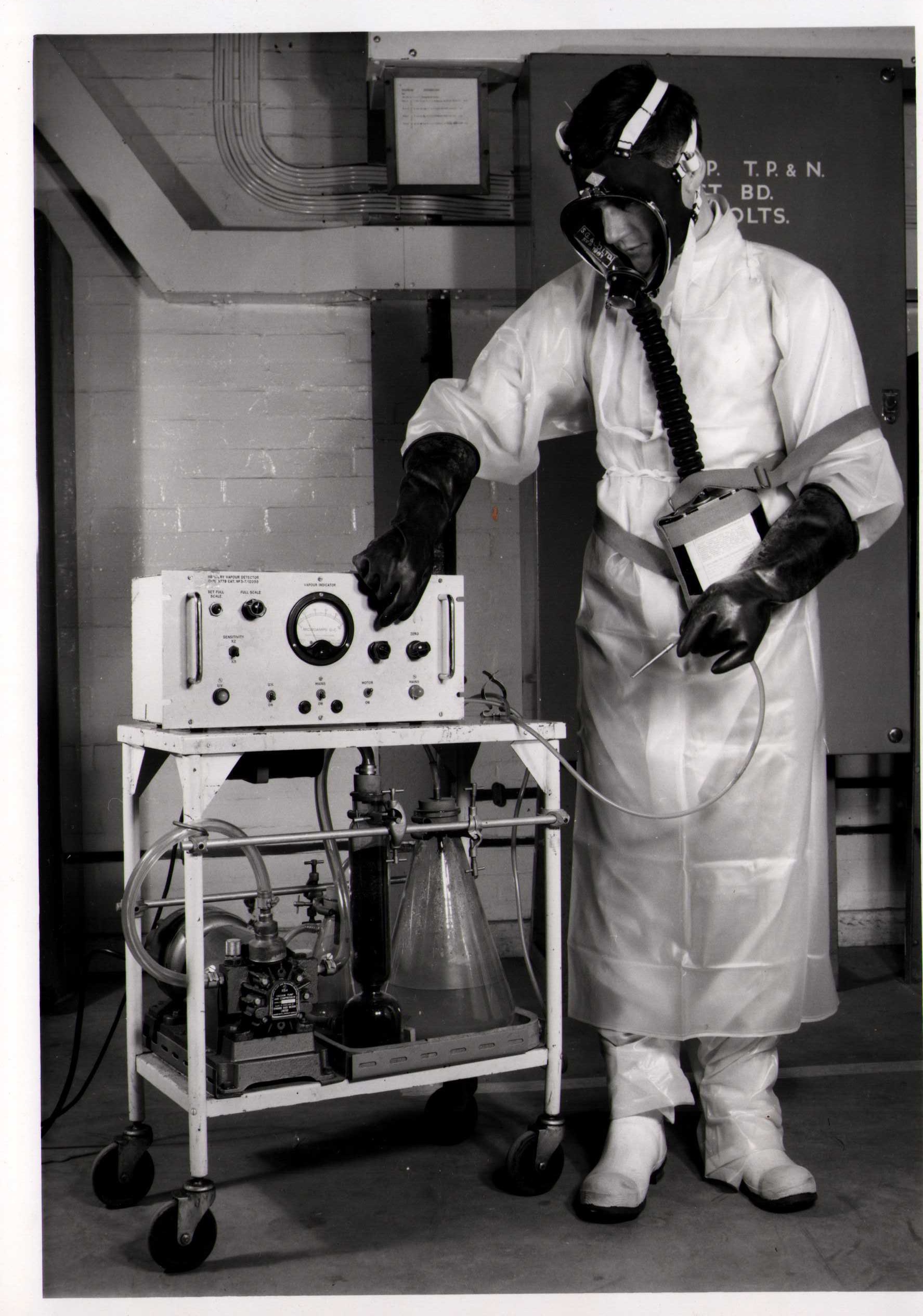 The explanatory notices on the equipment on these photos make it seem likely that they were taken in advance of an open day or VIP visit. The envelope in which they were found says "Nimrod Injector EHT Area; photo taken 25 March 1969."