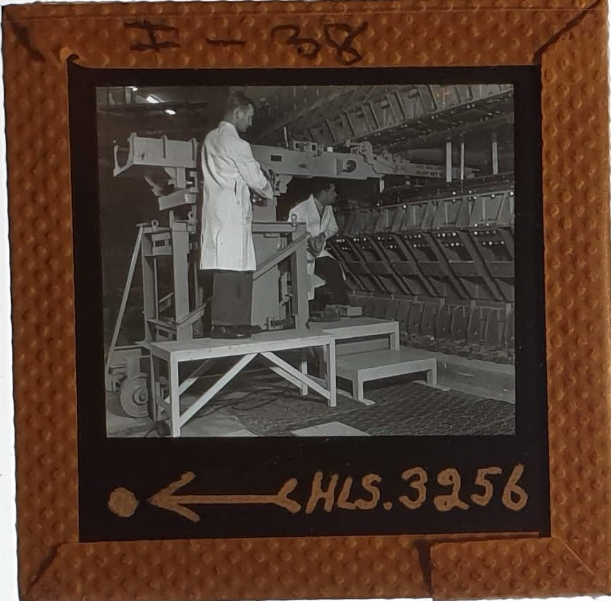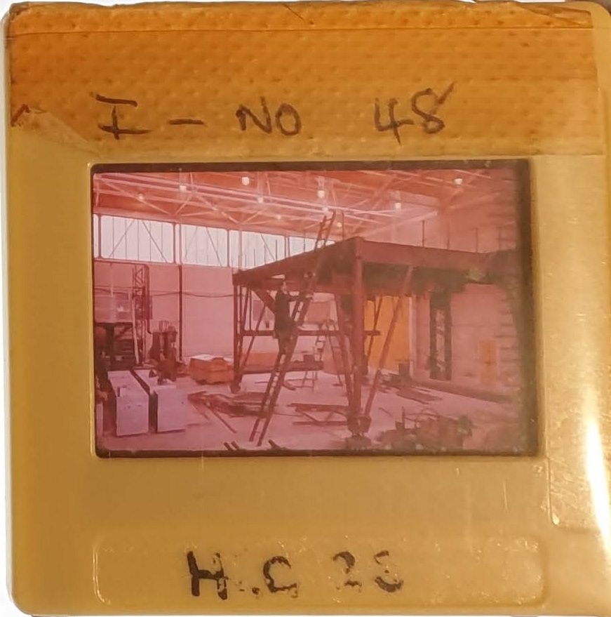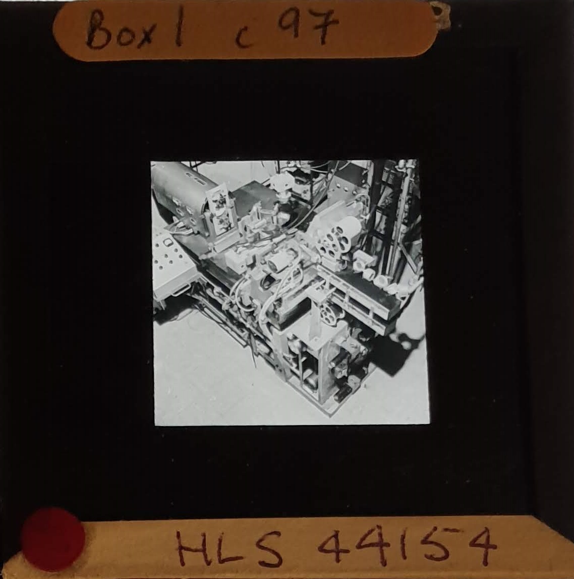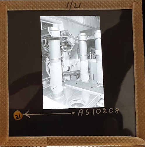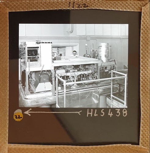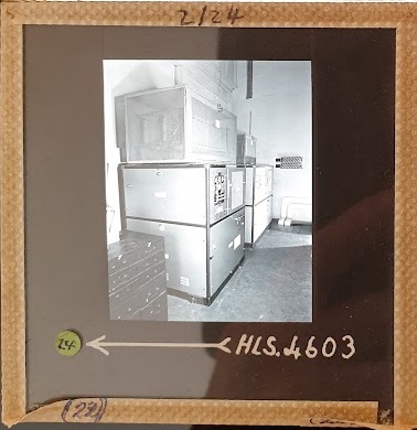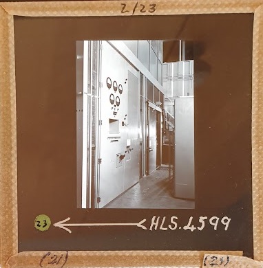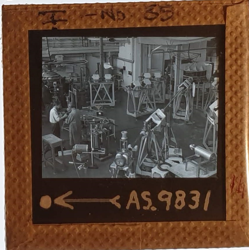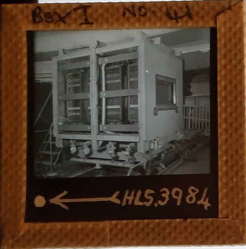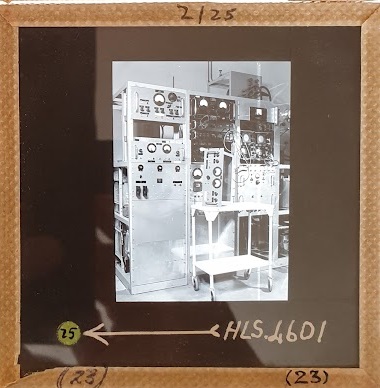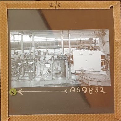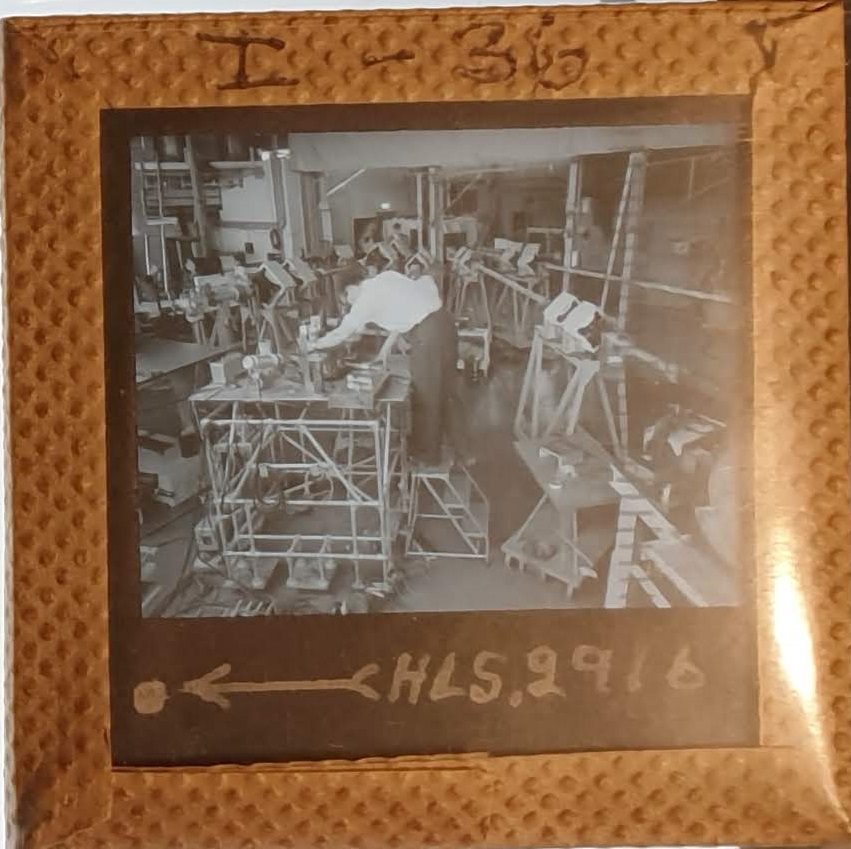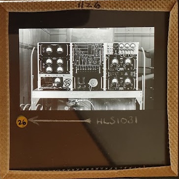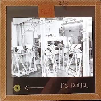 Amongst the artefacts discovered in the archives are a number of wooden boxes of 3¼ inch (8cm) photographic slides, plus wooden boxes and four-drawer metal cabinets of 2 inch (5cm) slides. The larger slides are of the PLA, the smaller slides are of the PLA and Nimrod and have been photographed simply as a record. Initials in the photograph ID are the series ID, though what each series actually is unclear. Most of the slides have been labelled with a negative number, slide sequence number and sometimes a box number but sometimes these labels are obscured, have fallen off altogether or the slide may have been "borrowed" then put back in the wrong place.