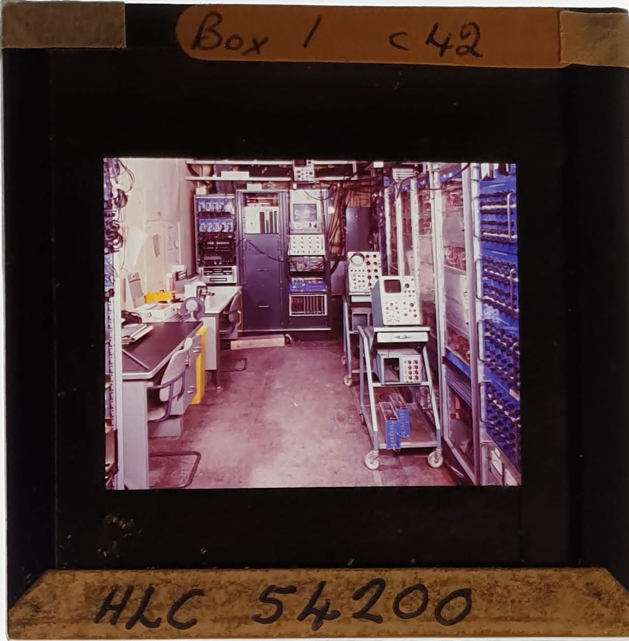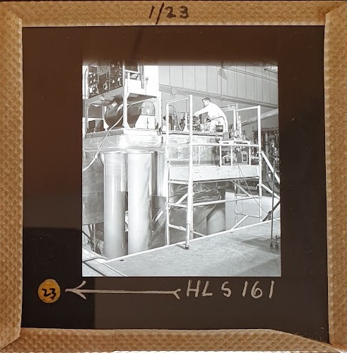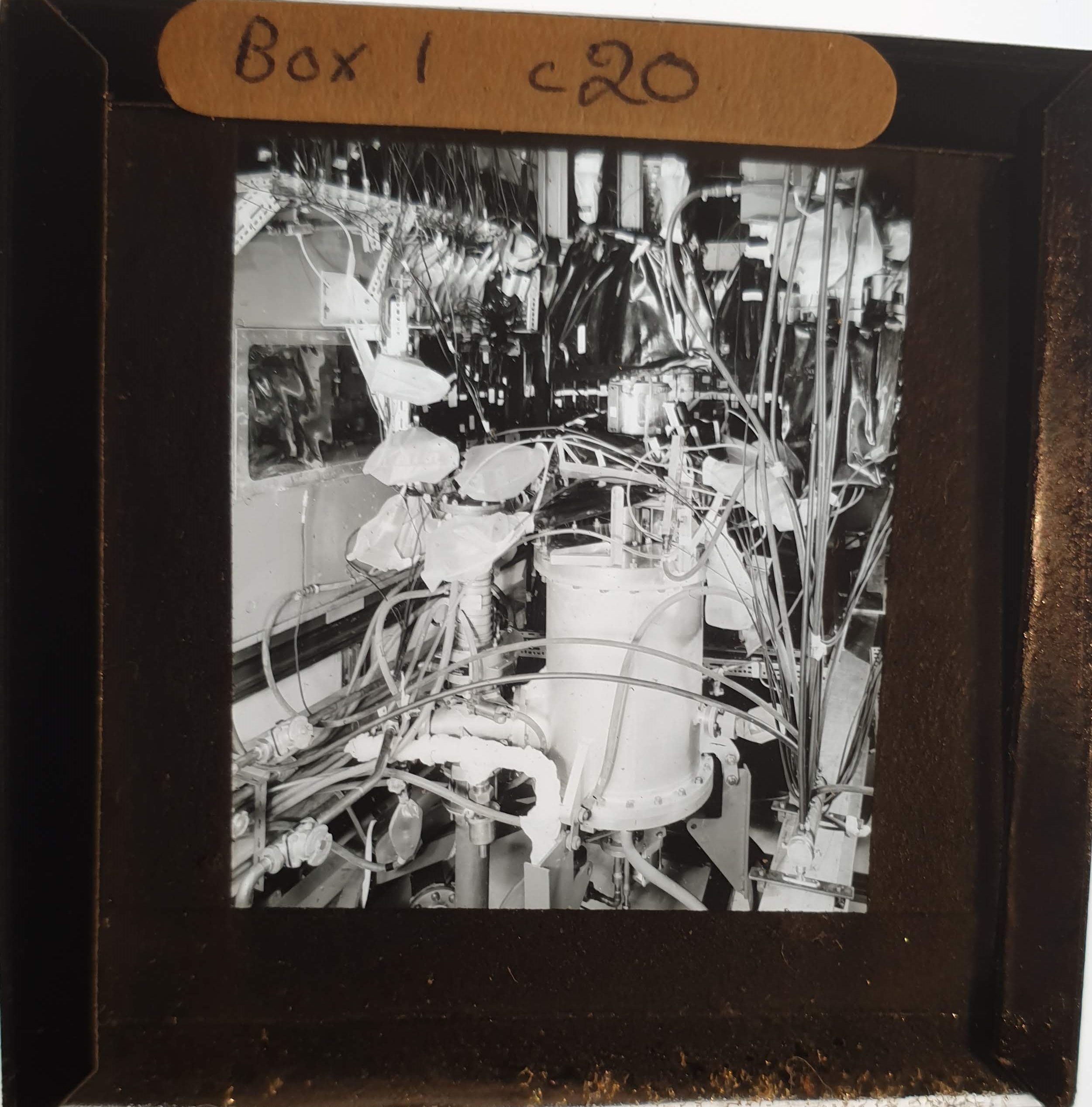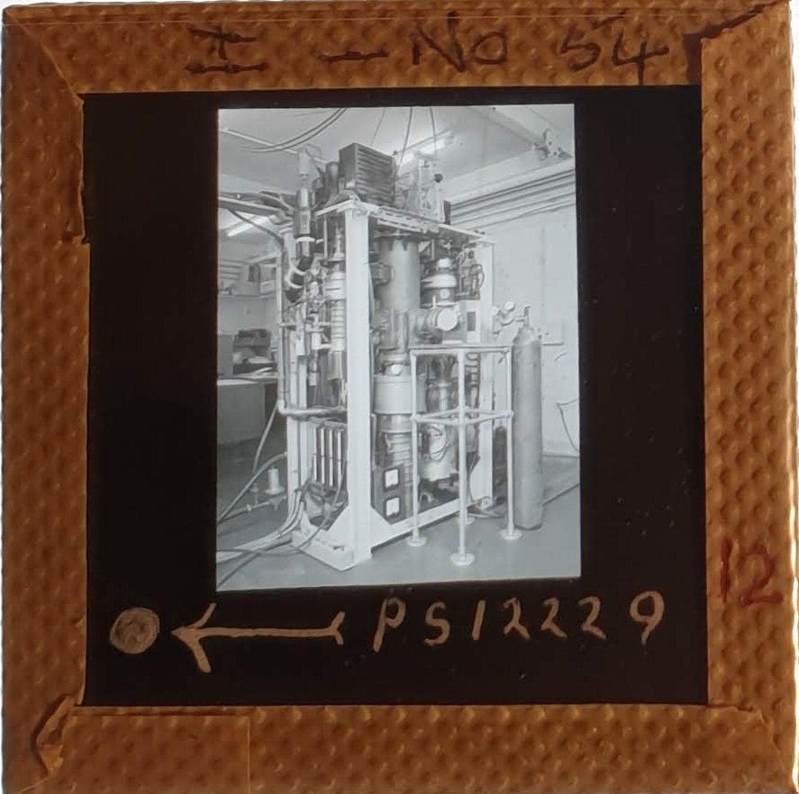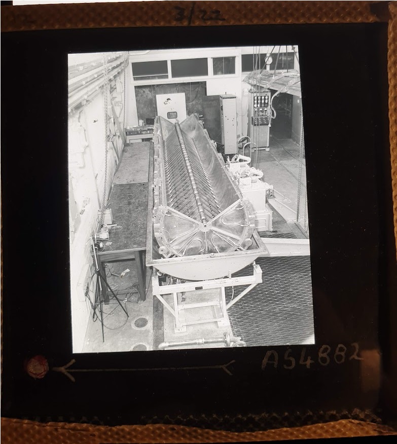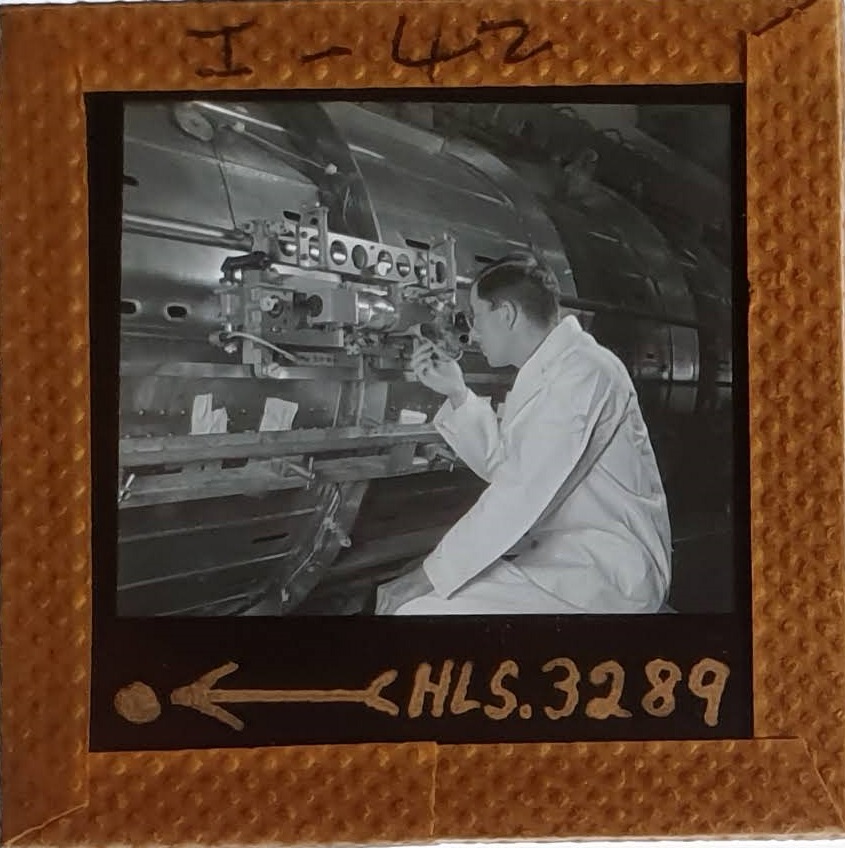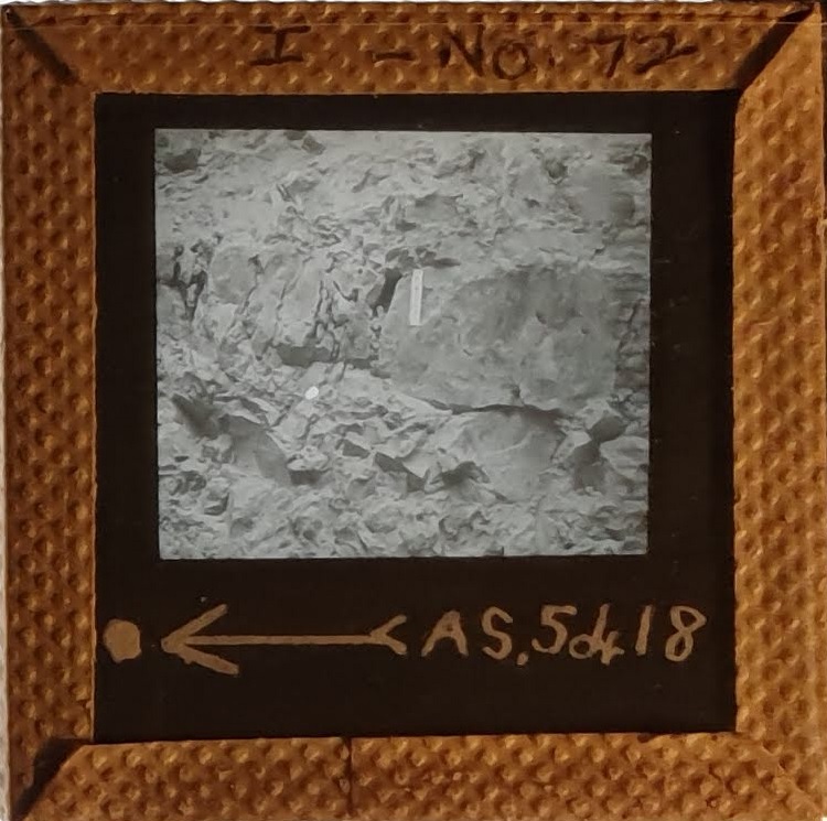 Amongst the artefacts discovered in the archives are a number of wooden boxes of 3¼ inch (8cm) photographic slides, plus wooden boxes and four-drawer metal cabinets of 2 inch (5cm) slides. The larger slides are of the PLA, the smaller slides are of the PLA and Nimrod and have been photographed simply as a record. Initials in the photograph ID are the series ID, though what each series actually is unclear. Most of the slides have been labelled with a negative number, slide sequence number and sometimes a box number but sometimes these labels are obscured, have fallen off altogether or the slide may have been "borrowed" then put back in the wrong place.