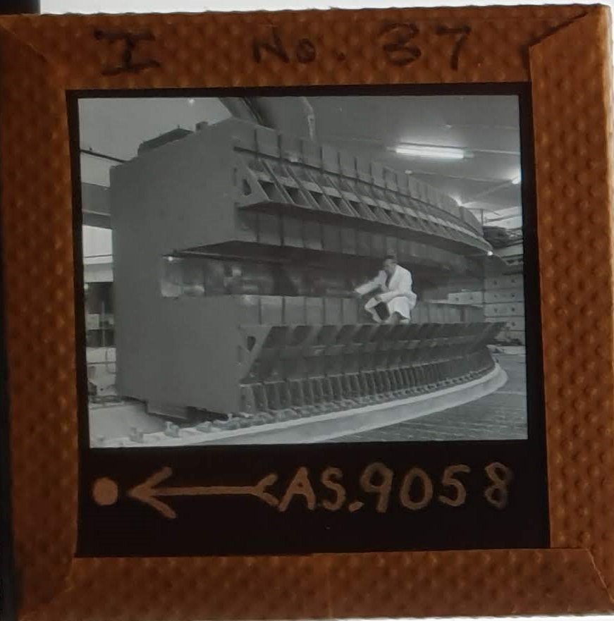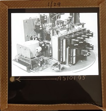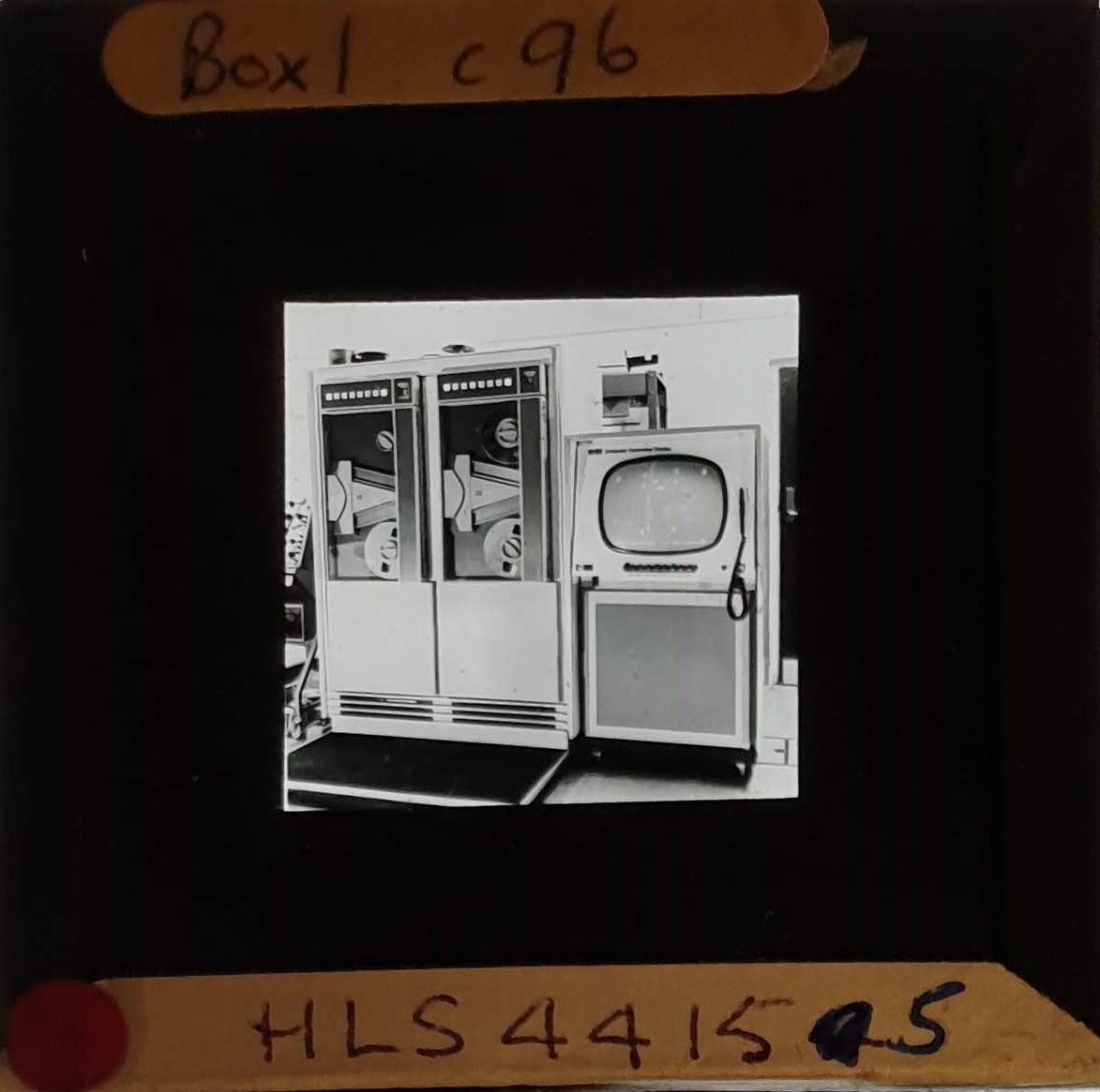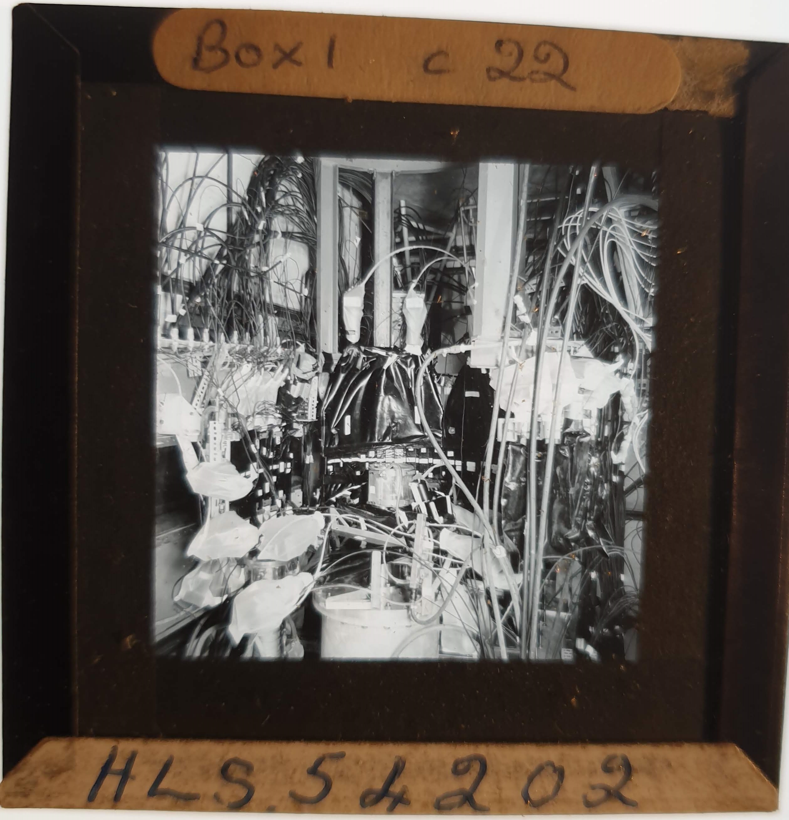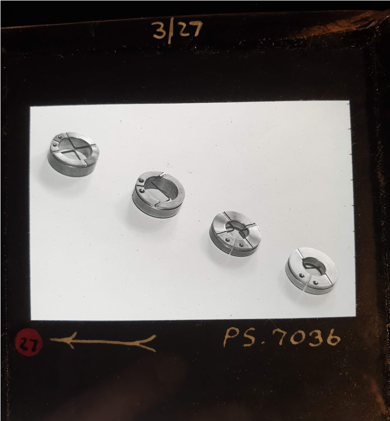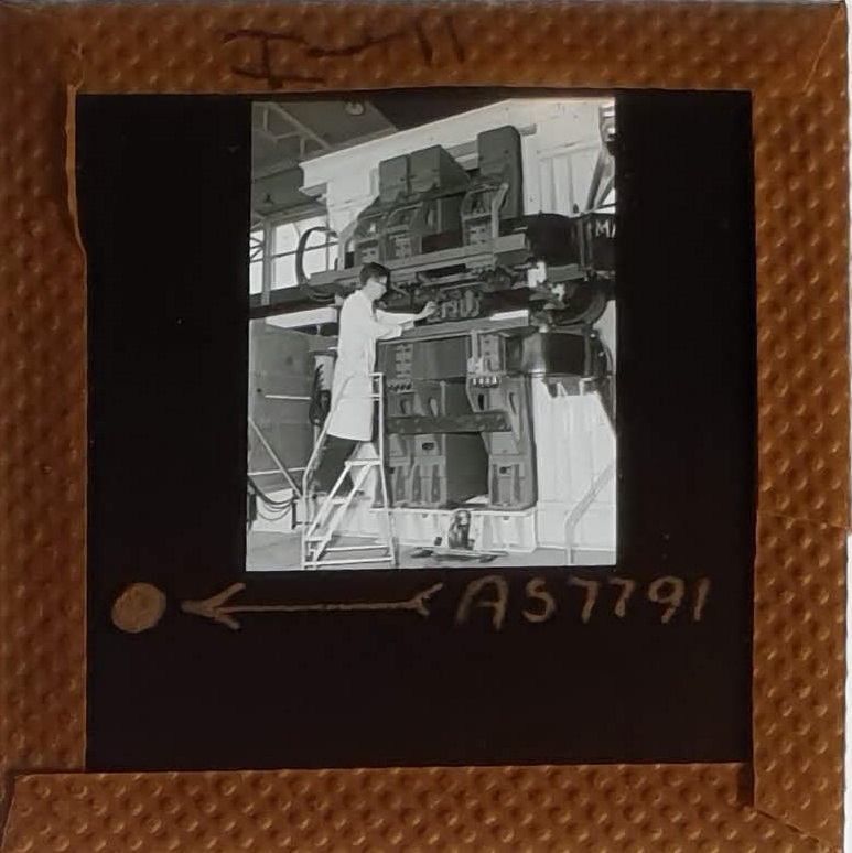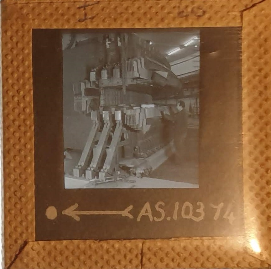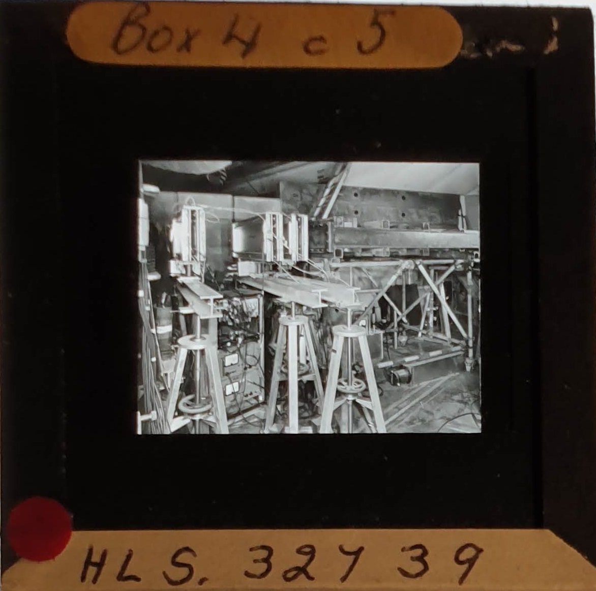 Amongst the artefacts discovered in the archives are a number of wooden boxes of 3¼ inch (8cm) photographic slides, plus wooden boxes and four-drawer metal cabinets of 2 inch (5cm) slides. The larger slides are of the PLA, the smaller slides are of the PLA and Nimrod and have been photographed simply as a record. Initials in the photograph ID are the series ID, though what each series actually is unclear. Most of the slides have been labelled with a negative number, slide sequence number and sometimes a box number but sometimes these labels are obscured, have fallen off altogether or the slide may have been "borrowed" then put back in the wrong place.