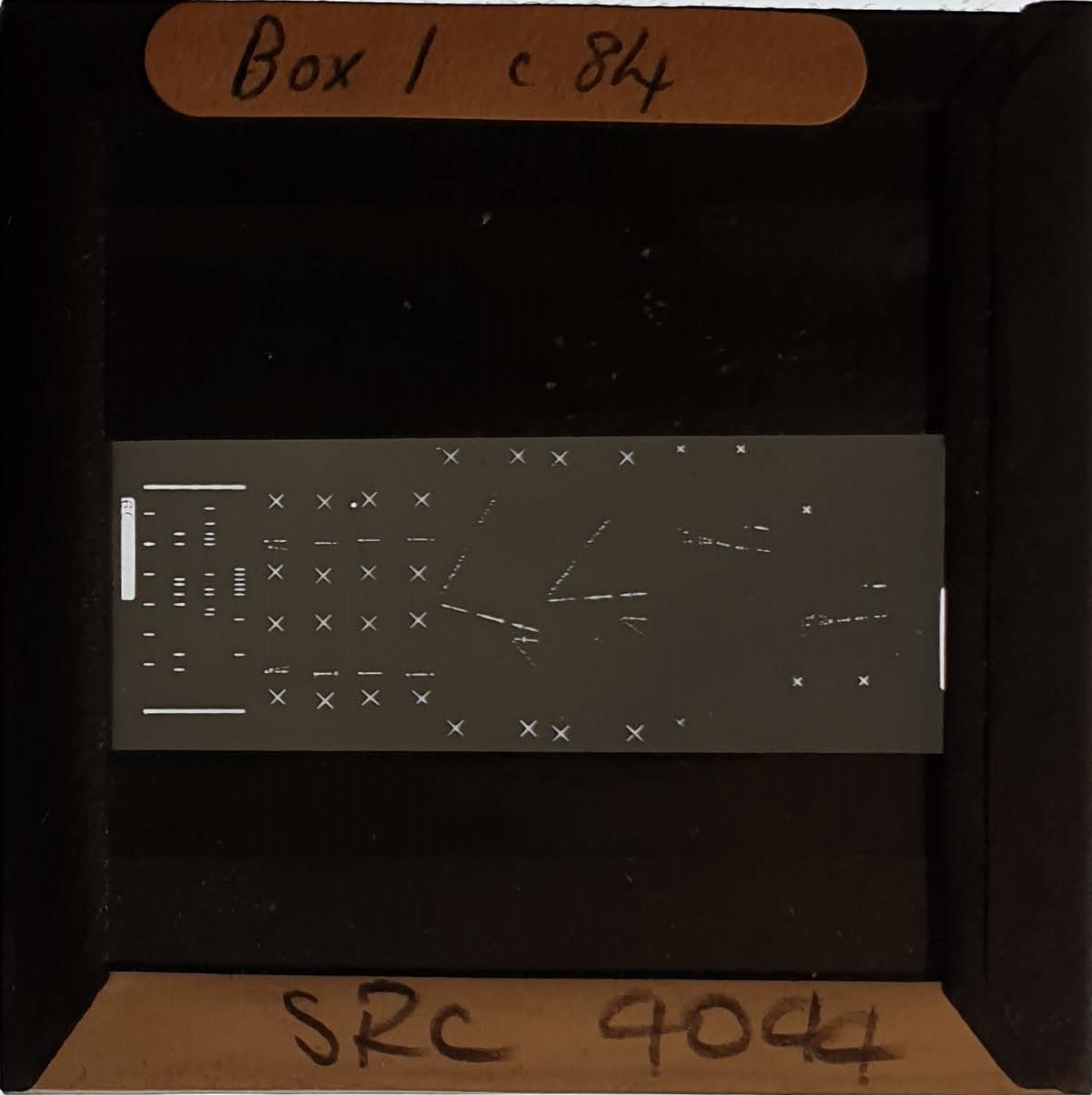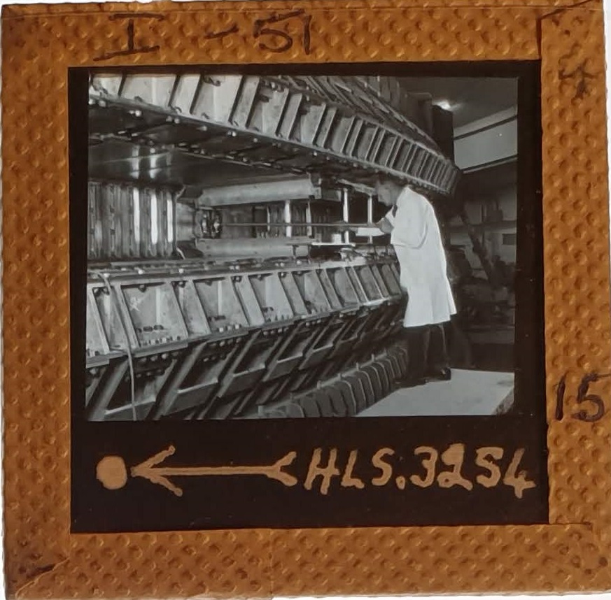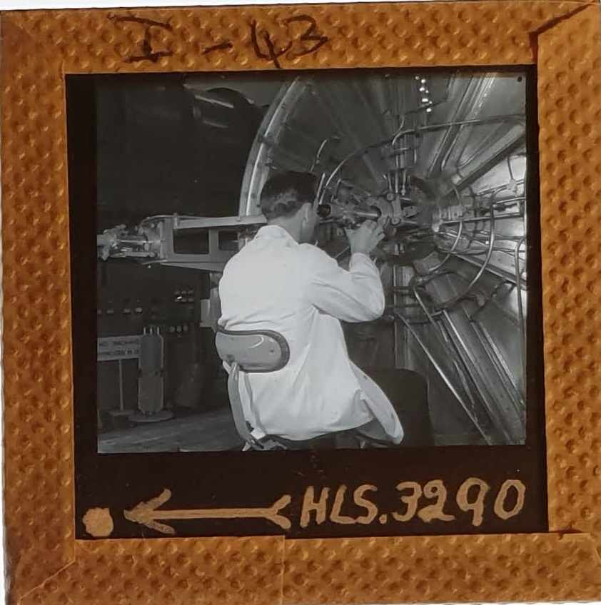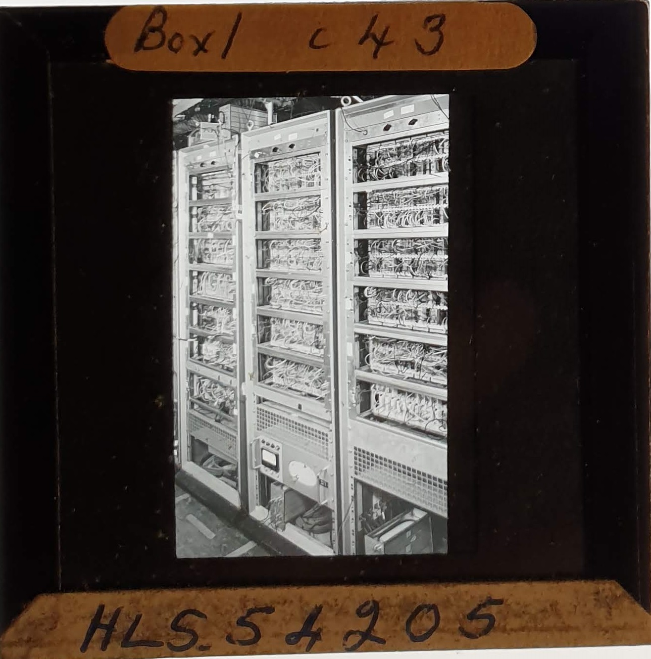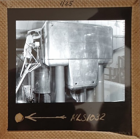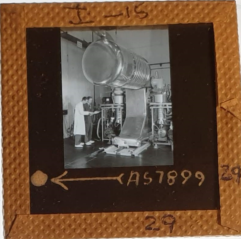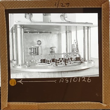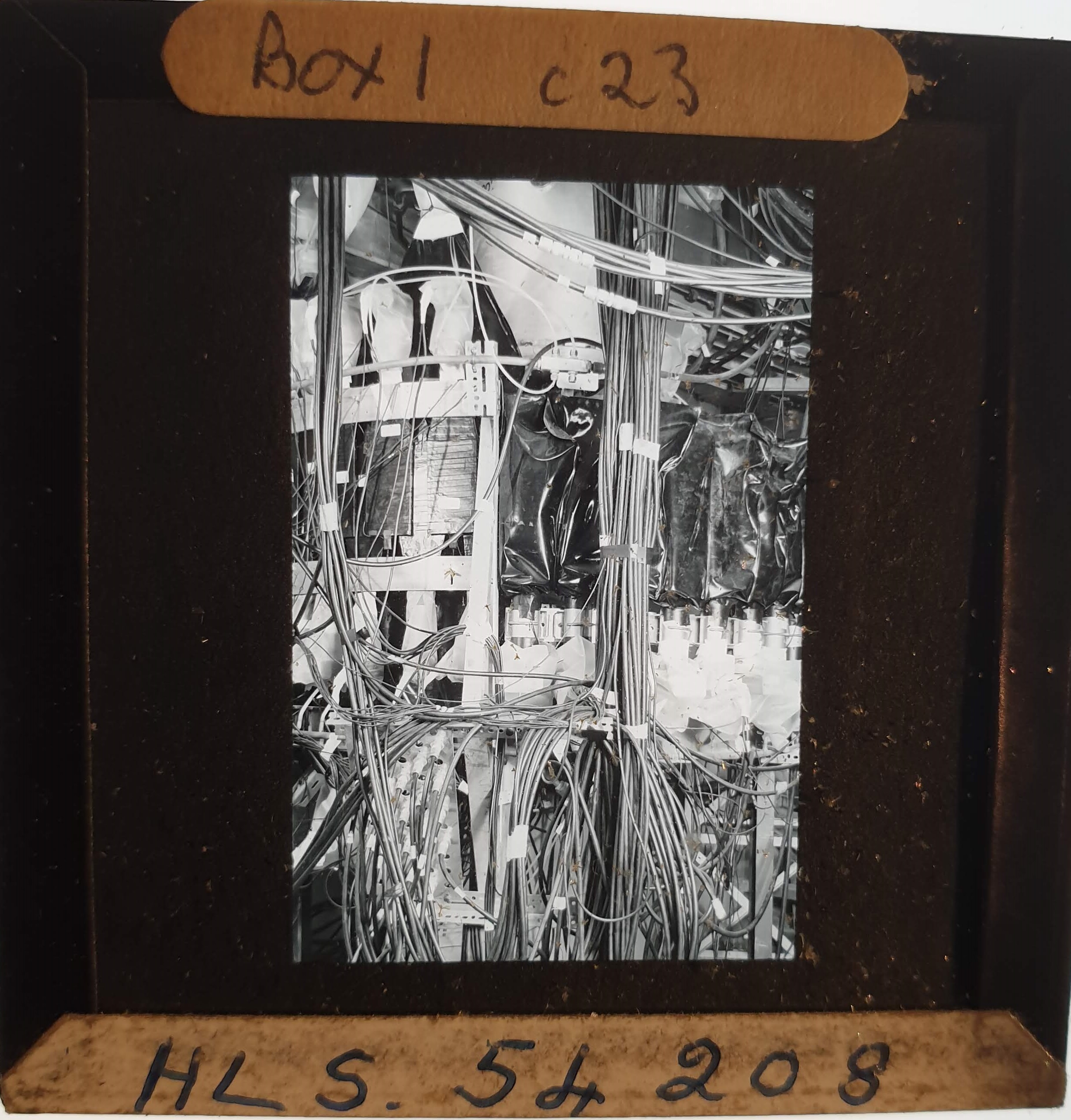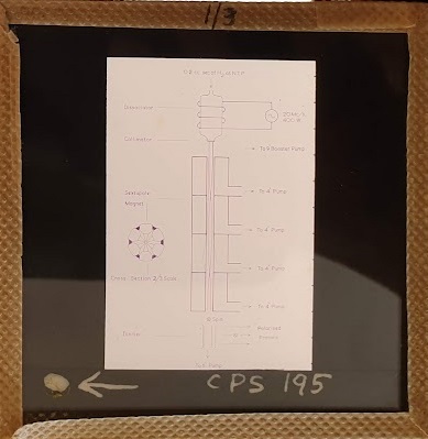 Amongst the artefacts discovered in the archives are a number of wooden boxes of 3¼ inch (8cm) photographic slides, plus wooden boxes and four-drawer metal cabinets of 2 inch (5cm) slides. The larger slides are of the PLA, the smaller slides are of the PLA and Nimrod and have been photographed simply as a record. Initials in the photograph ID are the series ID, though what each series actually is unclear. Most of the slides have been labelled with a negative number, slide sequence number and sometimes a box number but sometimes these labels are obscured, have fallen off altogether or the slide may have been "borrowed" then put back in the wrong place.