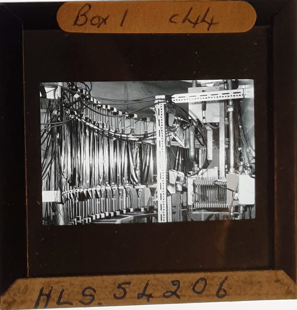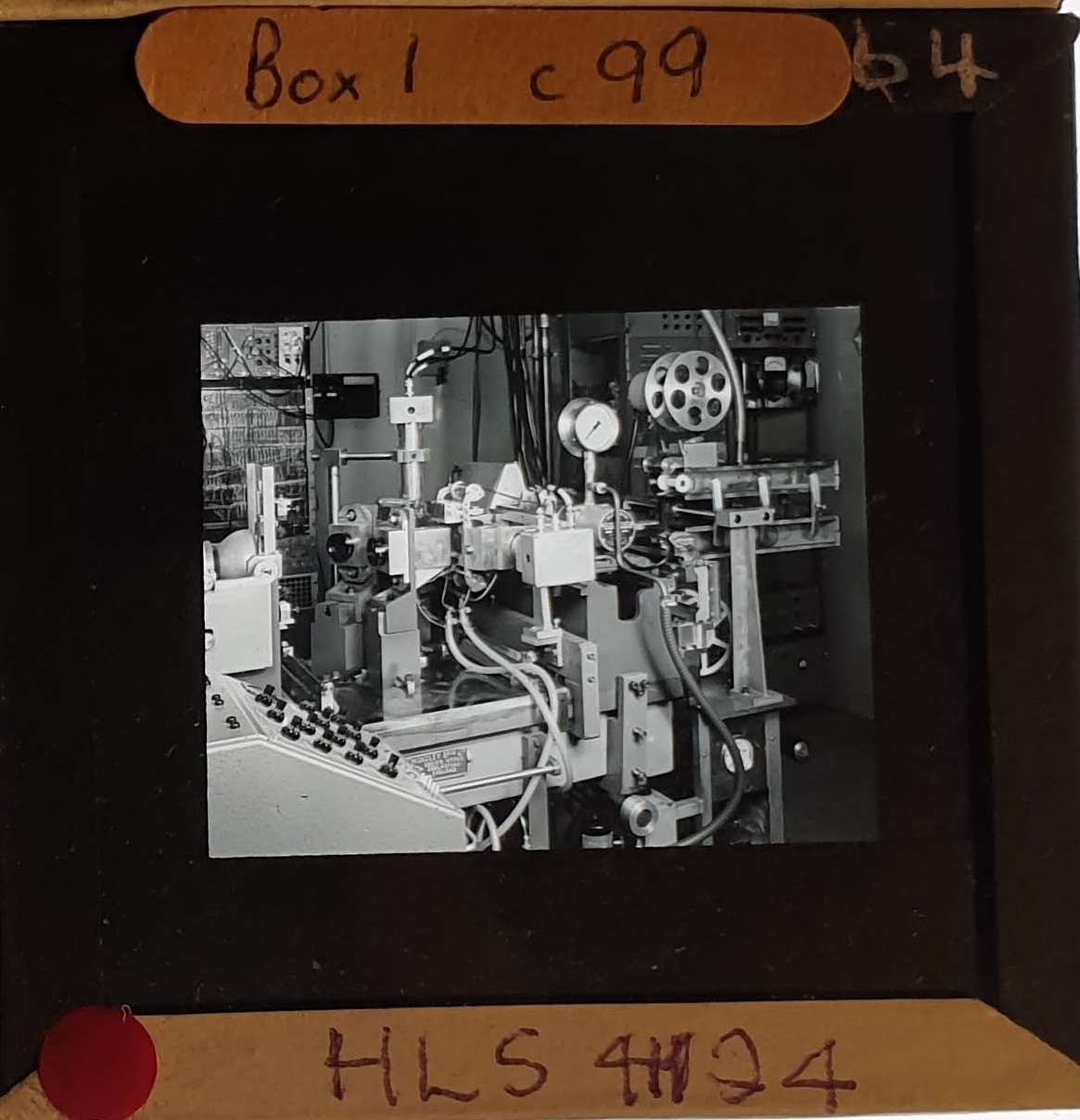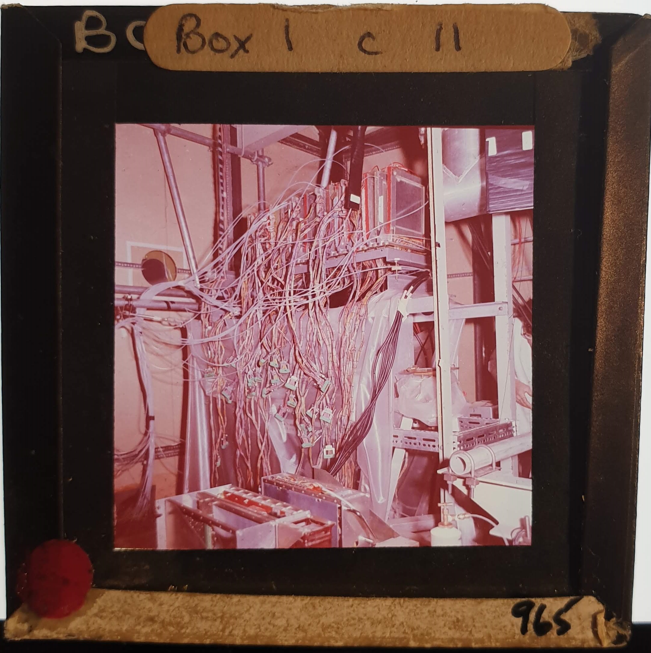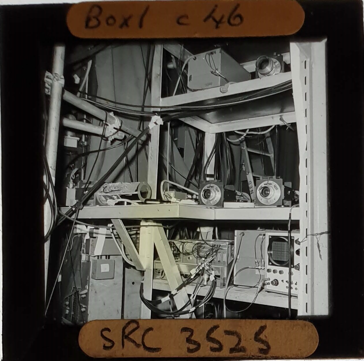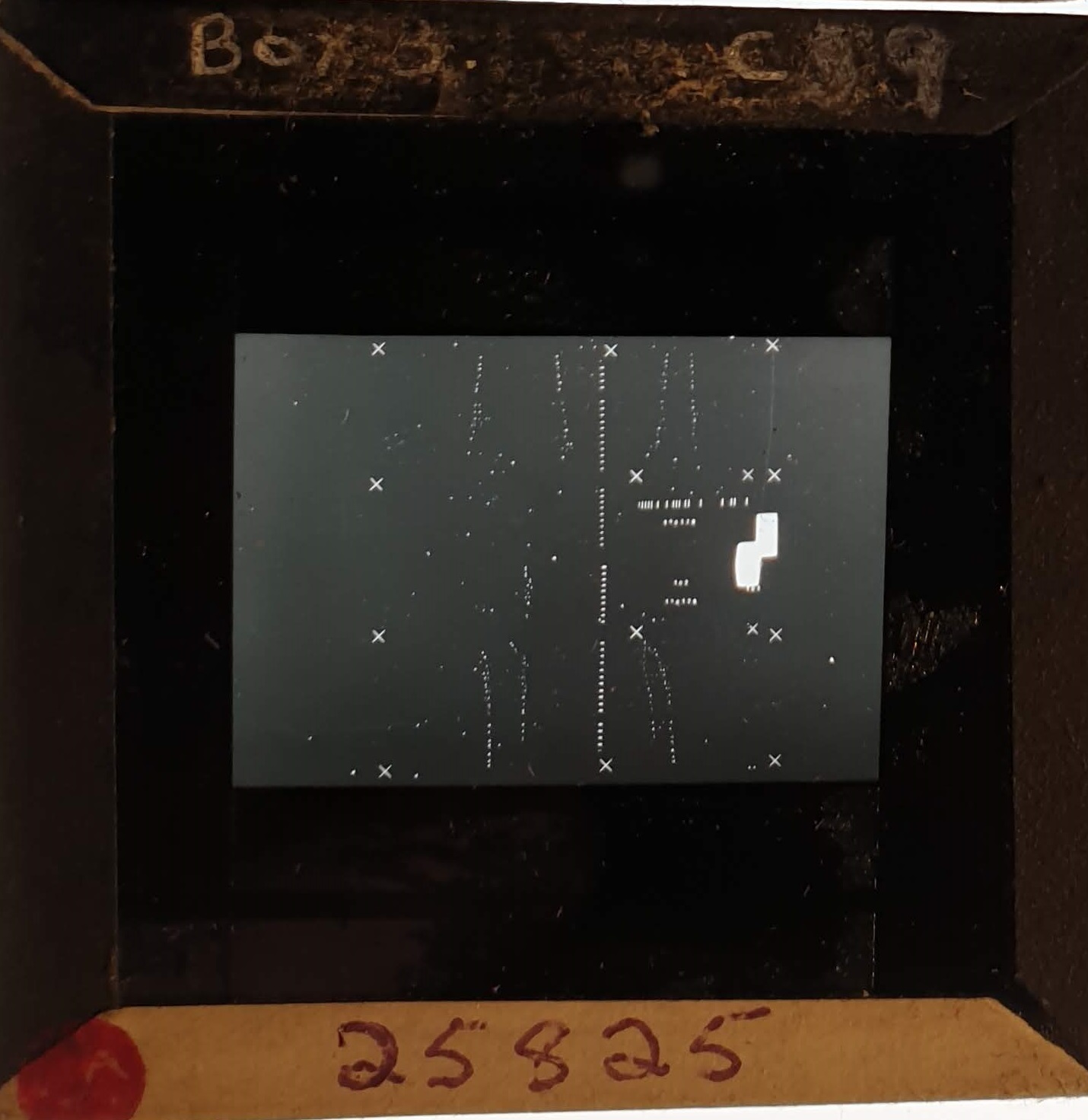 Amongst the artefacts discovered in the archives are a number of wooden boxes of 3¼ inch (8cm) photographic slides, plus wooden boxes and four-drawer metal cabinets of 2 inch (5cm) slides. The larger slides are of the PLA, the smaller slides are of the PLA and Nimrod and have been photographed simply as a record. Initials in the photograph ID are the series ID, though what each series actually is unclear. Most of the slides have been labelled with a negative number, slide sequence number and sometimes a box number but sometimes these labels are obscured, have fallen off altogether or the slide may have been "borrowed" then put back in the wrong place.