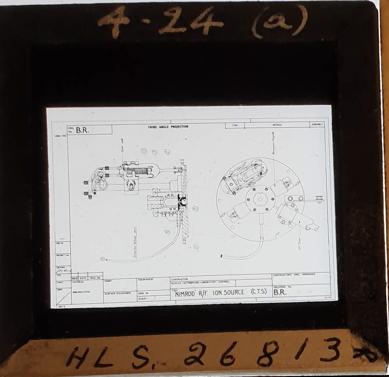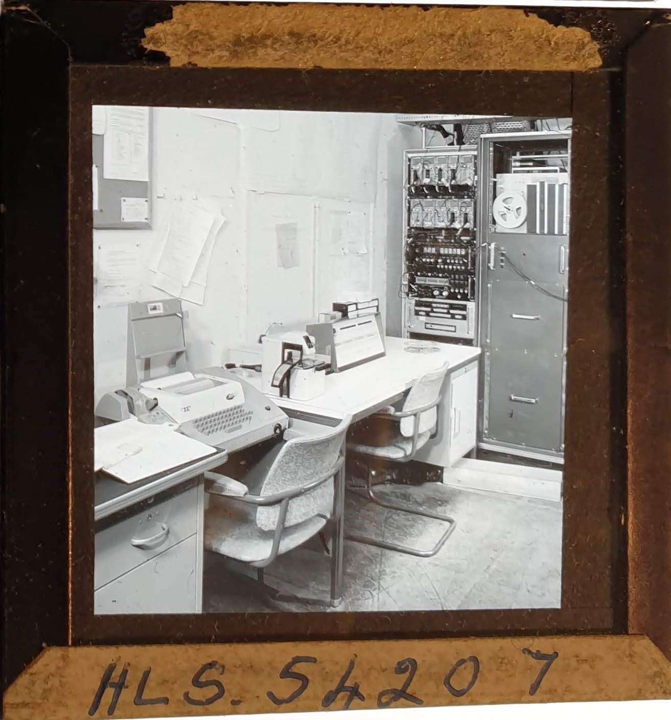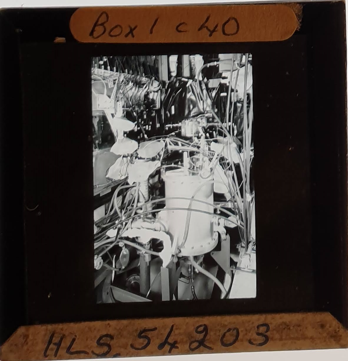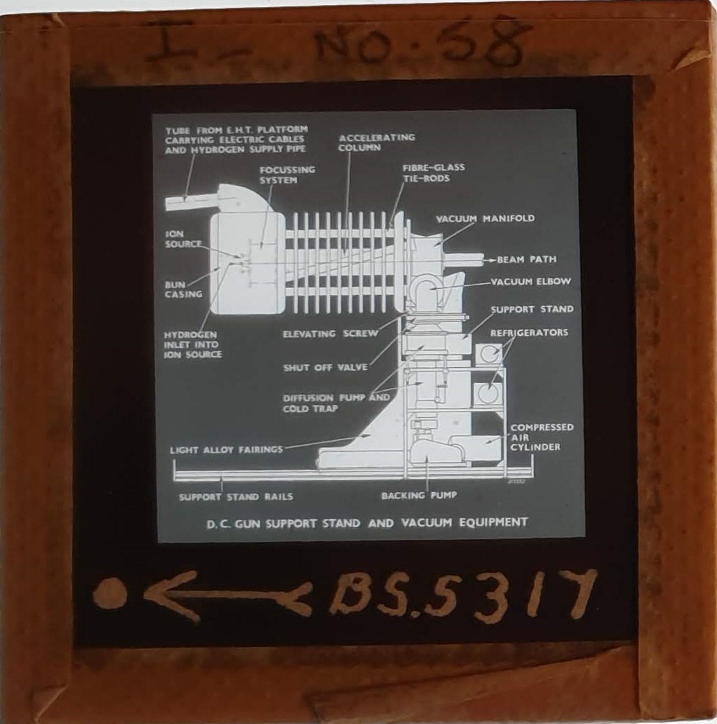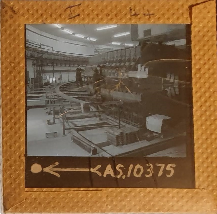 Amongst the artefacts discovered in the archives are a number of wooden boxes of 3¼ inch (8cm) photographic slides, plus wooden boxes and four-drawer metal cabinets of 2 inch (5cm) slides. The larger slides are of the PLA, the smaller slides are of the PLA and Nimrod and have been photographed simply as a record. Initials in the photograph ID are the series ID, though what each series actually is unclear. Most of the slides have been labelled with a negative number, slide sequence number and sometimes a box number but sometimes these labels are obscured, have fallen off altogether or the slide may have been "borrowed" then put back in the wrong place.