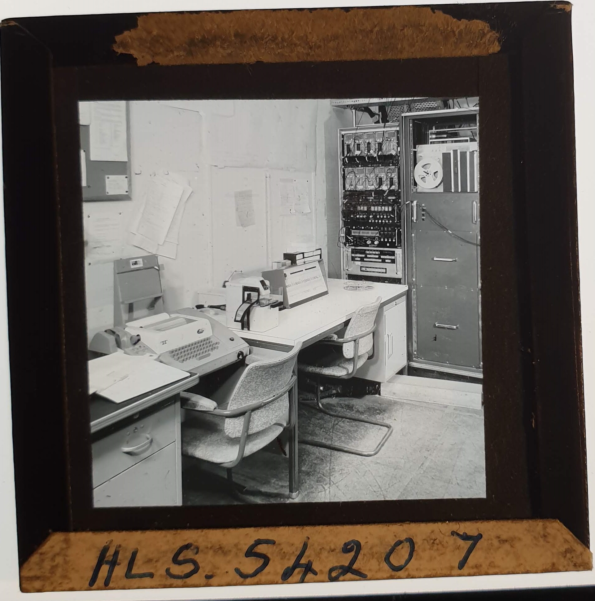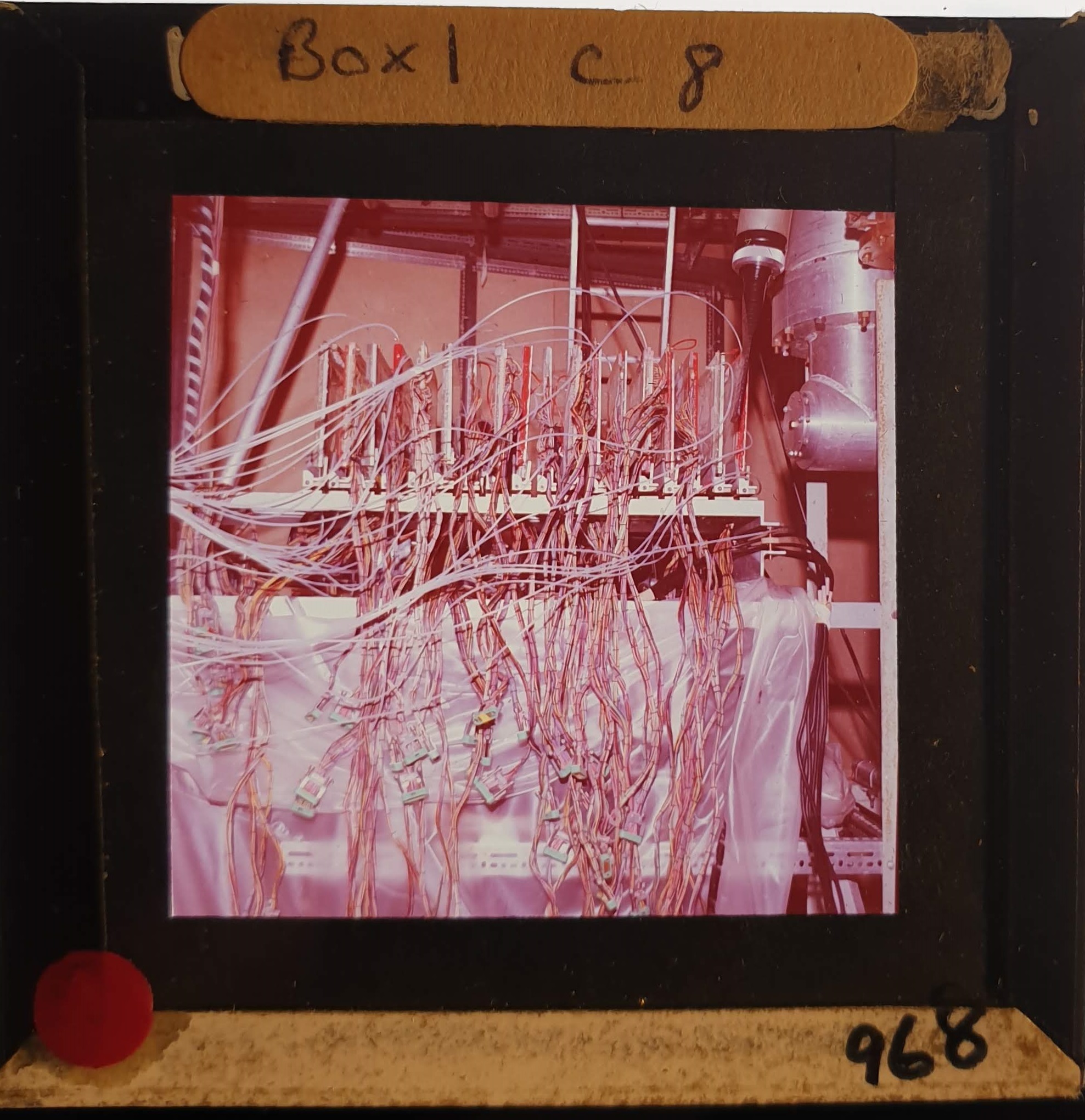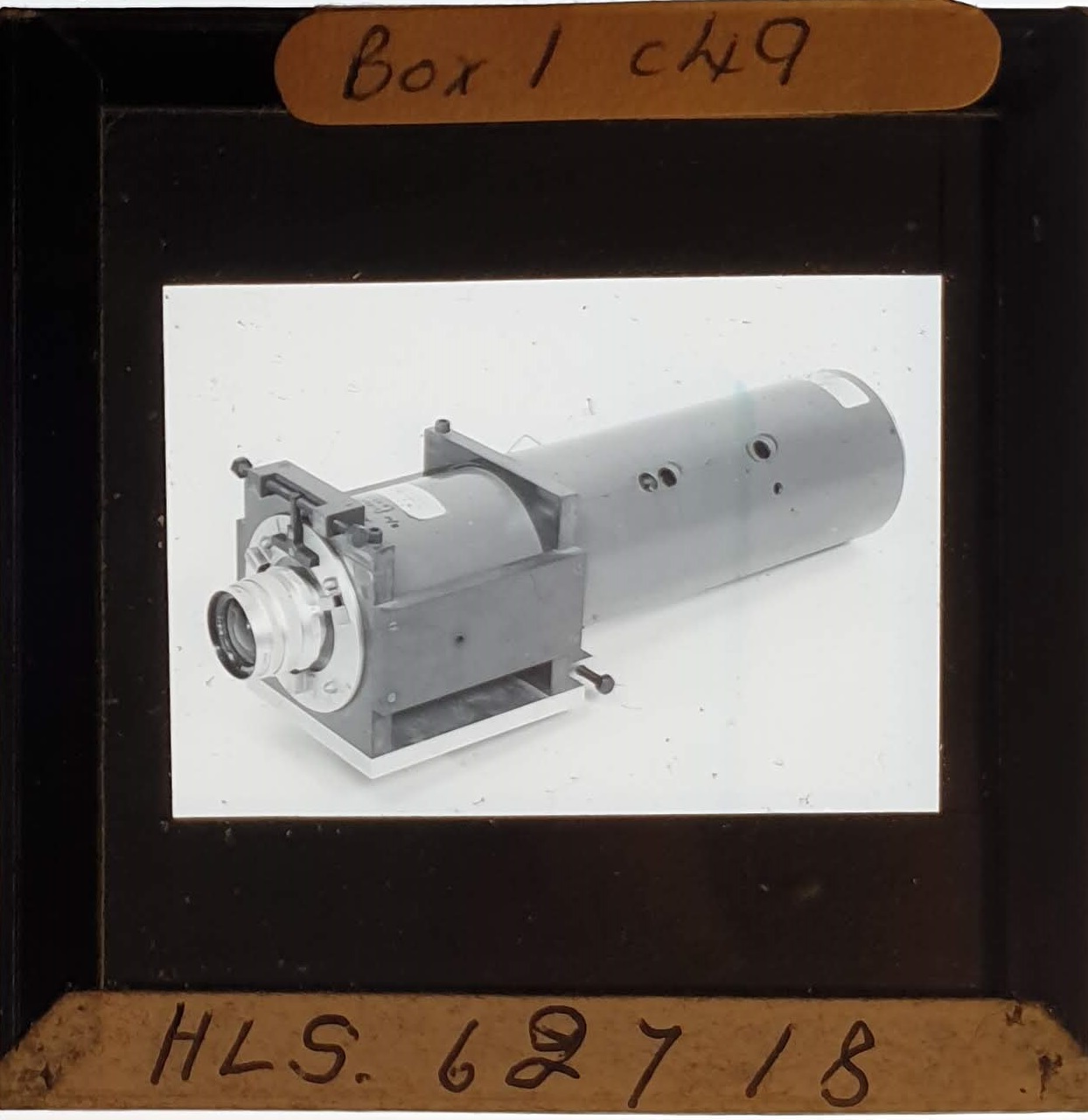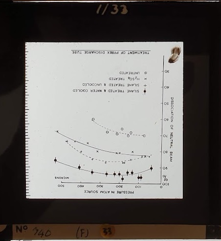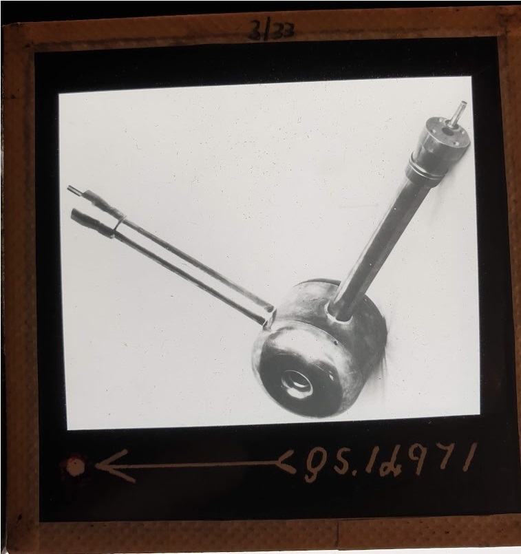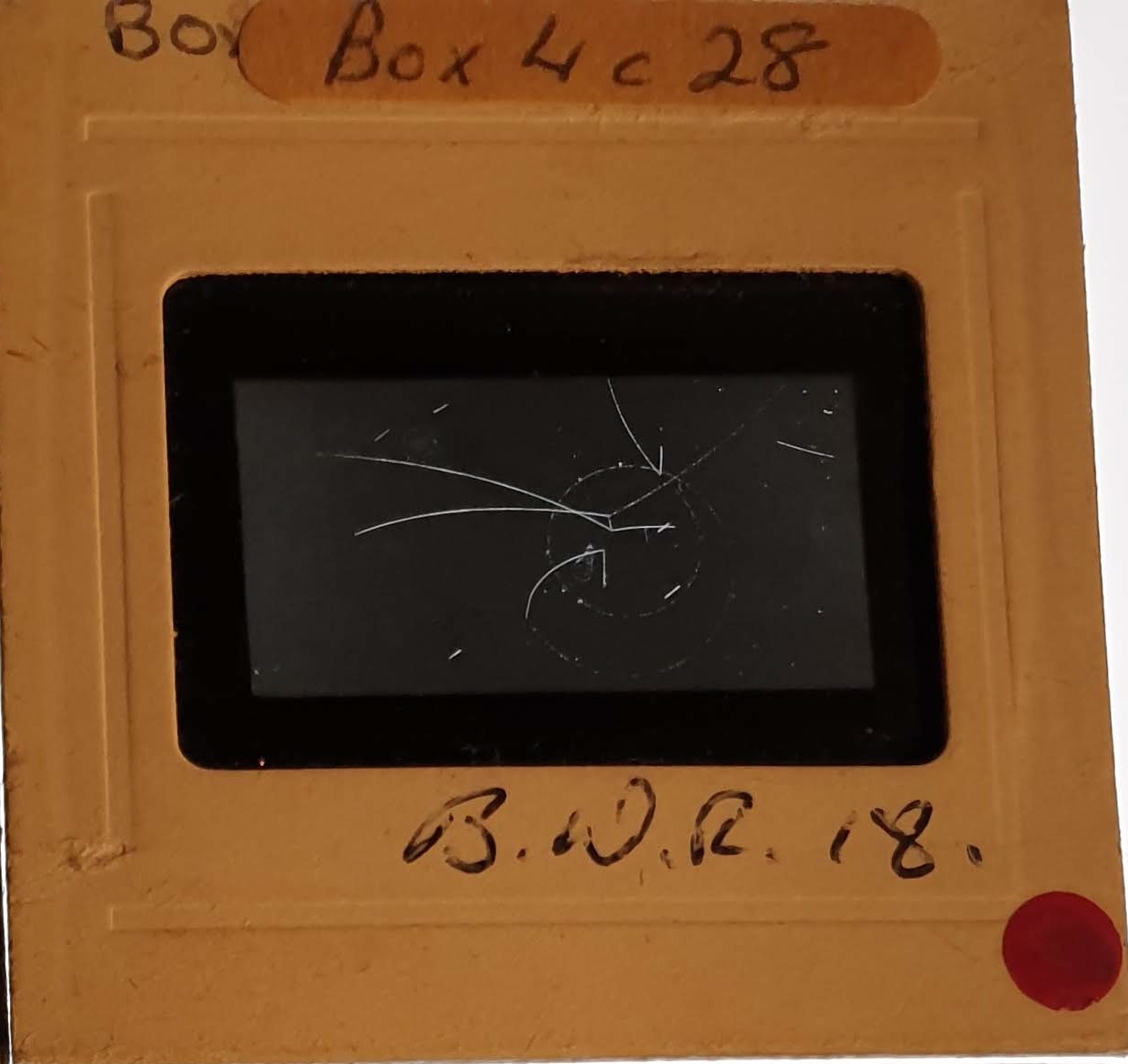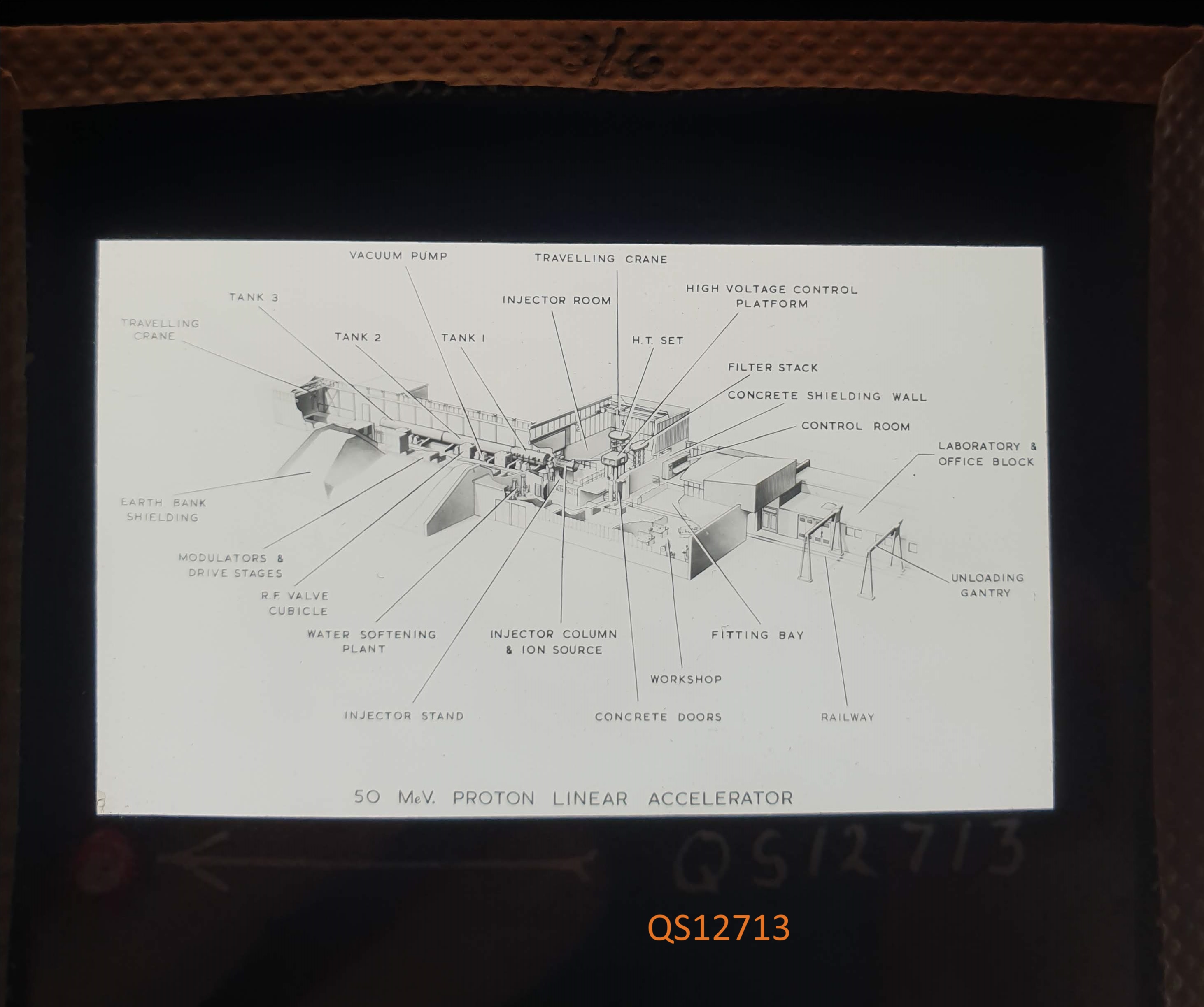Amongst the artefacts discovered in the archives are a number of wooden boxes of 3¼ inch (8cm) photographic slides, plus wooden boxes and four-drawer metal cabinets of 2 inch (5cm) slides. The larger slides are of the PLA, the smaller slides are of the PLA and Nimrod and have been photographed simply as a record. Initials in the photograph ID are the series ID, though what each series actually is unclear. Most of the slides have been labelled with a negative number, slide sequence number and sometimes a box number but sometimes these labels are obscured, have fallen off altogether or the slide may have been "borrowed" then put back in the wrong place.