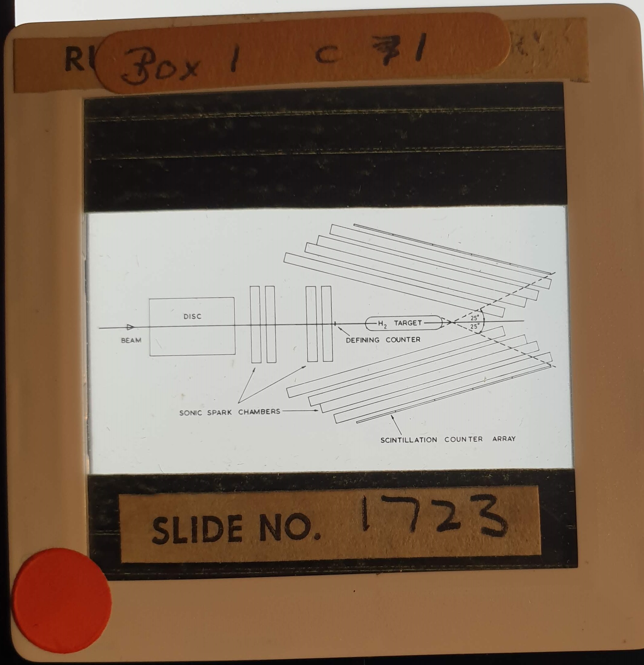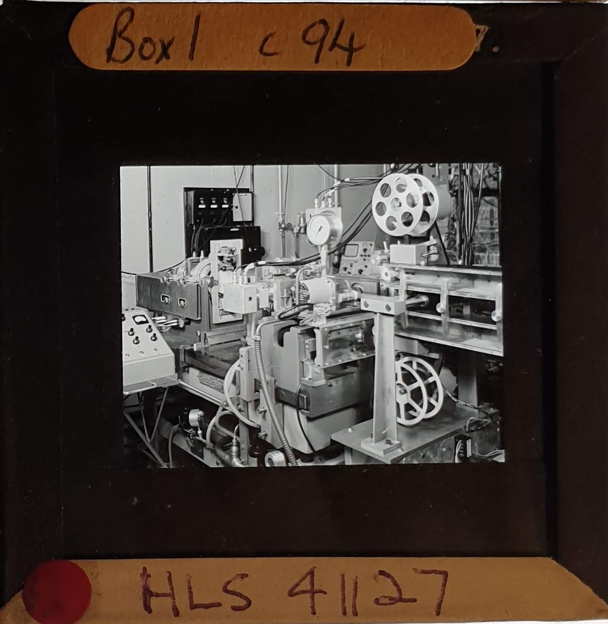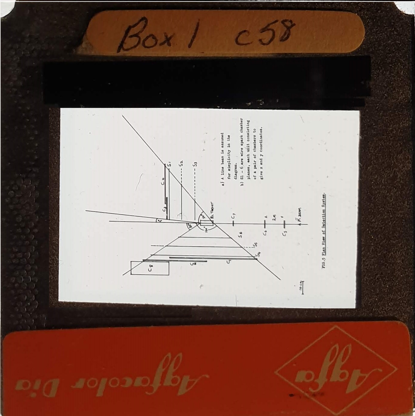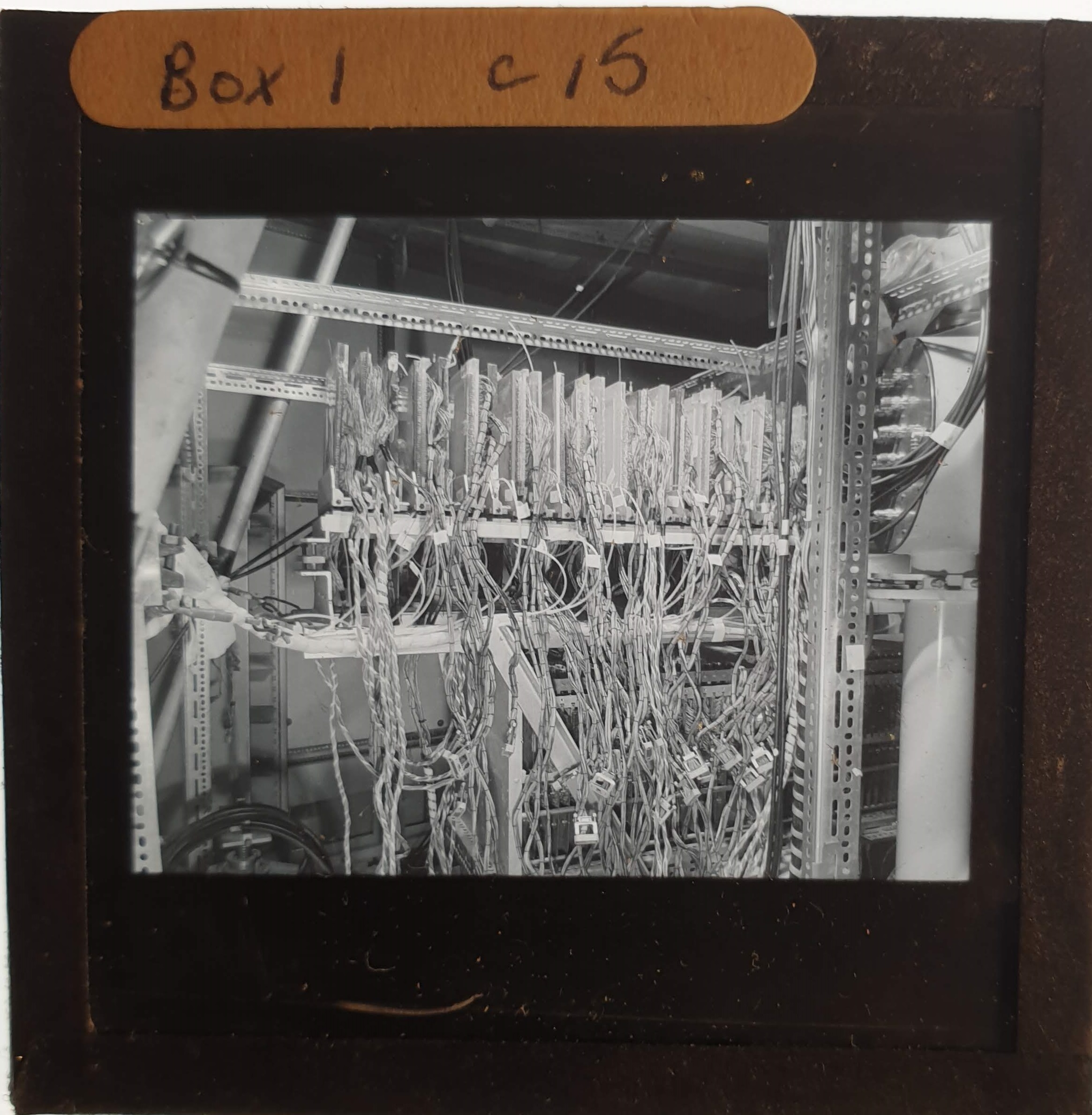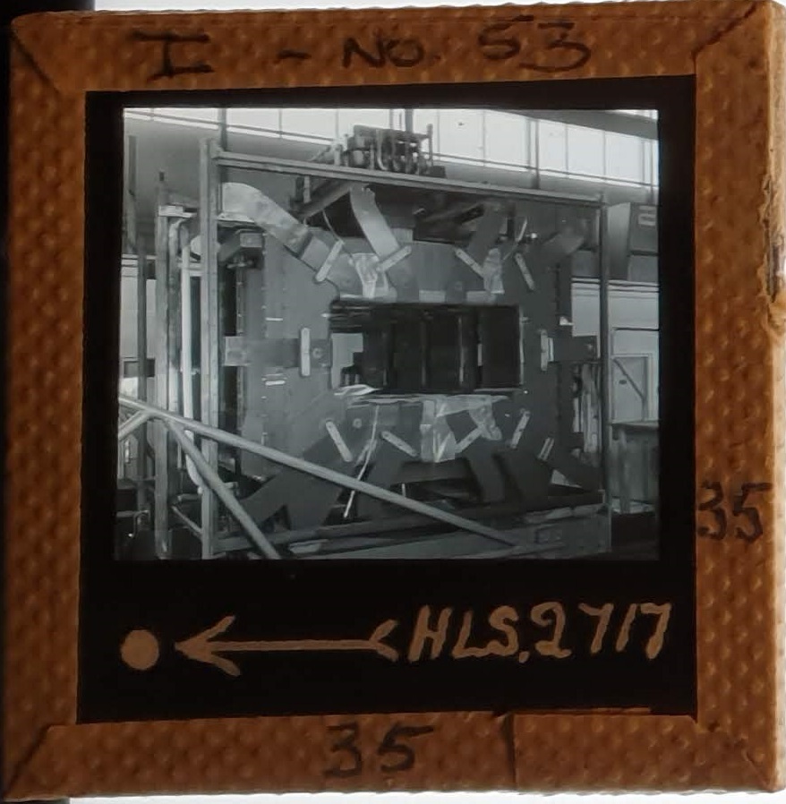 Amongst the artefacts discovered in the archives are a number of wooden boxes of 3¼ inch (8cm) photographic slides, plus wooden boxes and four-drawer metal cabinets of 2 inch (5cm) slides. The larger slides are of the PLA, the smaller slides are of the PLA and Nimrod and have been photographed simply as a record. Initials in the photograph ID are the series ID, though what each series actually is unclear. Most of the slides have been labelled with a negative number, slide sequence number and sometimes a box number but sometimes these labels are obscured, have fallen off altogether or the slide may have been "borrowed" then put back in the wrong place.