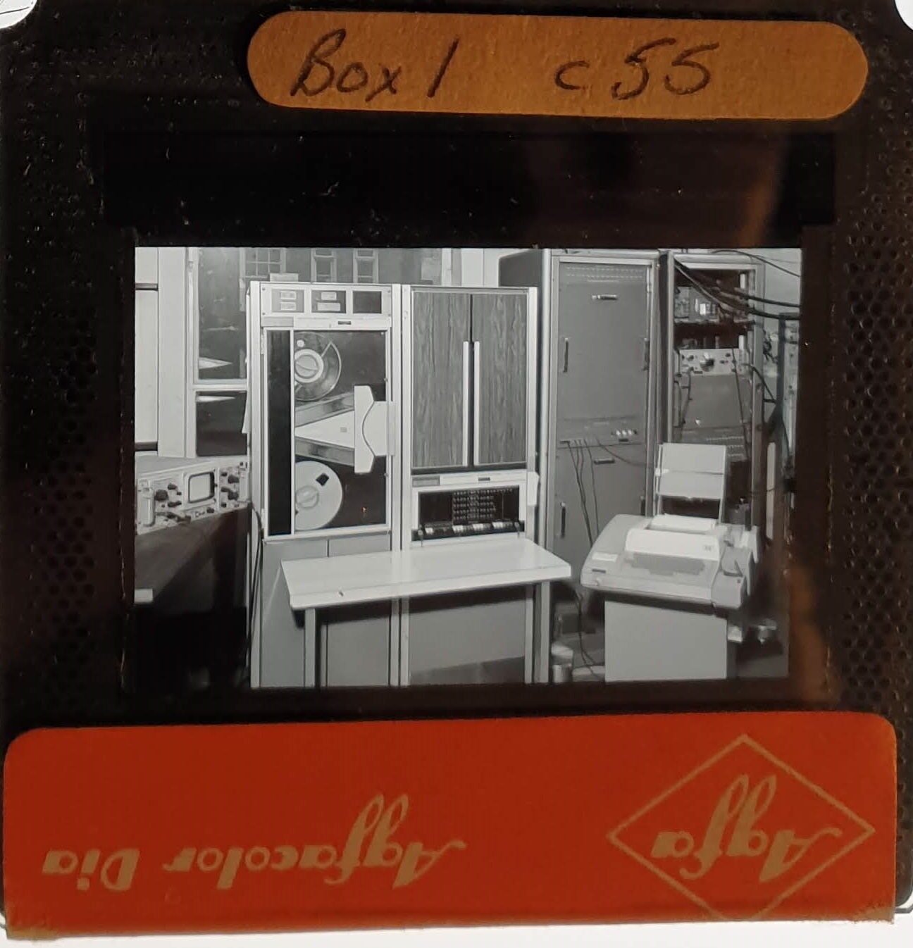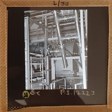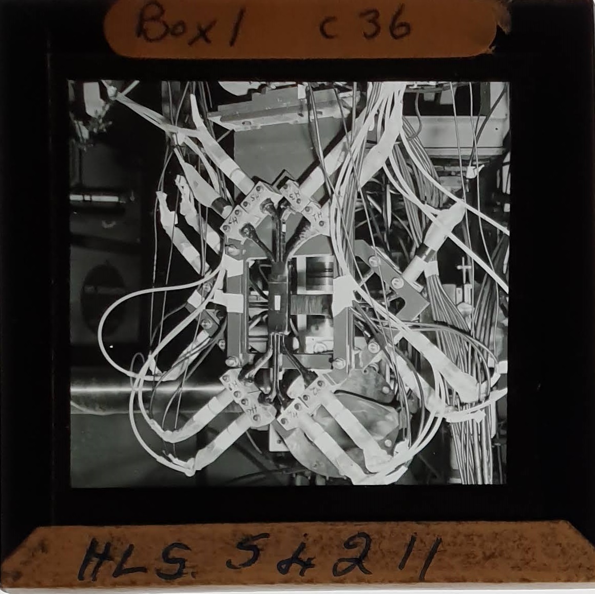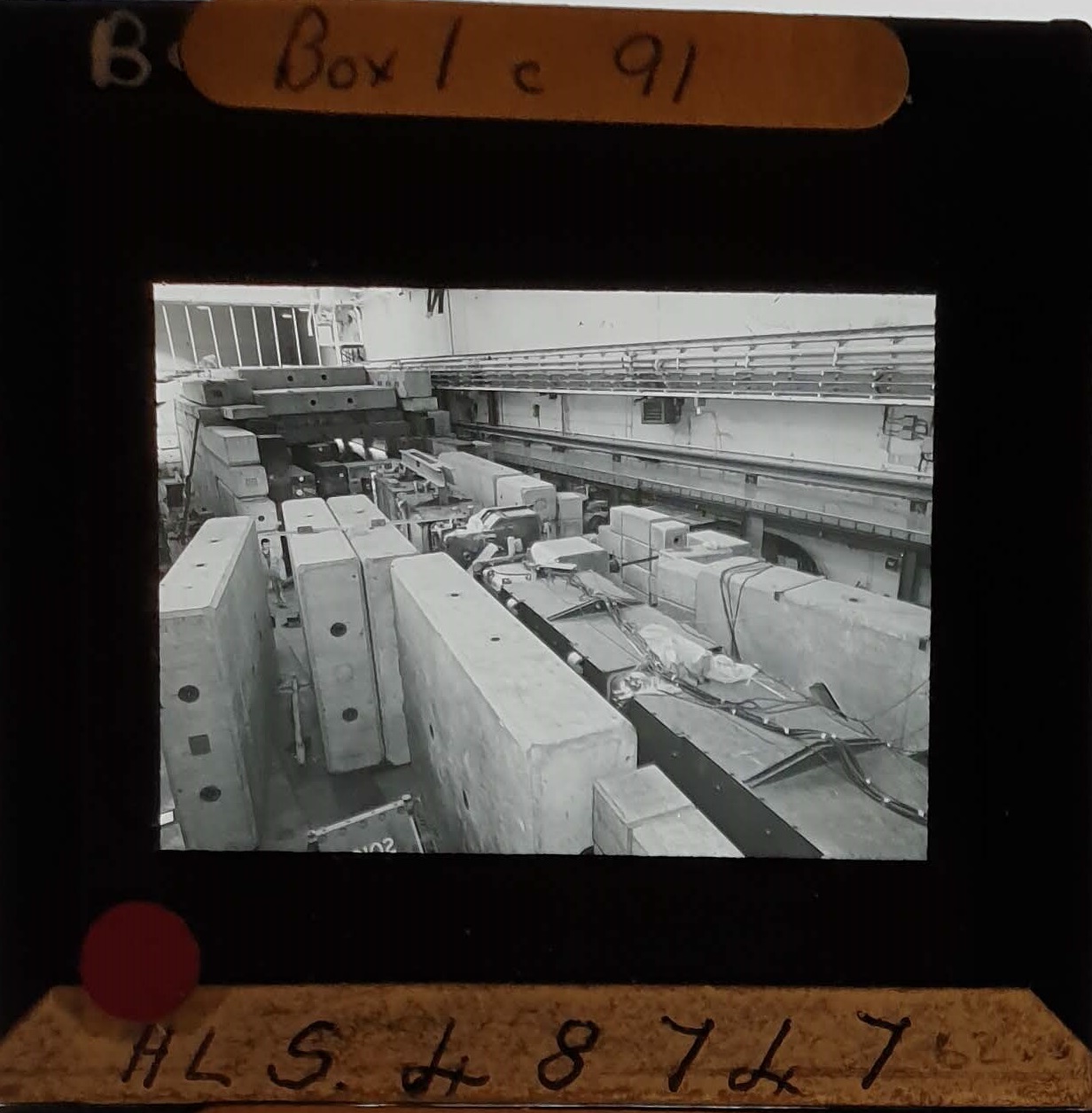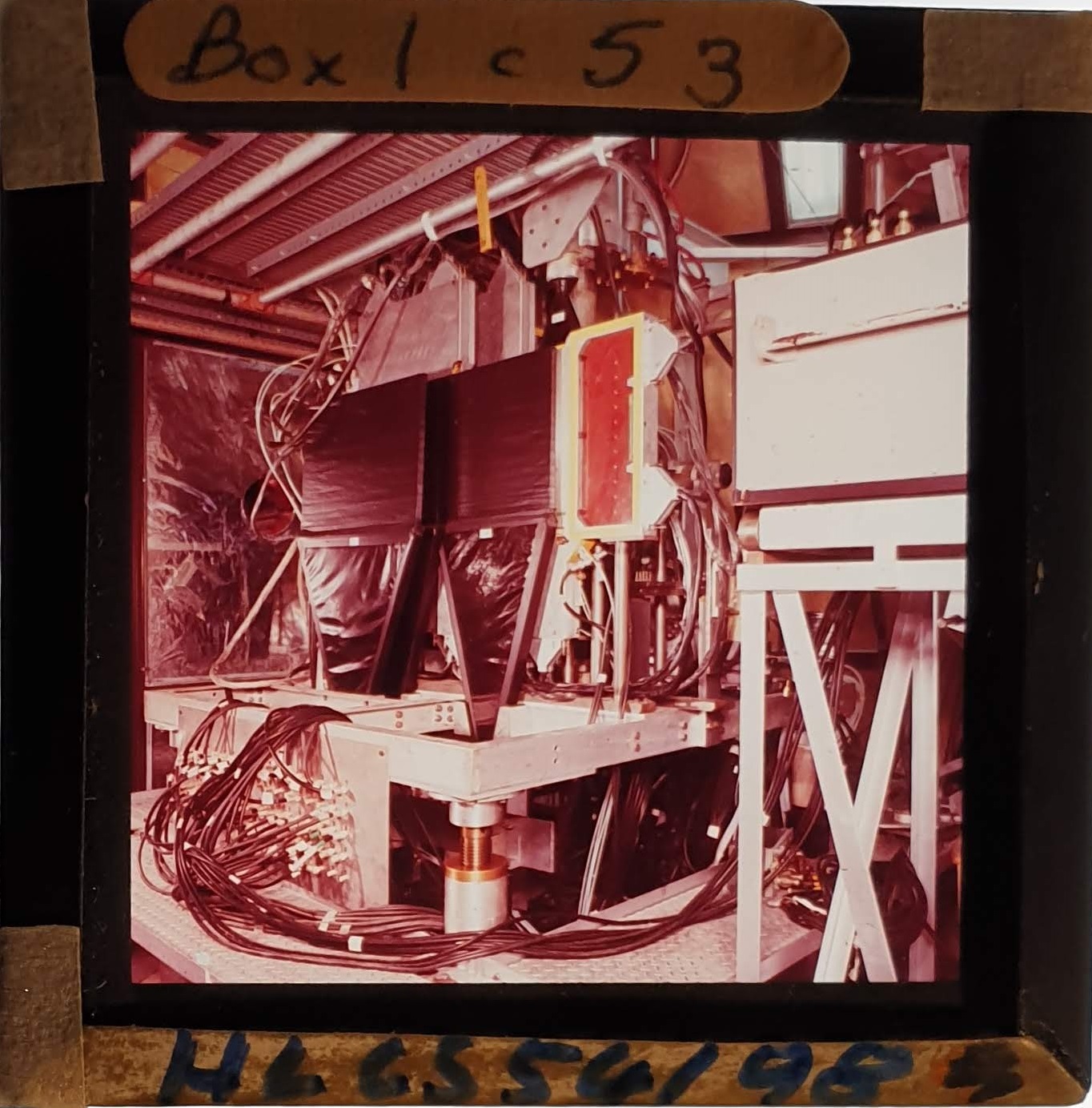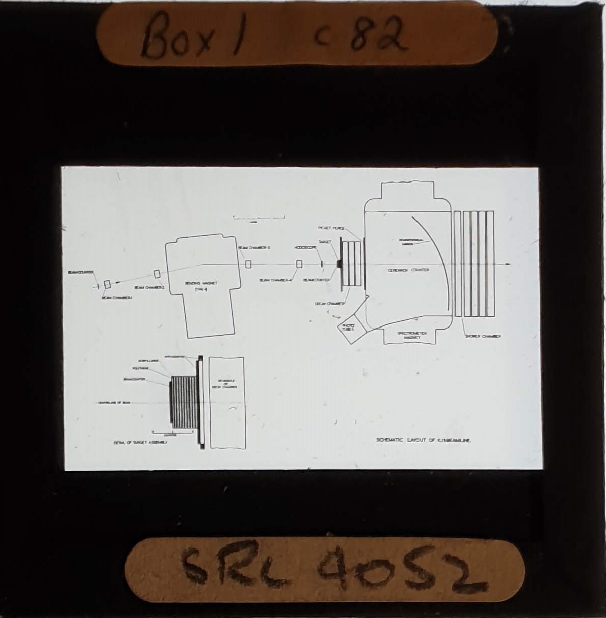 Amongst the artefacts discovered in the archives are a number of wooden boxes of 3¼ inch (8cm) photographic slides, plus wooden boxes and four-drawer metal cabinets of 2 inch (5cm) slides. The larger slides are of the PLA, the smaller slides are of the PLA and Nimrod and have been photographed simply as a record. Initials in the photograph ID are the series ID, though what each series actually is unclear. Most of the slides have been labelled with a negative number, slide sequence number and sometimes a box number but sometimes these labels are obscured, have fallen off altogether or the slide may have been "borrowed" then put back in the wrong place.