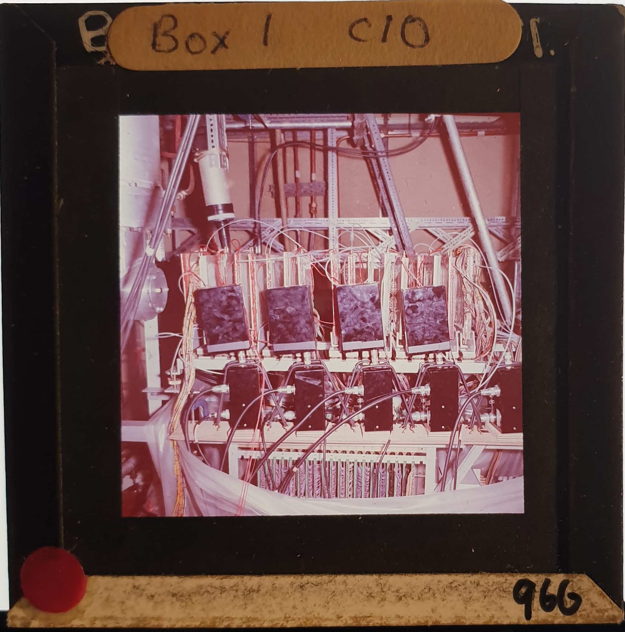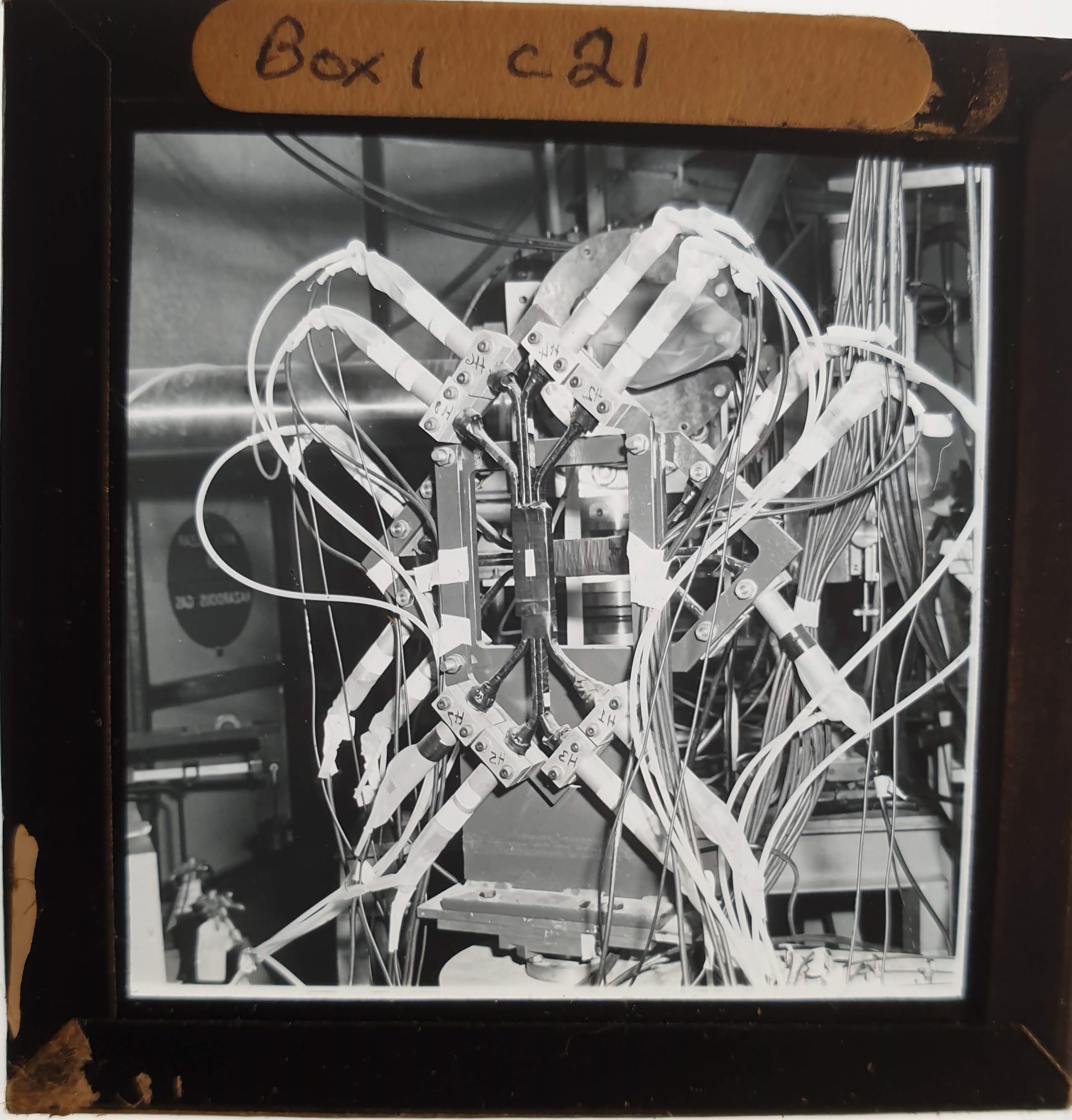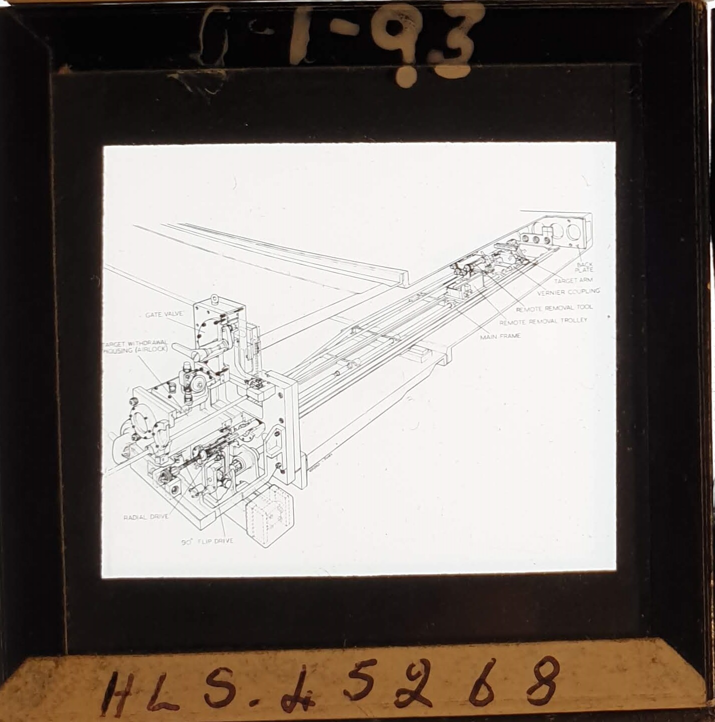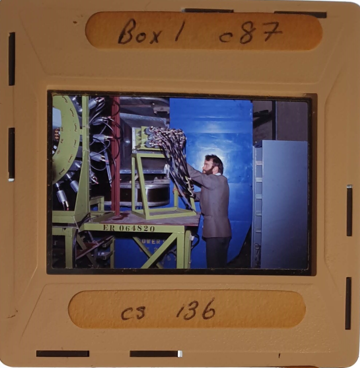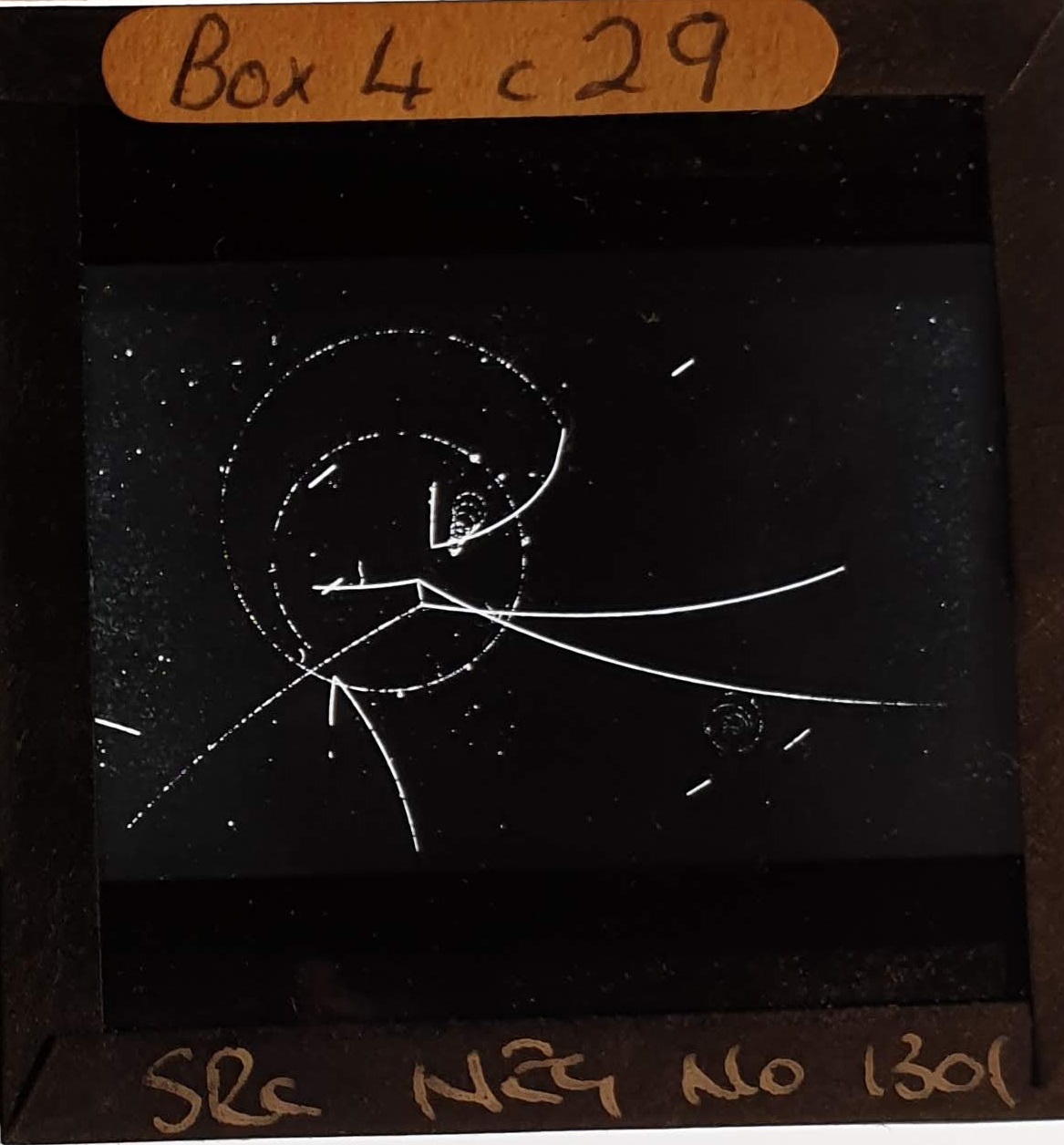Amongst the artefacts discovered in the archives are a number of wooden boxes of 3¼ inch (8cm) photographic slides, plus wooden boxes and four-drawer metal cabinets of 2 inch (5cm) slides. The larger slides are of the PLA, the smaller slides are of the PLA and Nimrod and have been photographed simply as a record. Initials in the photograph ID are the series ID, though what each series actually is unclear. Most of the slides have been labelled with a negative number, slide sequence number and sometimes a box number but sometimes these labels are obscured, have fallen off altogether or the slide may have been "borrowed" then put back in the wrong place.