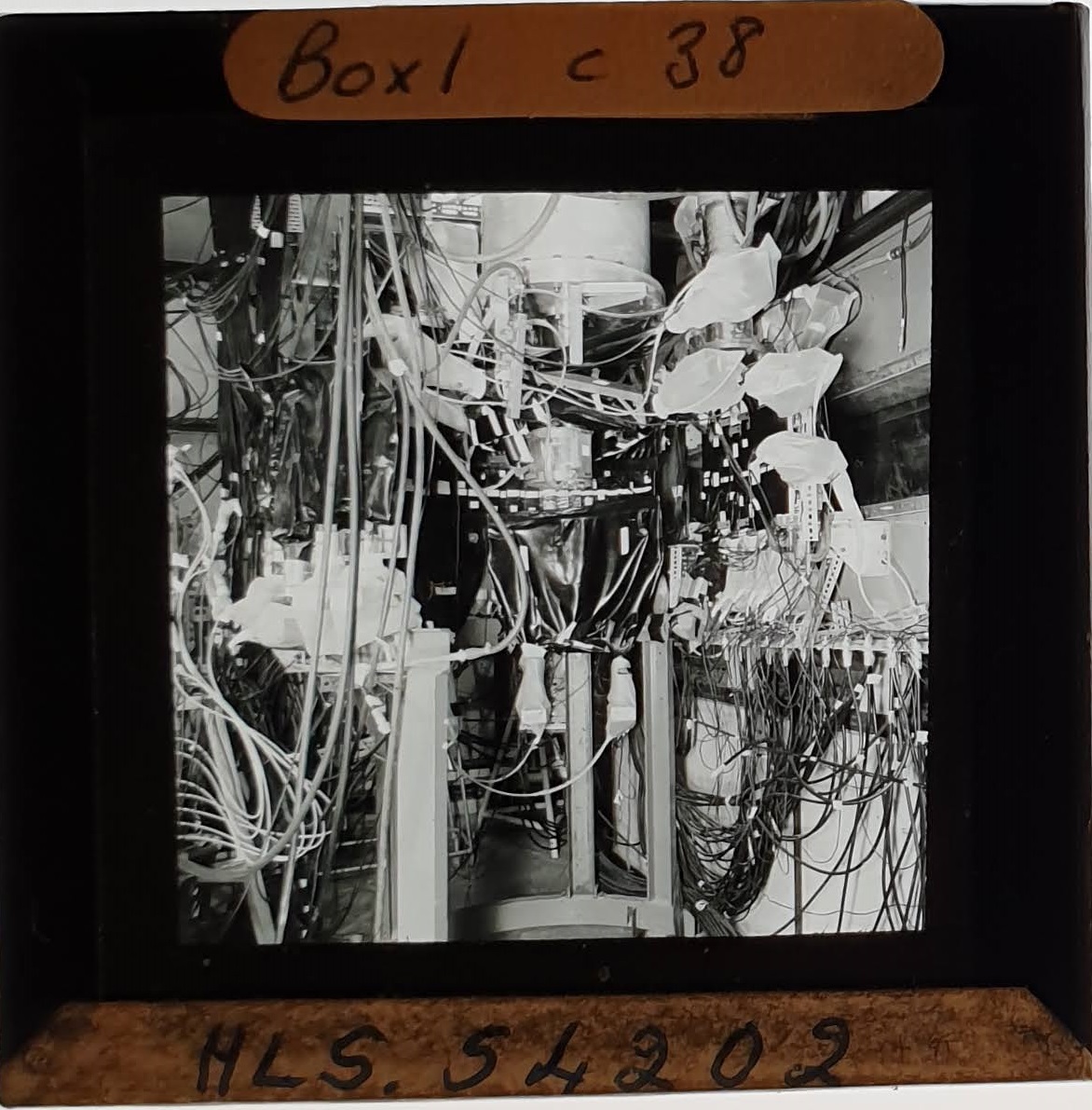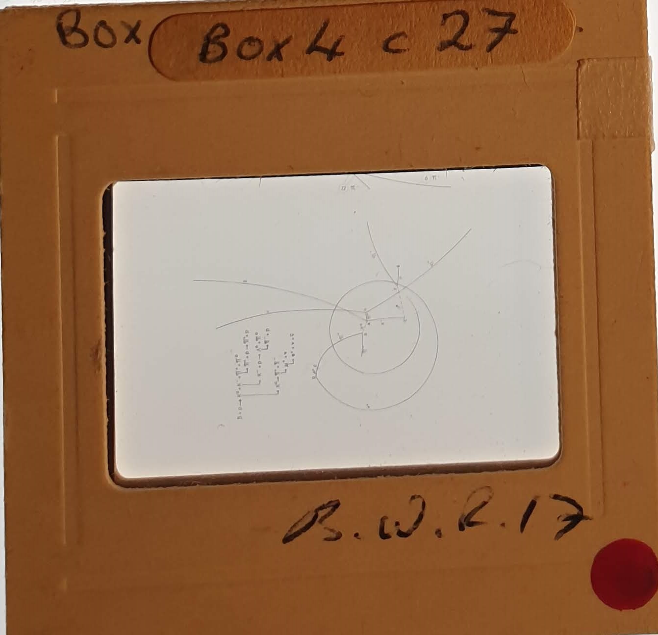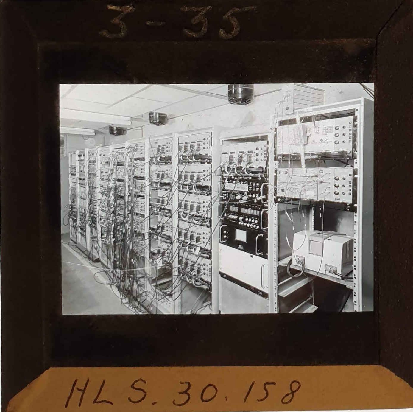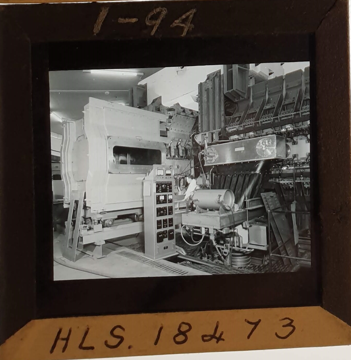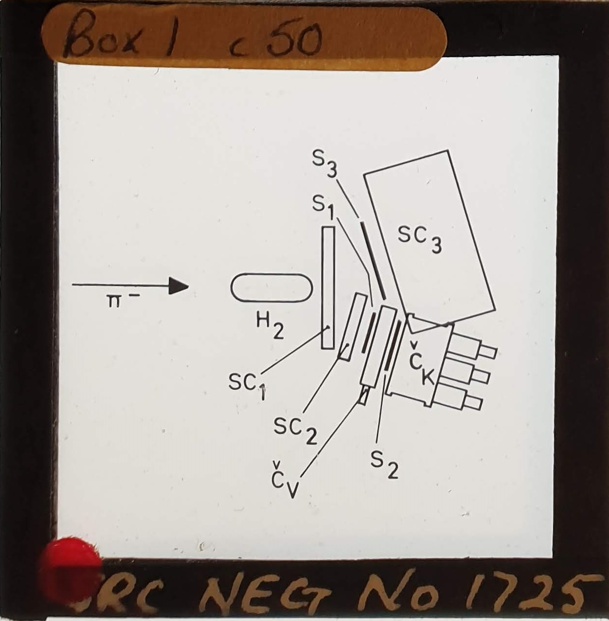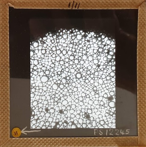 Amongst the artefacts discovered in the archives are a number of wooden boxes of 3¼ inch (8cm) photographic slides, plus wooden boxes and four-drawer metal cabinets of 2 inch (5cm) slides. The larger slides are of the PLA, the smaller slides are of the PLA and Nimrod and have been photographed simply as a record. Initials in the photograph ID are the series ID, though what each series actually is unclear. Most of the slides have been labelled with a negative number, slide sequence number and sometimes a box number but sometimes these labels are obscured, have fallen off altogether or the slide may have been "borrowed" then put back in the wrong place.