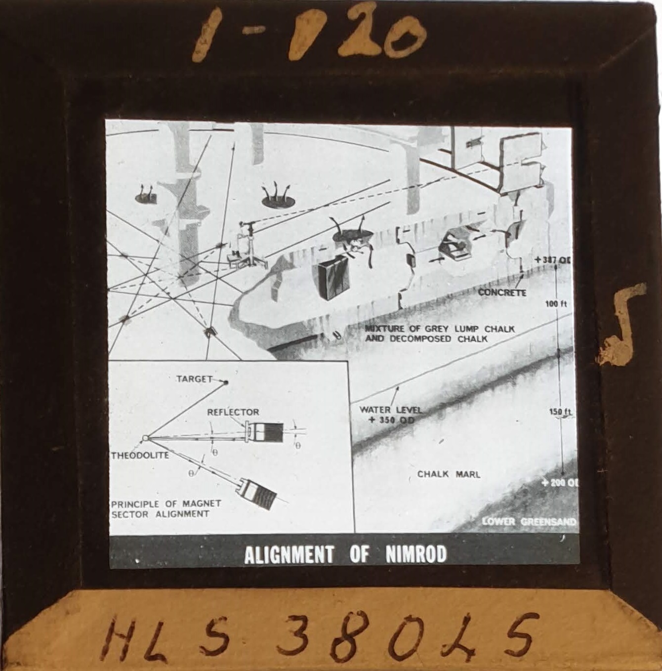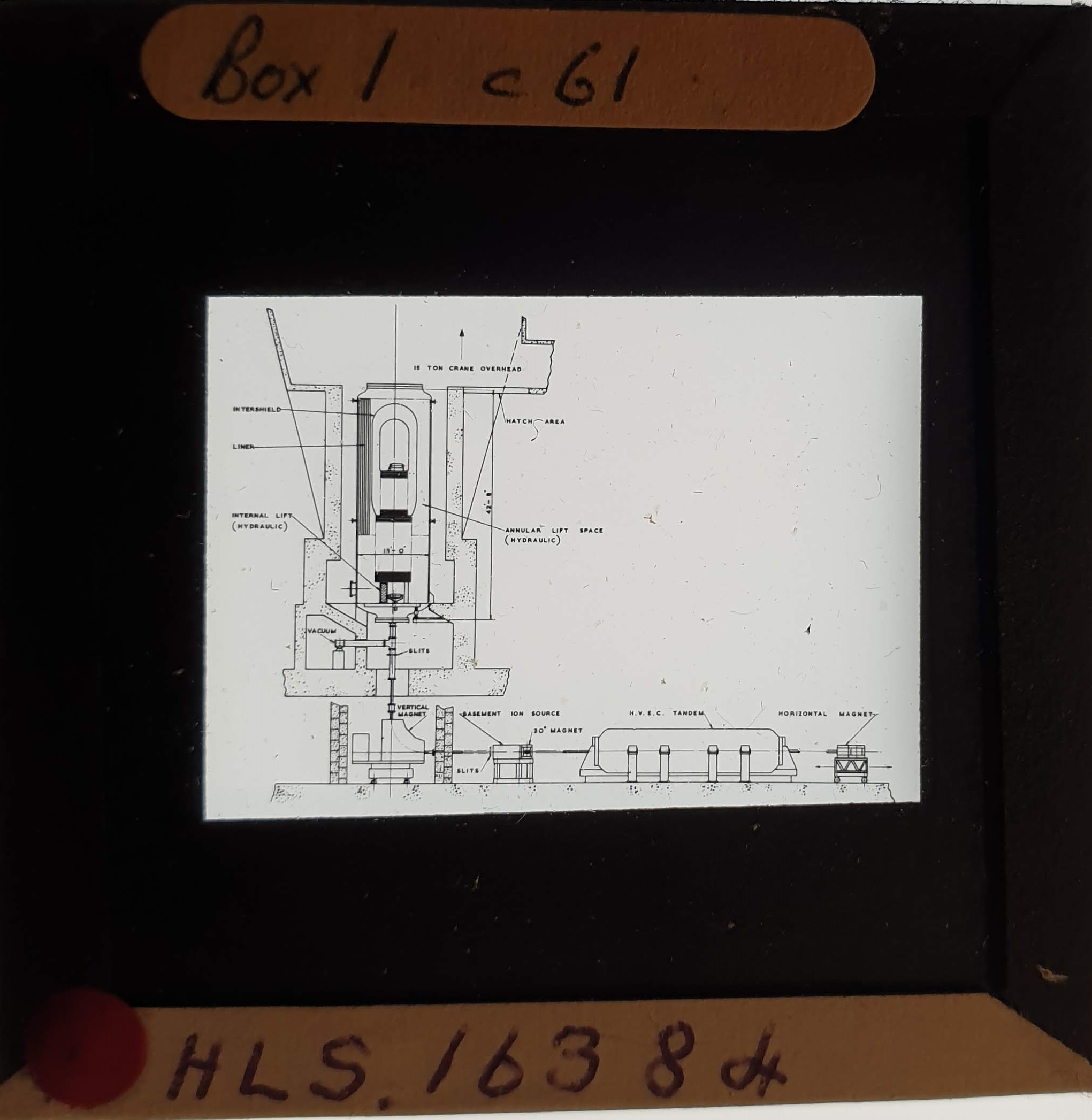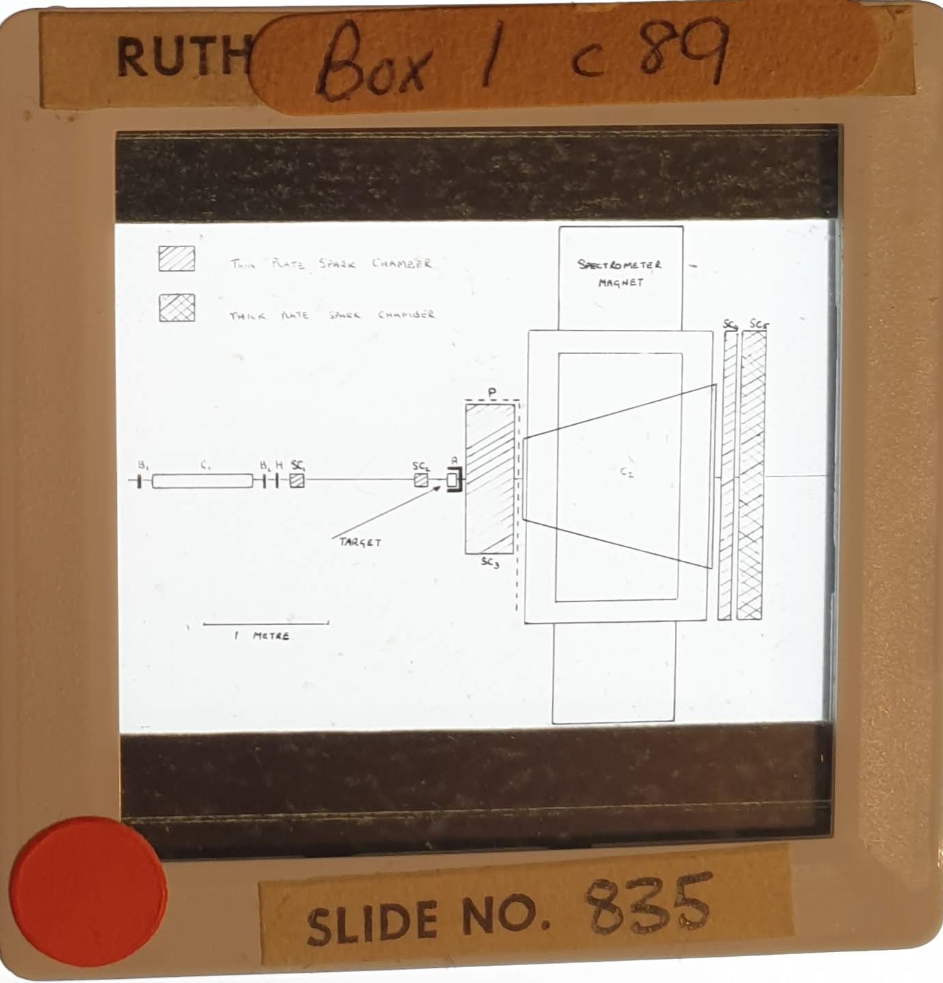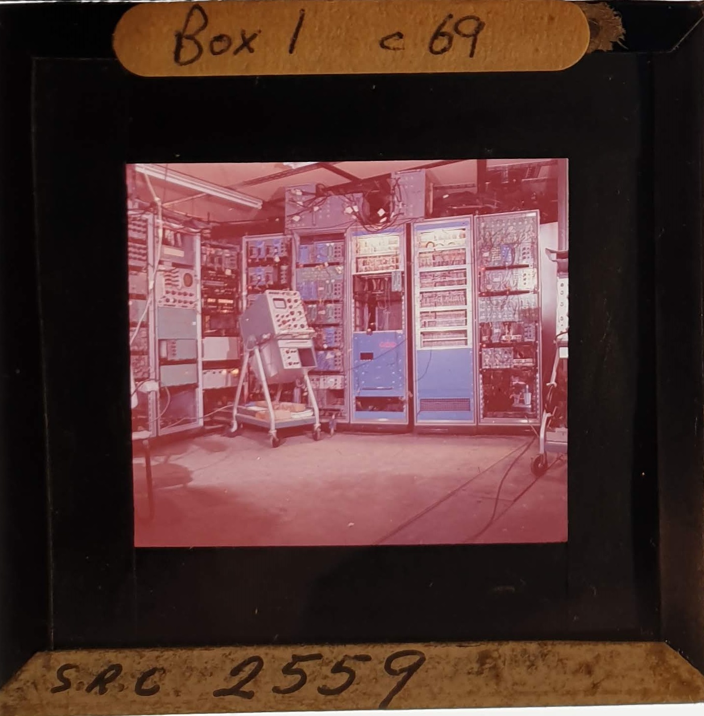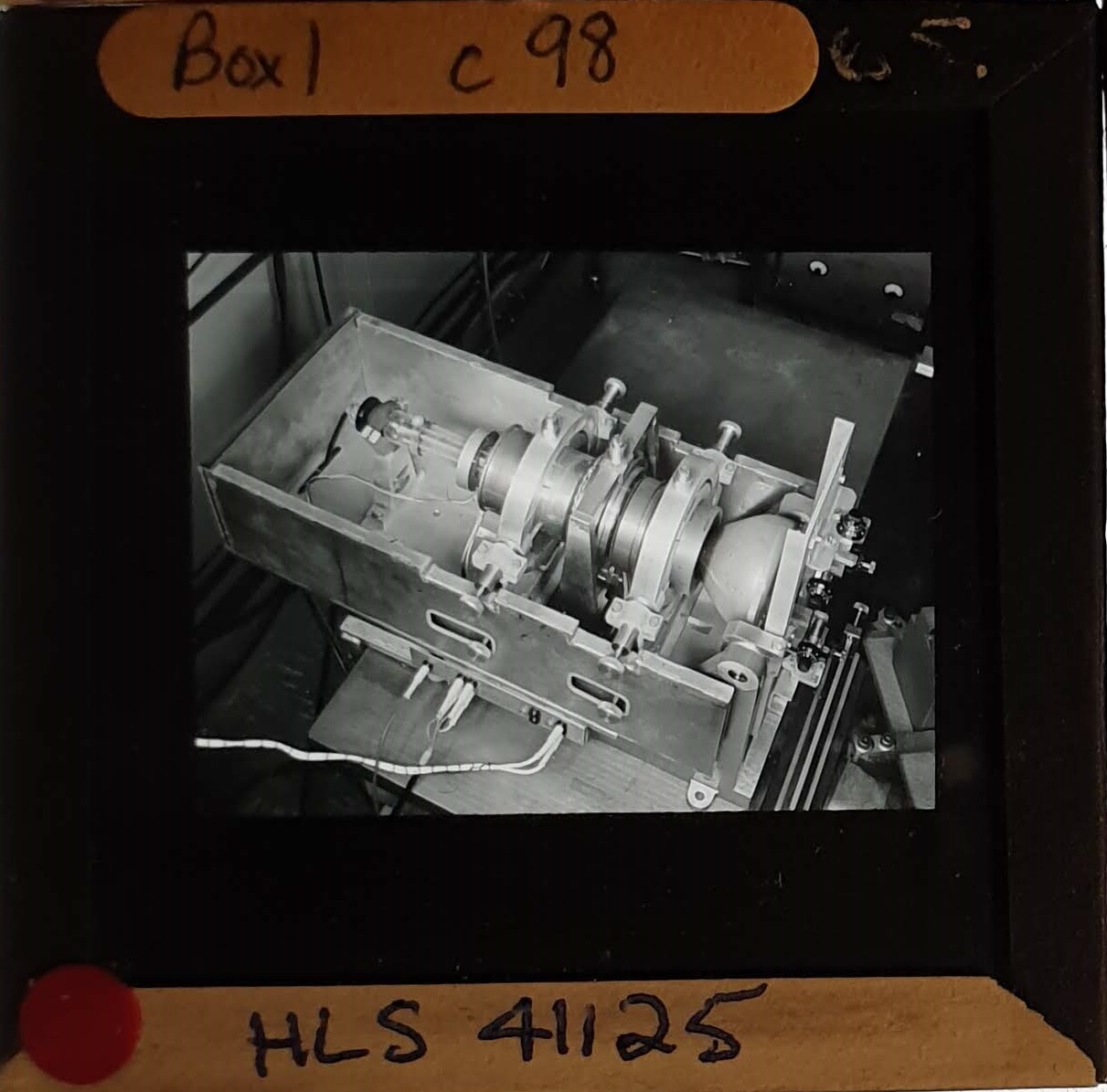 Amongst the artefacts discovered in the archives are a number of wooden boxes of 3¼ inch (8cm) photographic slides, plus wooden boxes and four-drawer metal cabinets of 2 inch (5cm) slides. The larger slides are of the PLA, the smaller slides are of the PLA and Nimrod and have been photographed simply as a record. Initials in the photograph ID are the series ID, though what each series actually is unclear. Most of the slides have been labelled with a negative number, slide sequence number and sometimes a box number but sometimes these labels are obscured, have fallen off altogether or the slide may have been "borrowed" then put back in the wrong place.