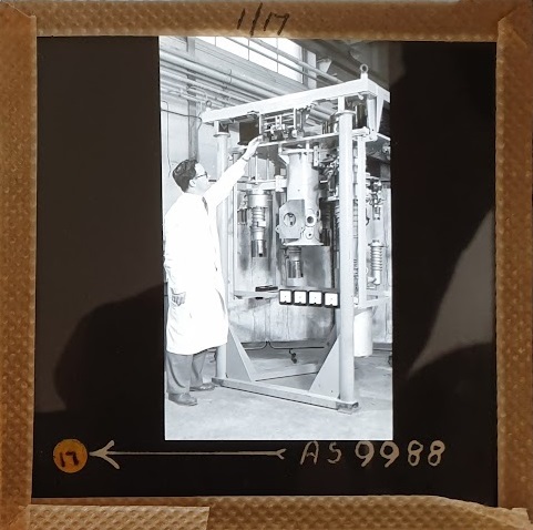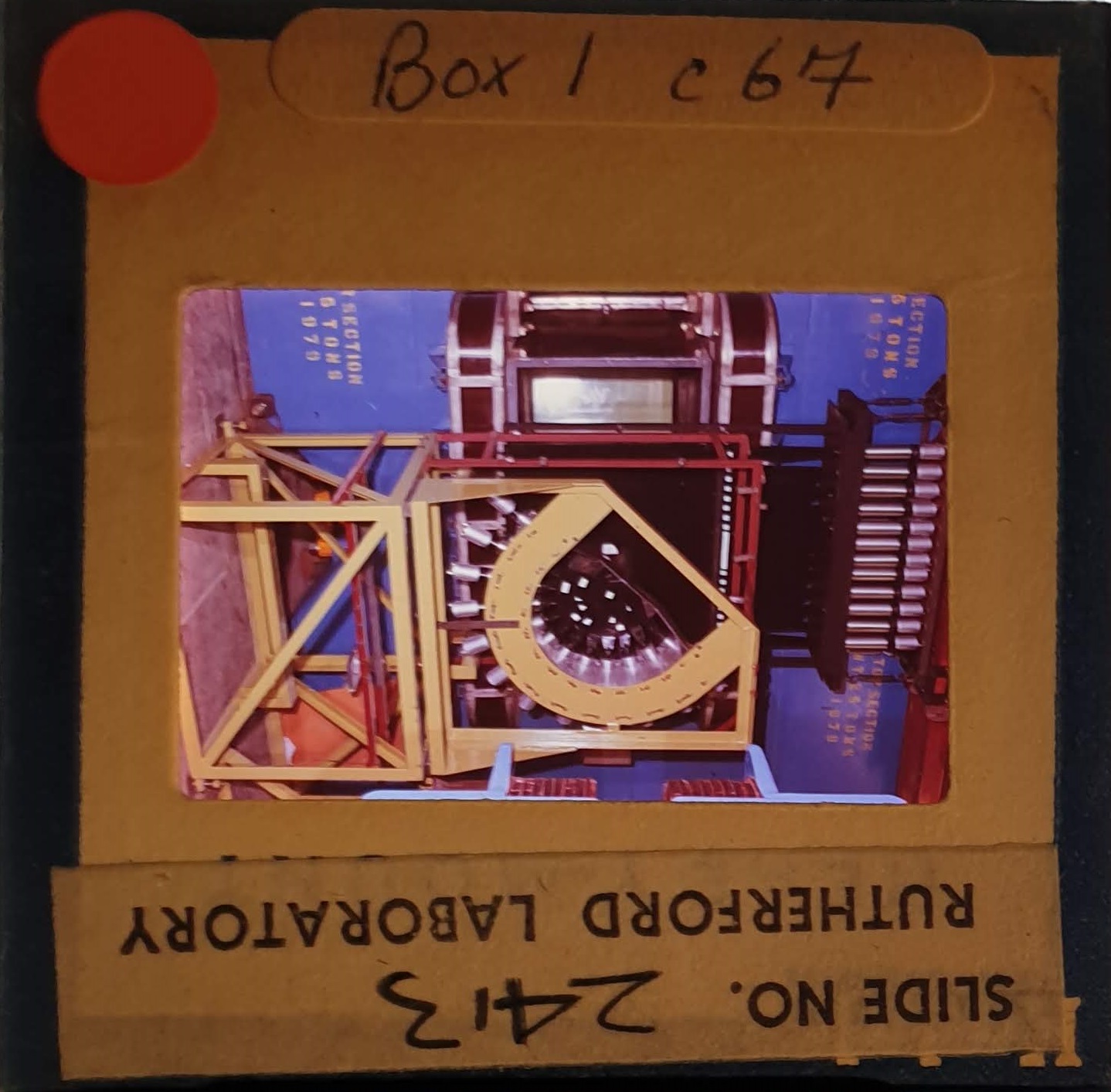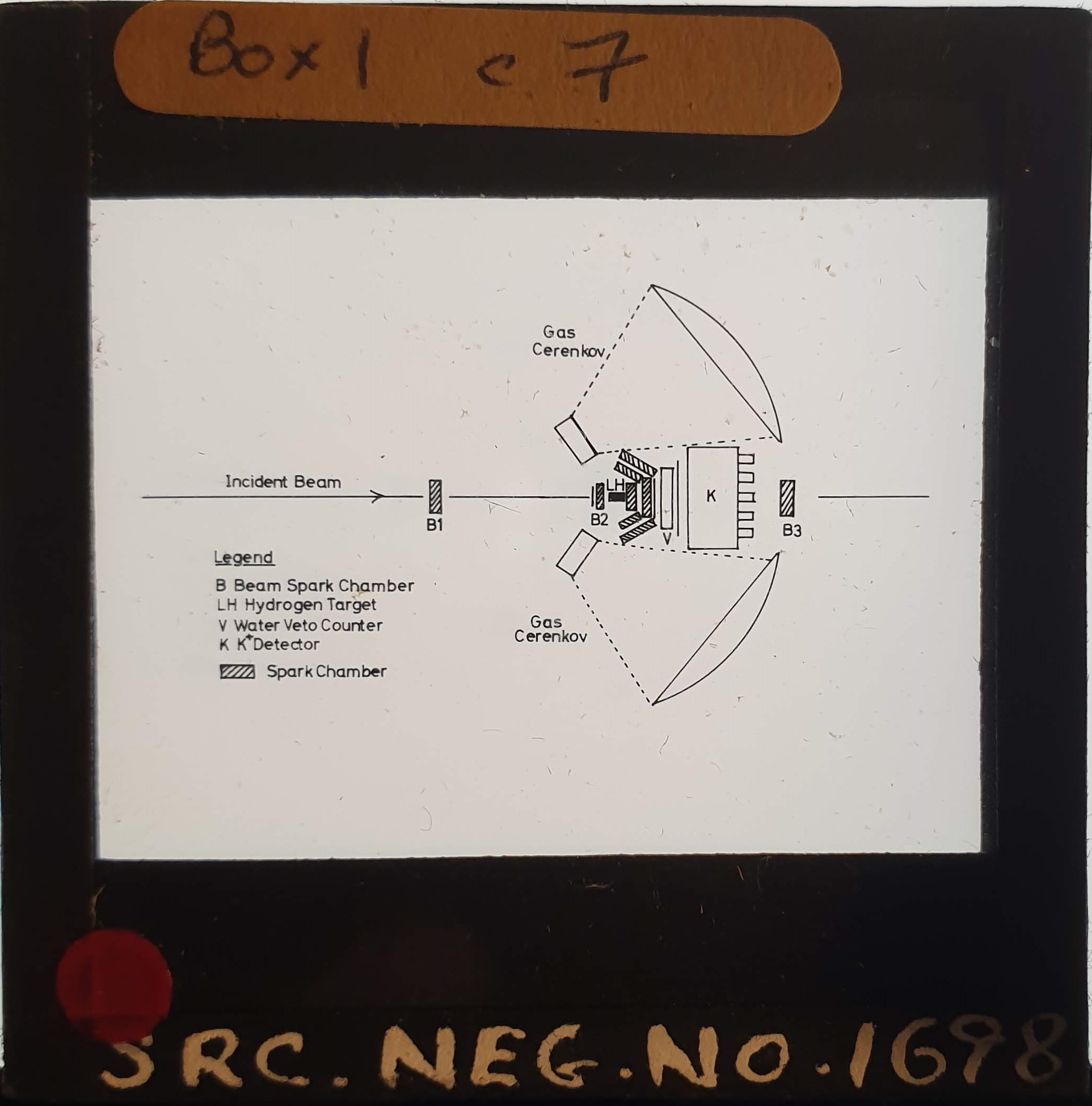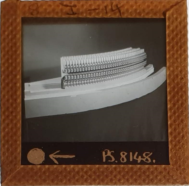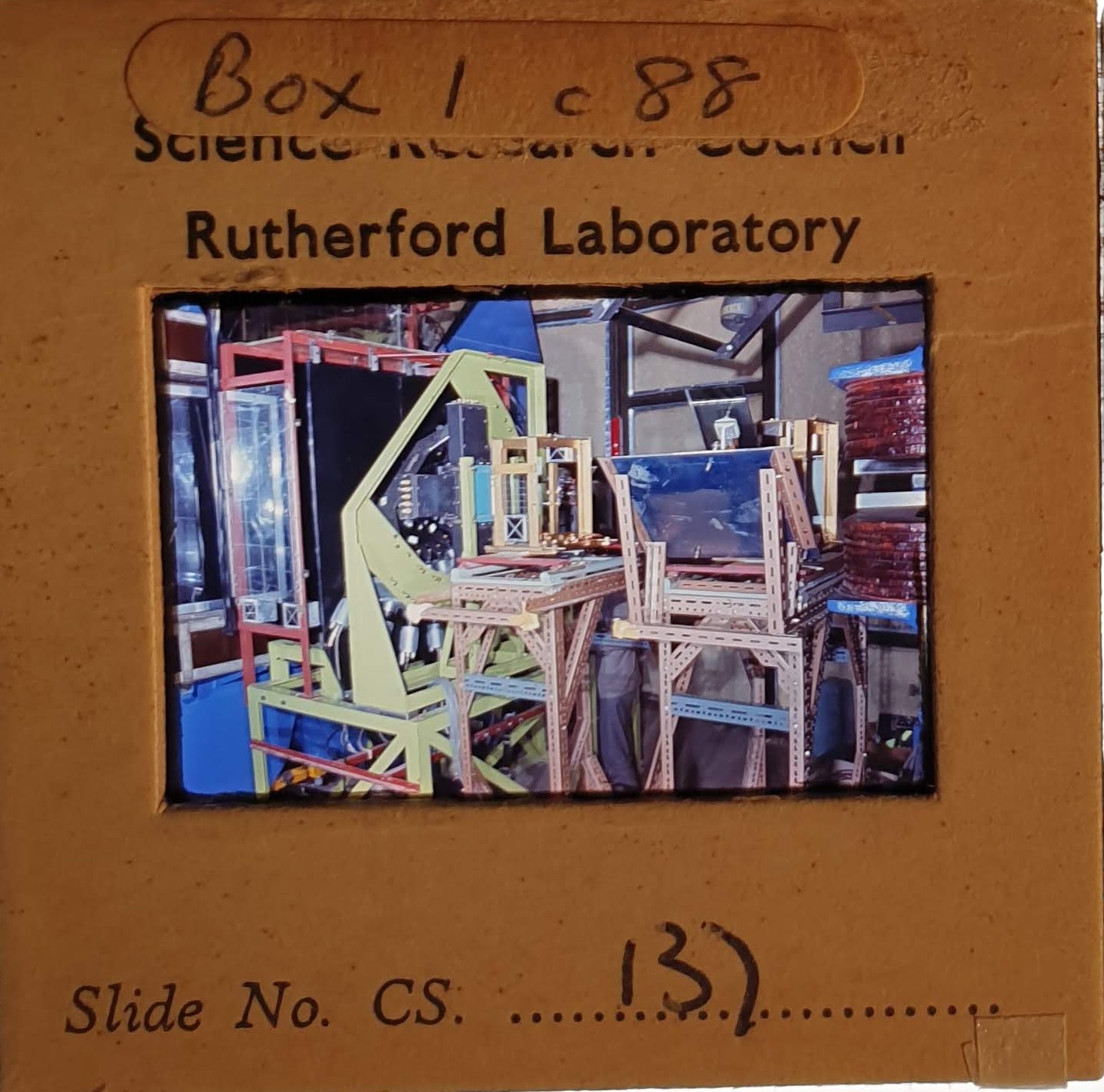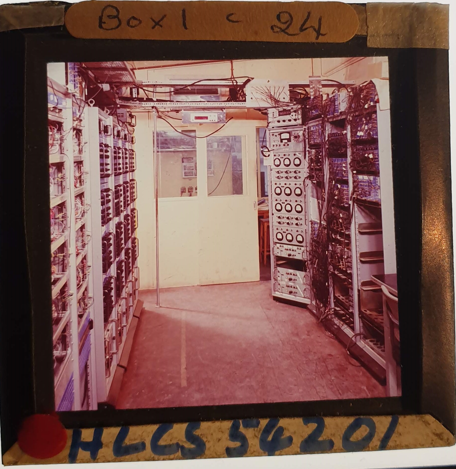 Amongst the artefacts discovered in the archives are a number of wooden boxes of 3¼ inch (8cm) photographic slides, plus wooden boxes and four-drawer metal cabinets of 2 inch (5cm) slides. The larger slides are of the PLA, the smaller slides are of the PLA and Nimrod and have been photographed simply as a record. Initials in the photograph ID are the series ID, though what each series actually is unclear. Most of the slides have been labelled with a negative number, slide sequence number and sometimes a box number but sometimes these labels are obscured, have fallen off altogether or the slide may have been "borrowed" then put back in the wrong place.