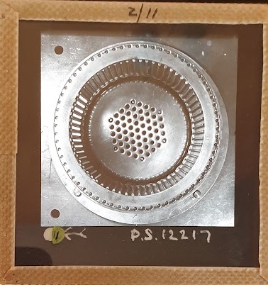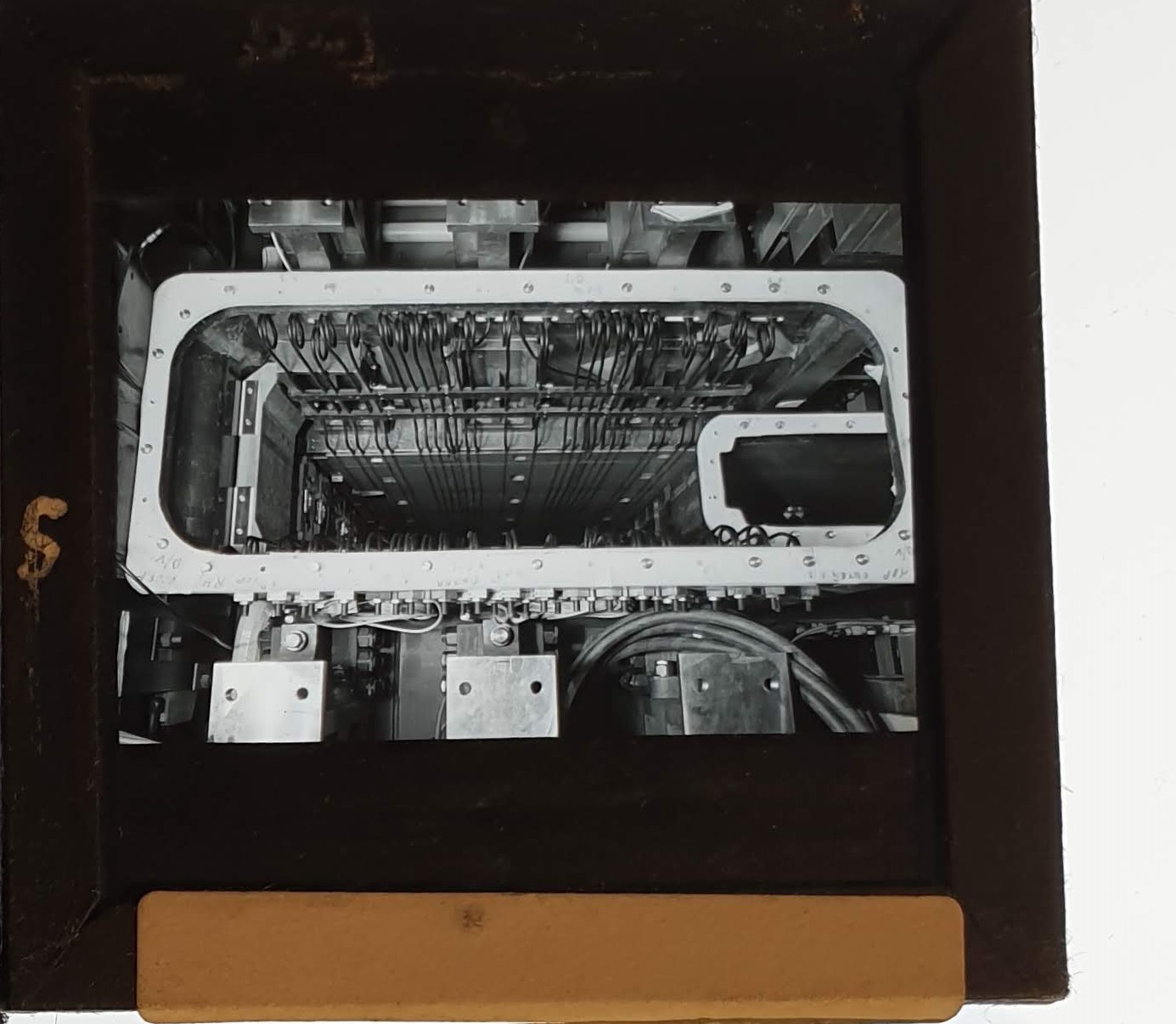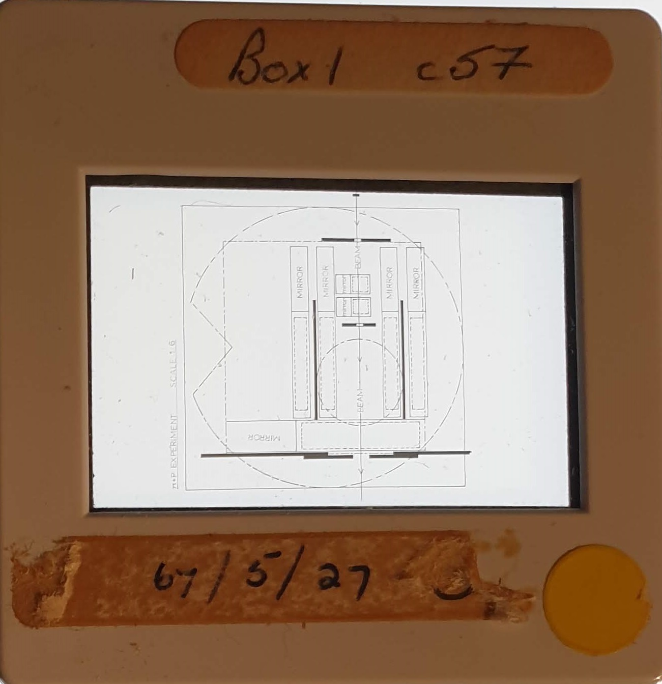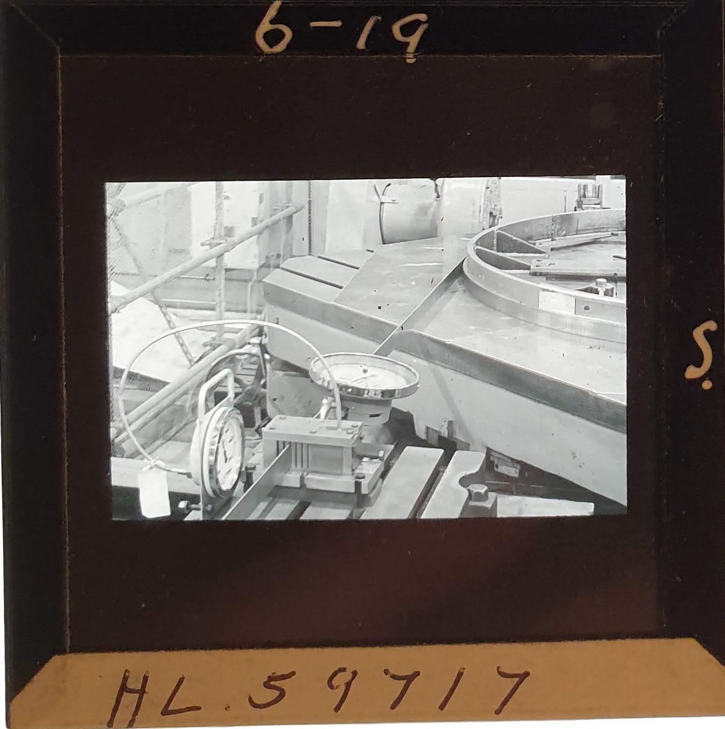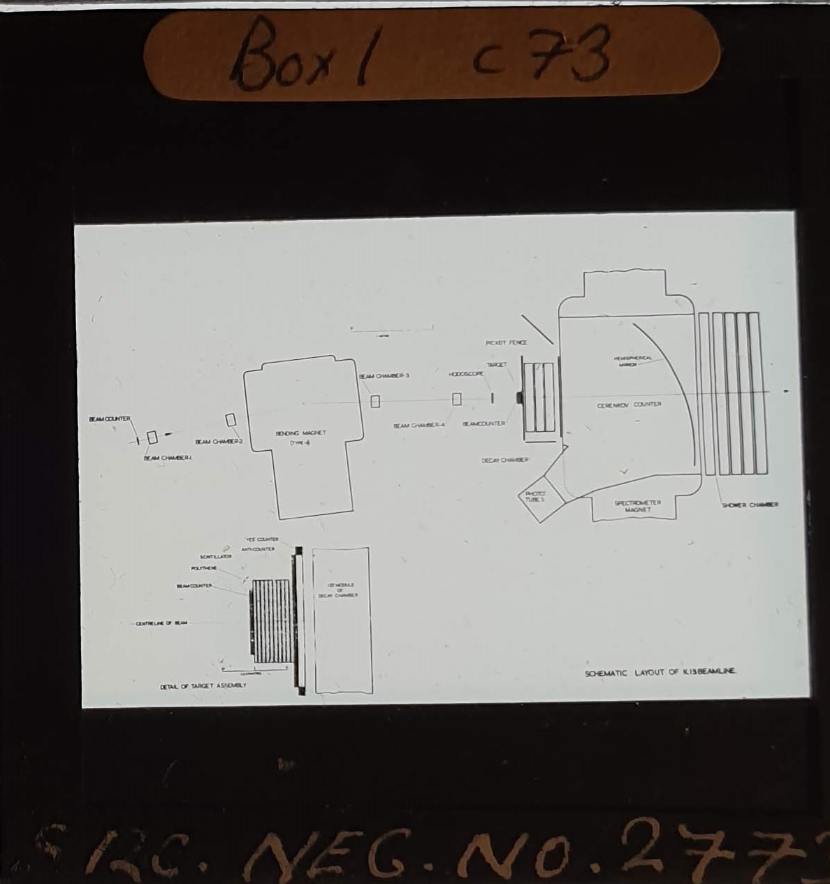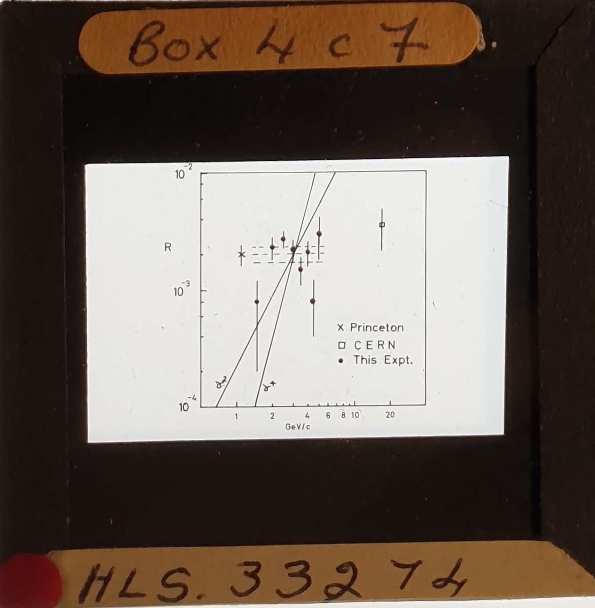 Amongst the artefacts discovered in the archives are a number of wooden boxes of 3¼ inch (8cm) photographic slides, plus wooden boxes and four-drawer metal cabinets of 2 inch (5cm) slides. The larger slides are of the PLA, the smaller slides are of the PLA and Nimrod and have been photographed simply as a record. Initials in the photograph ID are the series ID, though what each series actually is unclear. Most of the slides have been labelled with a negative number, slide sequence number and sometimes a box number but sometimes these labels are obscured, have fallen off altogether or the slide may have been "borrowed" then put back in the wrong place.