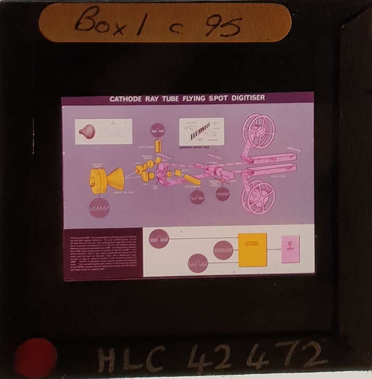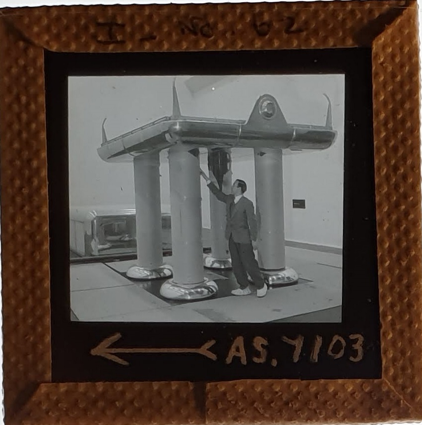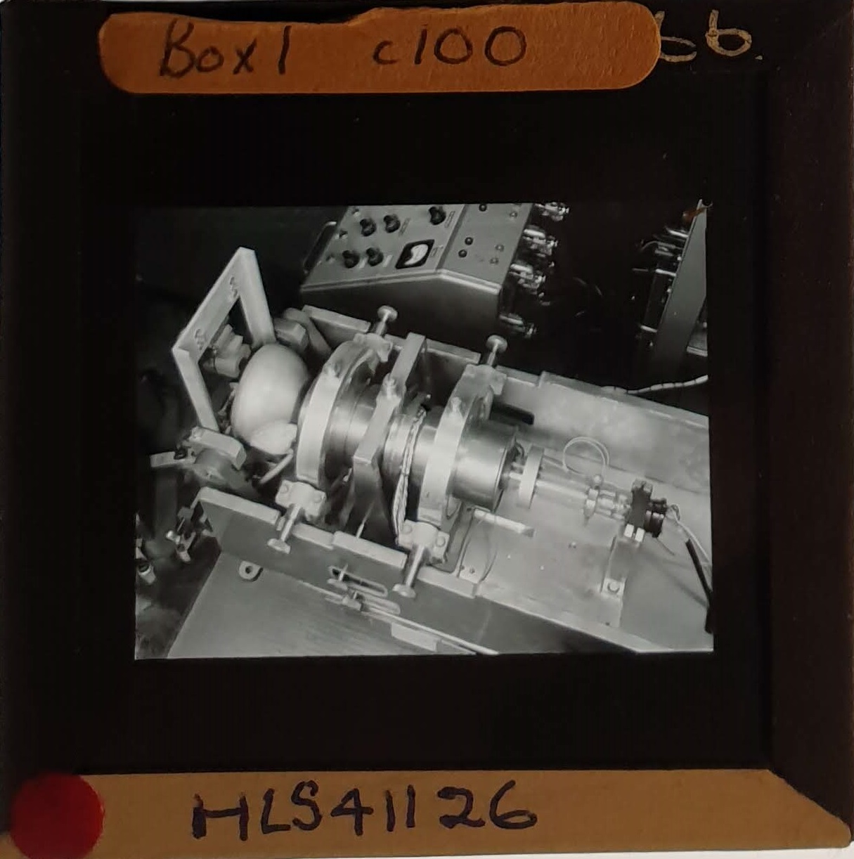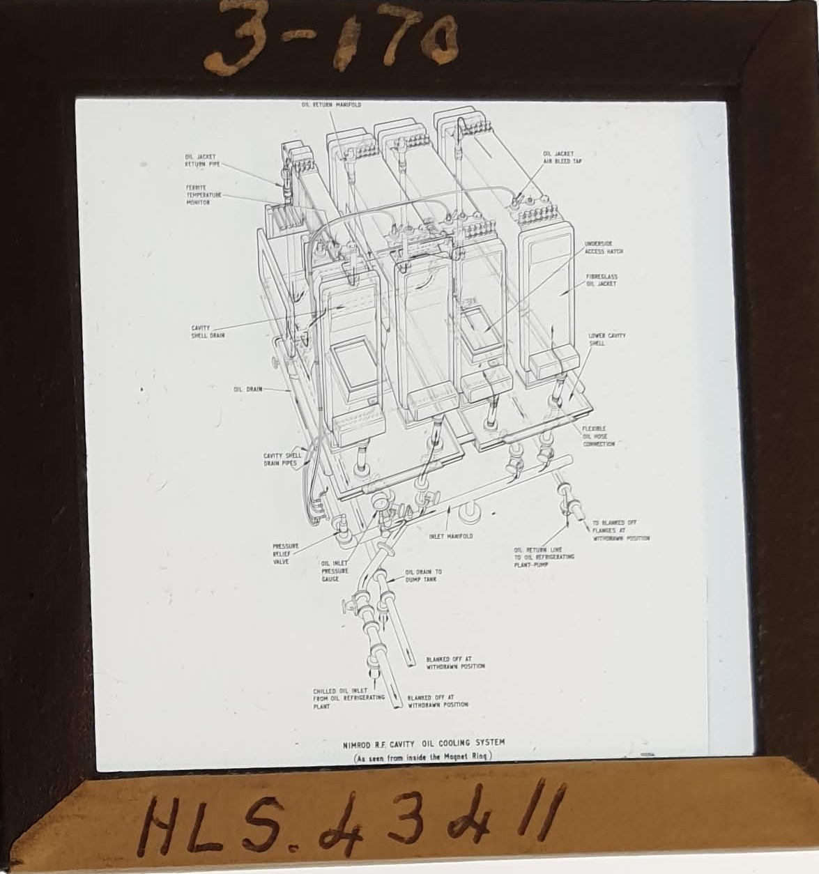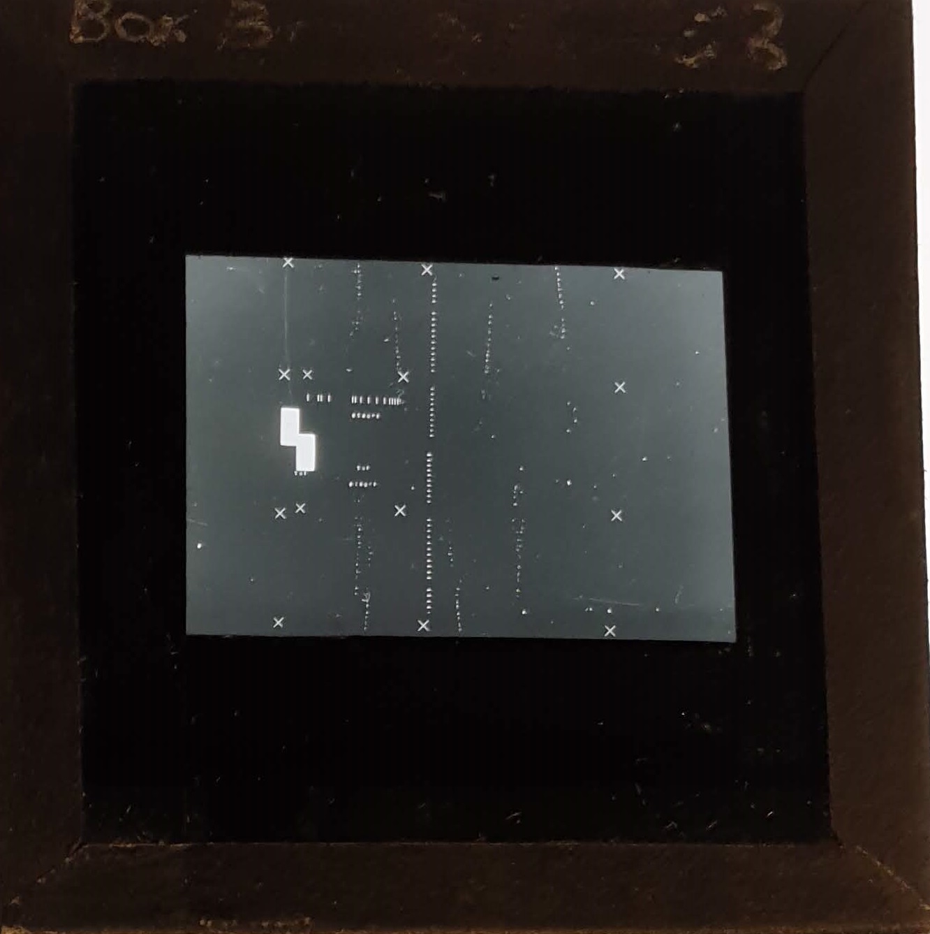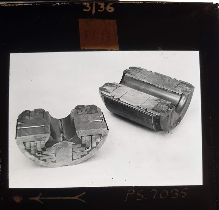 Amongst the artefacts discovered in the archives are a number of wooden boxes of 3¼ inch (8cm) photographic slides, plus wooden boxes and four-drawer metal cabinets of 2 inch (5cm) slides. The larger slides are of the PLA, the smaller slides are of the PLA and Nimrod and have been photographed simply as a record. Initials in the photograph ID are the series ID, though what each series actually is unclear. Most of the slides have been labelled with a negative number, slide sequence number and sometimes a box number but sometimes these labels are obscured, have fallen off altogether or the slide may have been "borrowed" then put back in the wrong place.