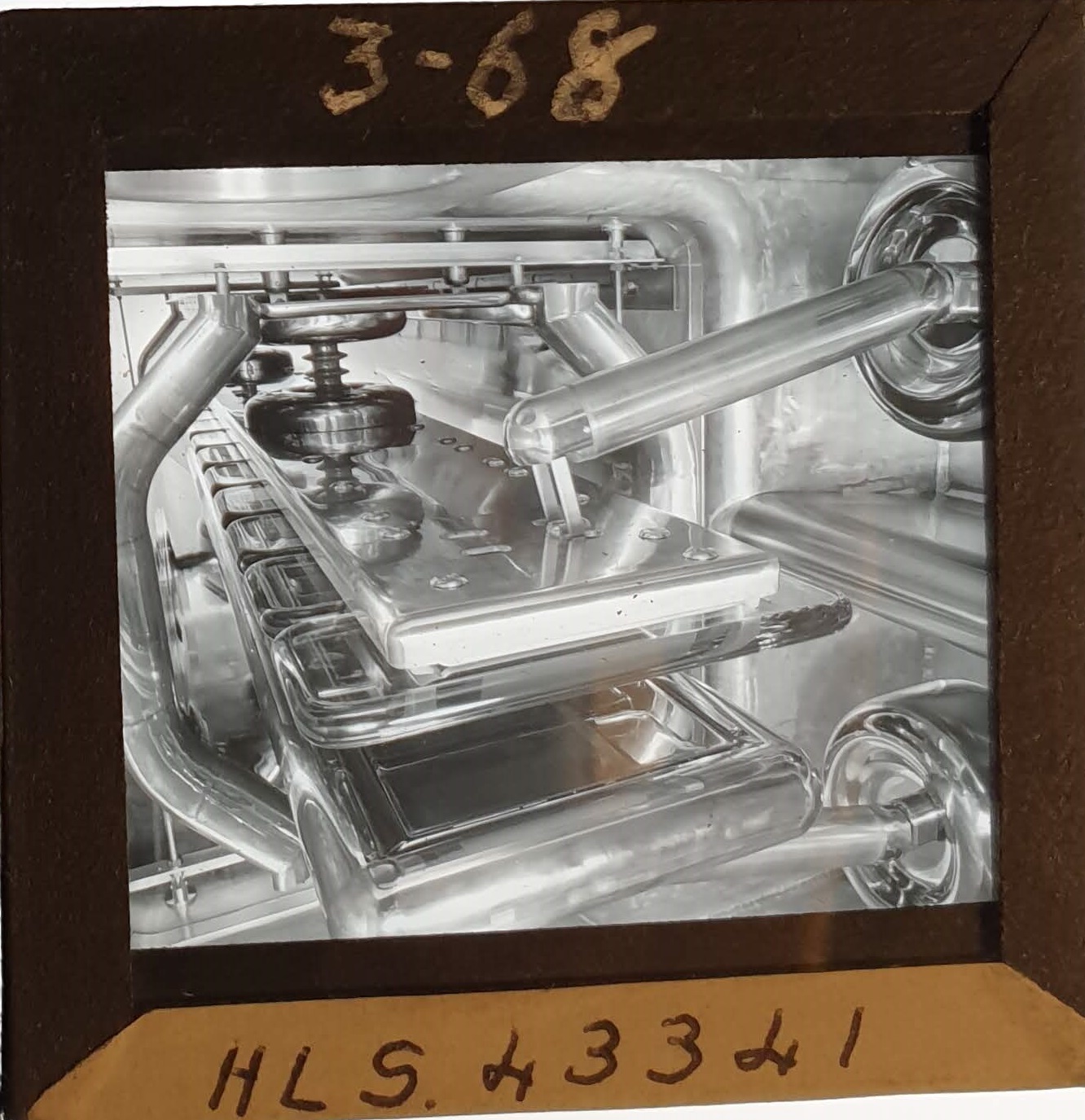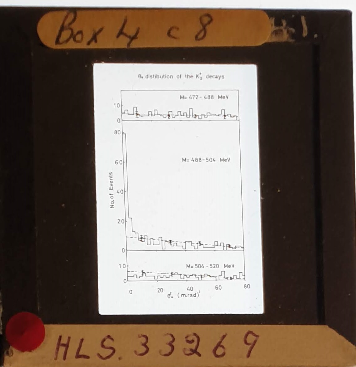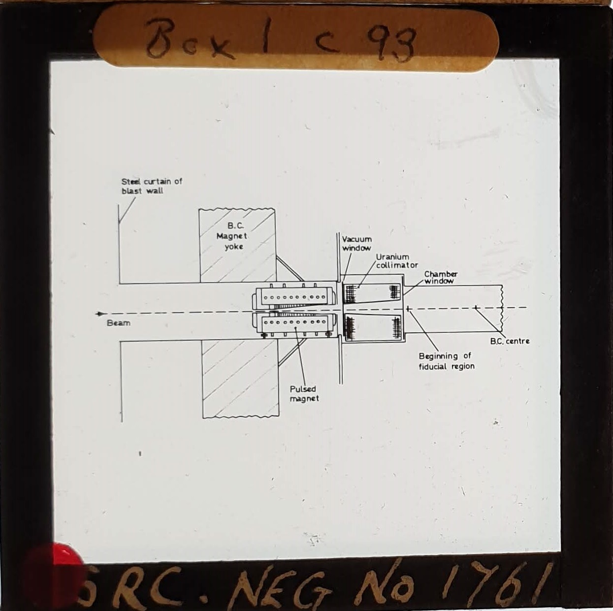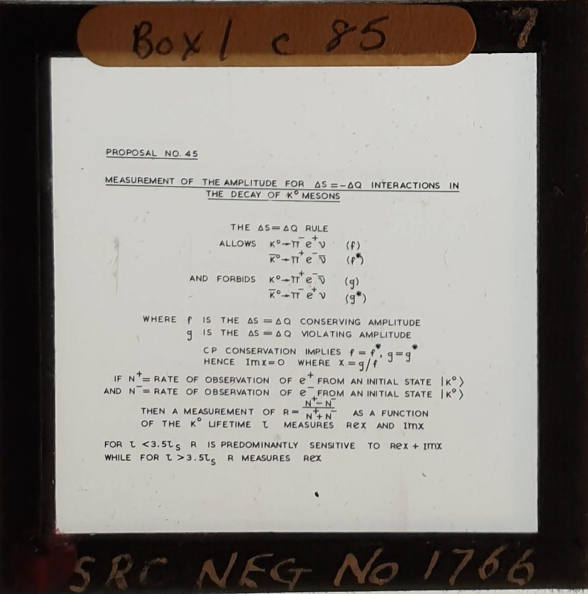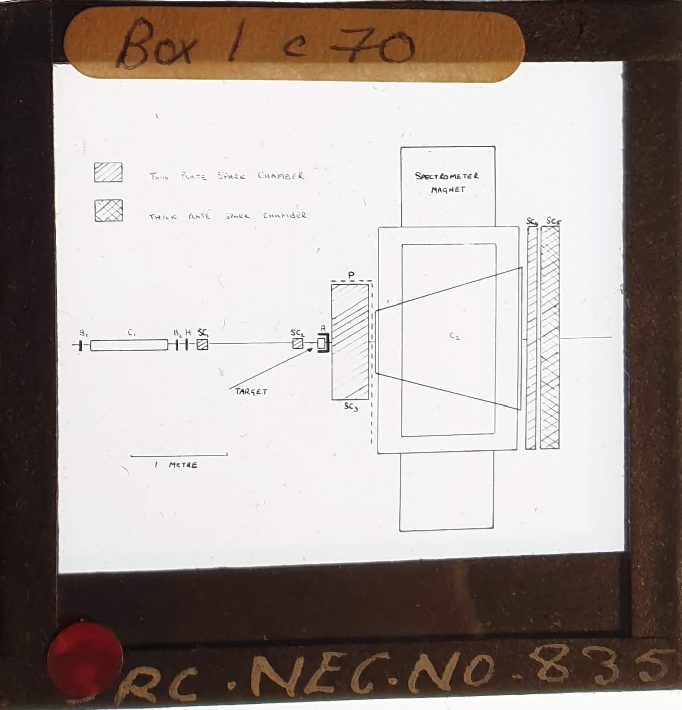 Amongst the artefacts discovered in the archives are a number of wooden boxes of 3¼ inch (8cm) photographic slides, plus wooden boxes and four-drawer metal cabinets of 2 inch (5cm) slides. The larger slides are of the PLA, the smaller slides are of the PLA and Nimrod and have been photographed simply as a record. Initials in the photograph ID are the series ID, though what each series actually is unclear. Most of the slides have been labelled with a negative number, slide sequence number and sometimes a box number but sometimes these labels are obscured, have fallen off altogether or the slide may have been "borrowed" then put back in the wrong place.
